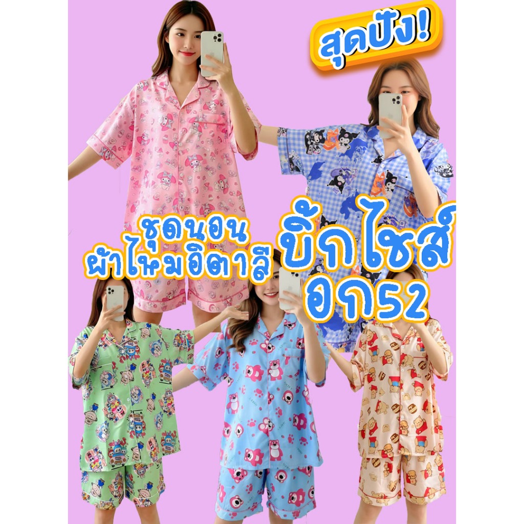 ชุดนอนผ้าไหมอิตาลี่ อก52 บิ๊กไซส์ ชุดนอนลายการ์ตูน ชุดนอนสาวอวบไซส์ใหญ่ ชุดนอน แขนสั้น-ขาสั้น