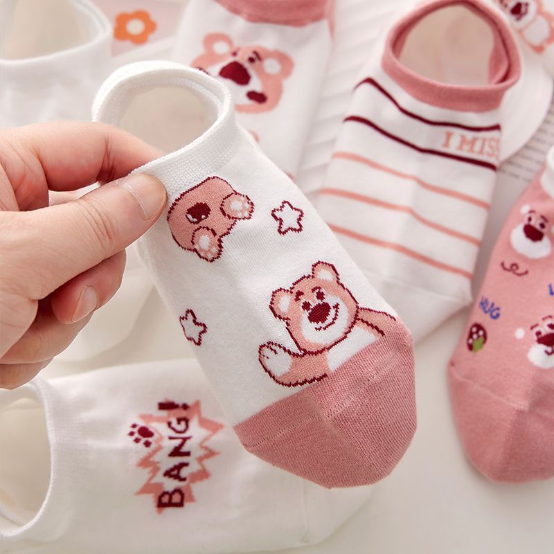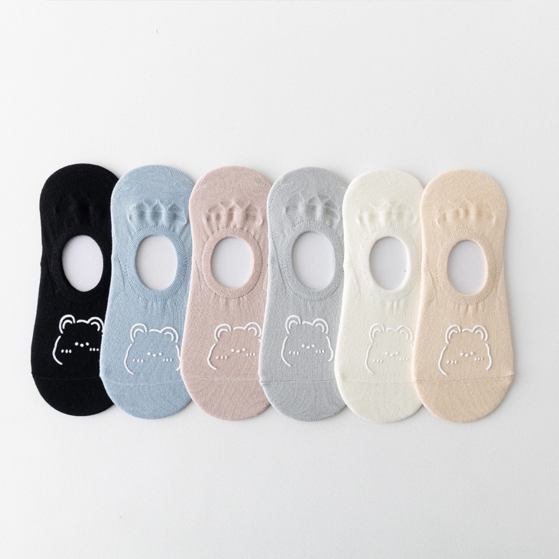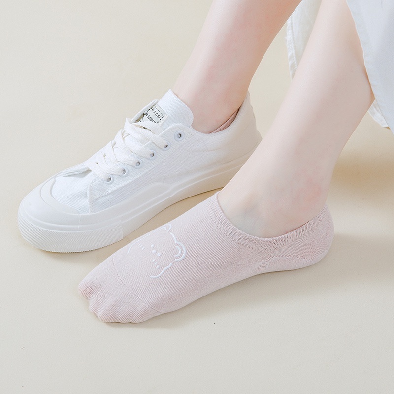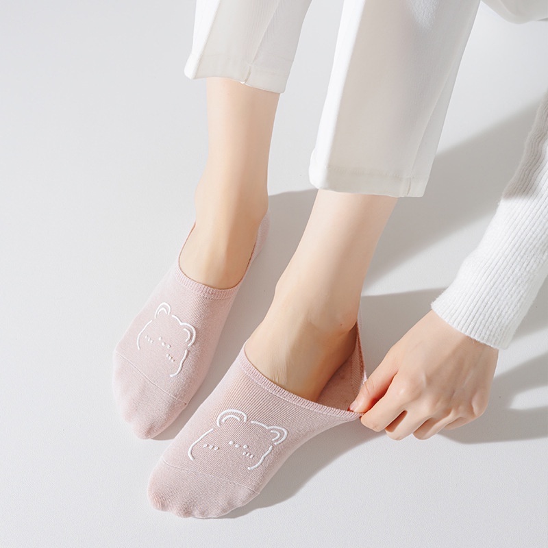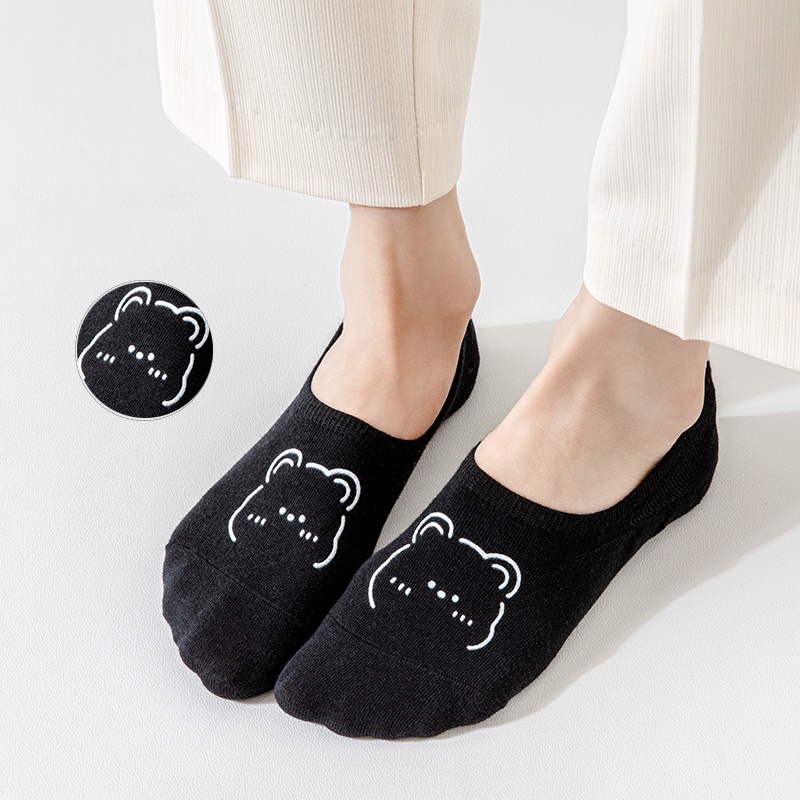 ถุงเท้าซิลิโคน แบบบาง ปากตื้น ระบายอากาศได้ดี ป้องกันการลื่น พิมพ์ลายหมีน่ารัก แฟชั่นฤดูร้อน สําหรับผู้หญิง