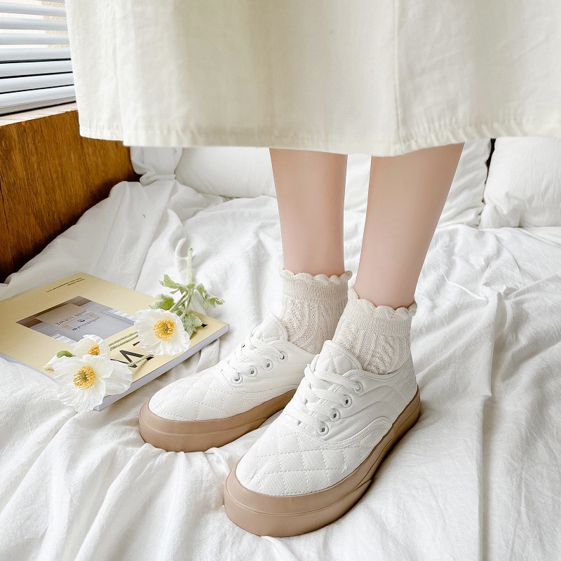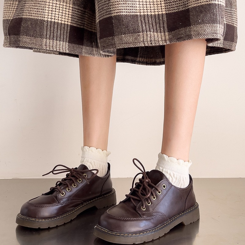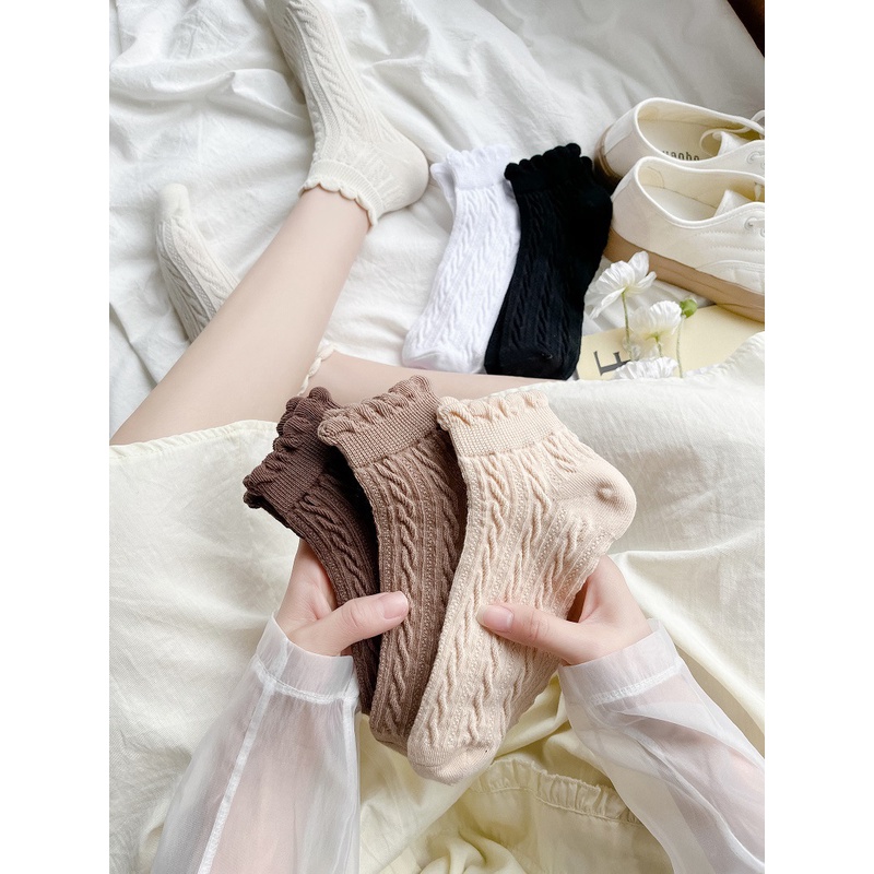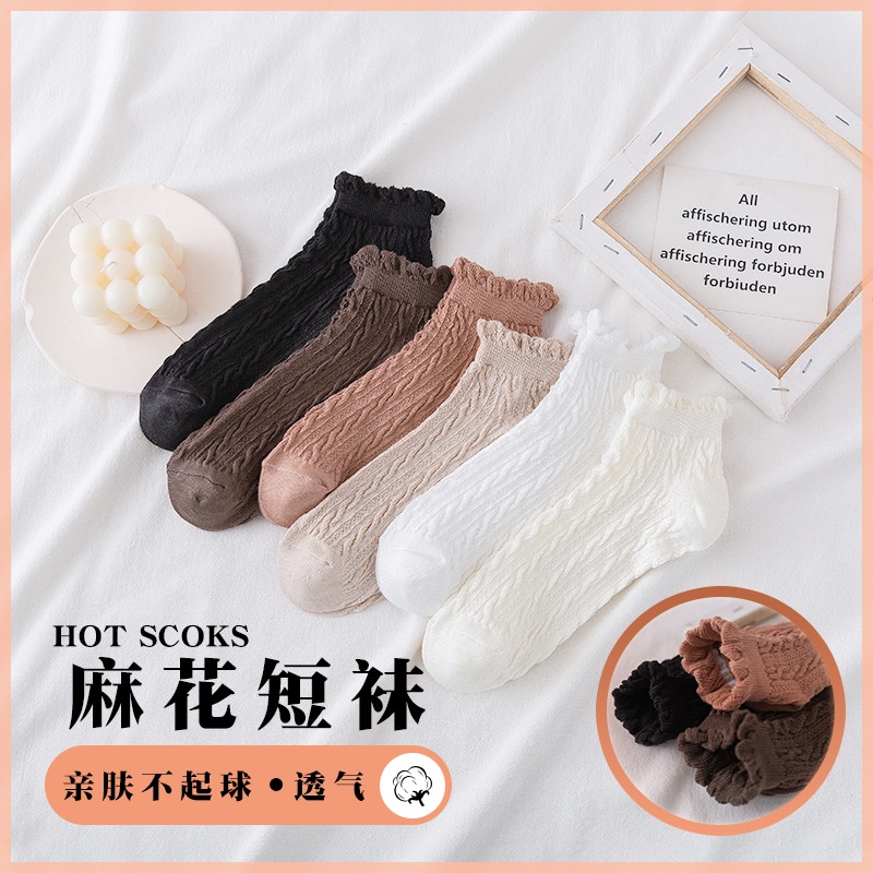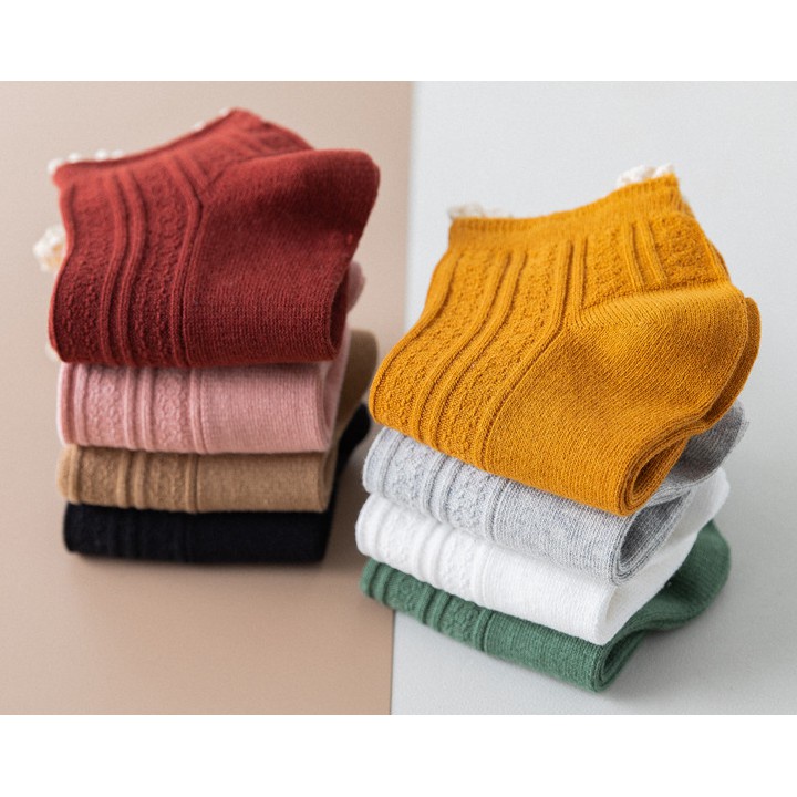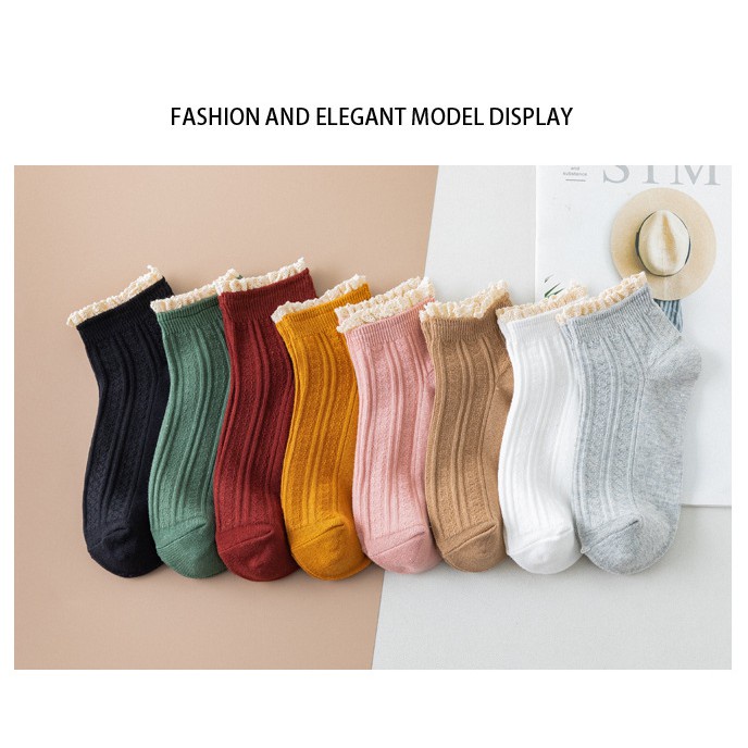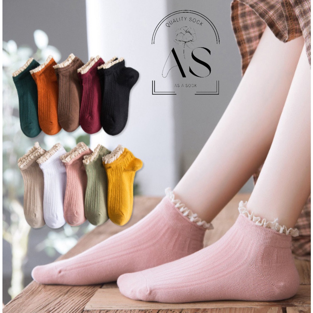 ถุงเท้าญี่ปุ่นแฟชั่น สไตล์วินเทจ ลายลูกไม้ ผ้าฝ้าย ข้อสั้น สีพื้น สำหรับผู้หญิง