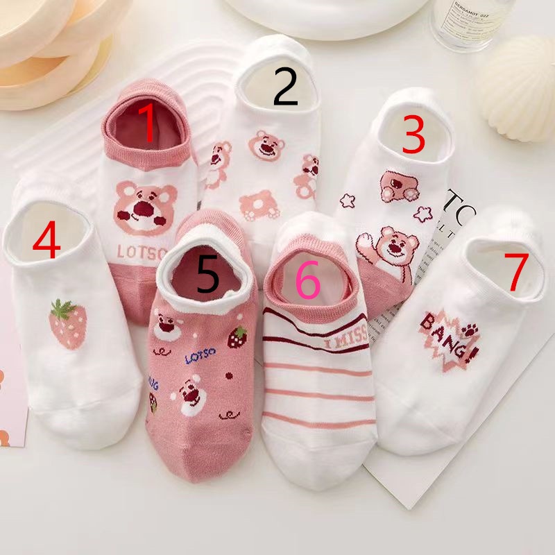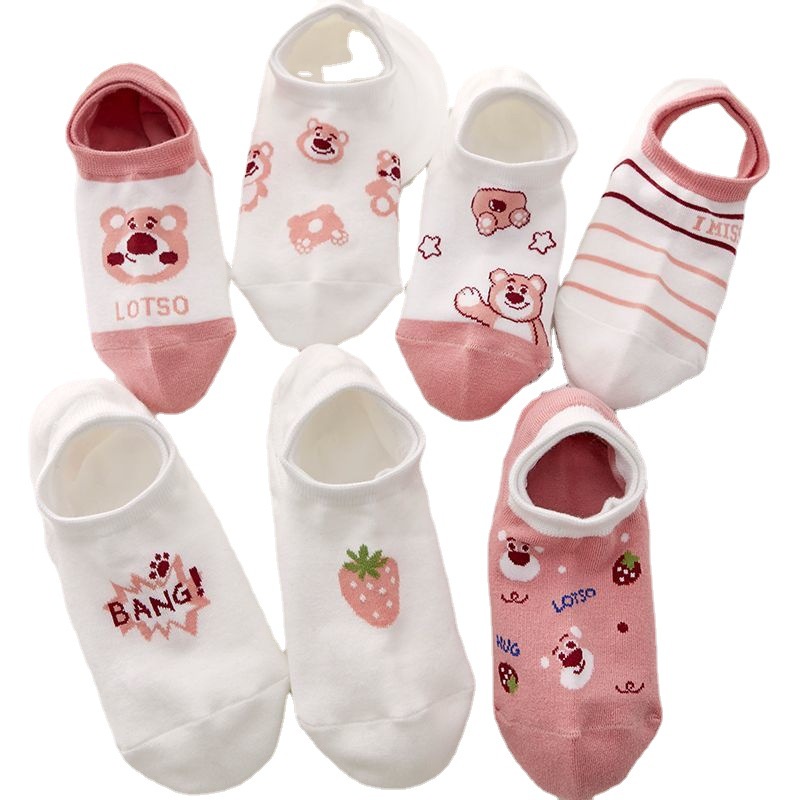 ถุงเท้าซิลิโคน แบบบาง กันลื่น ลายหมีสตรอเบอร์รี่ สีชมพู แฟชั่นฤดูใบไม้ผลิ และฤดูร้อน สําหรับผู้หญิง