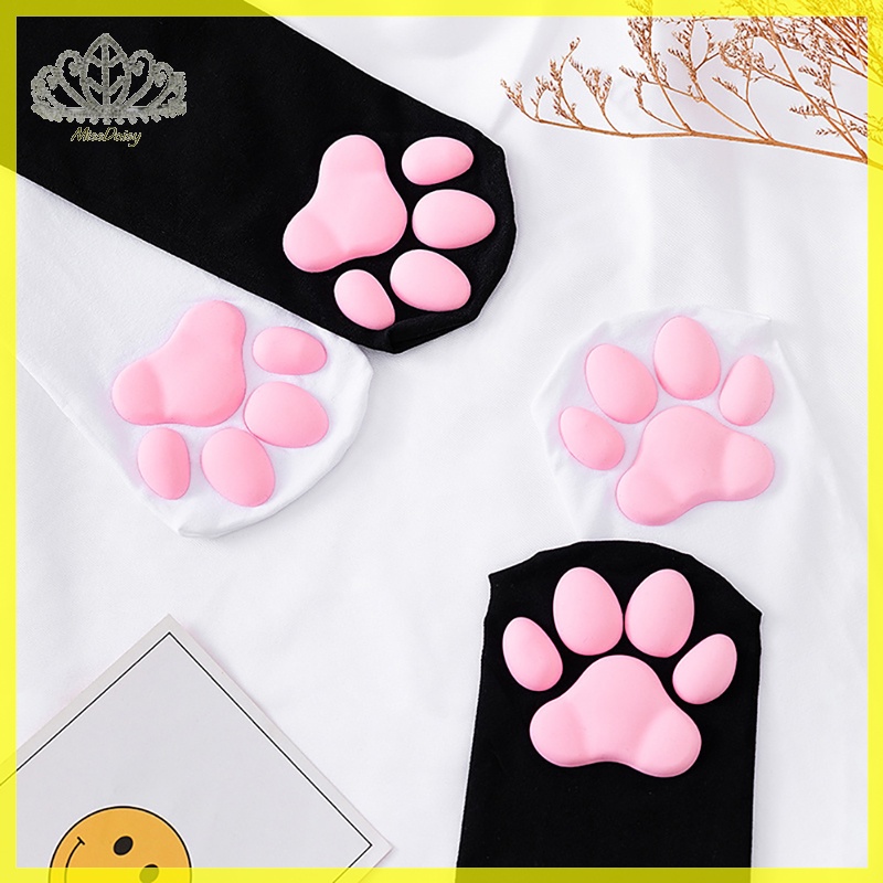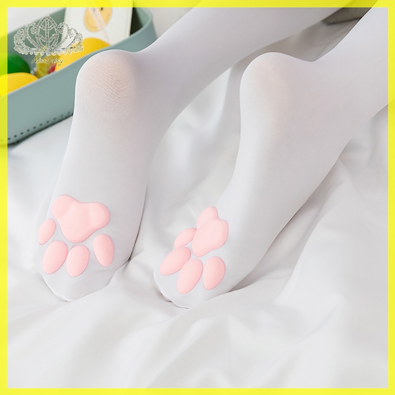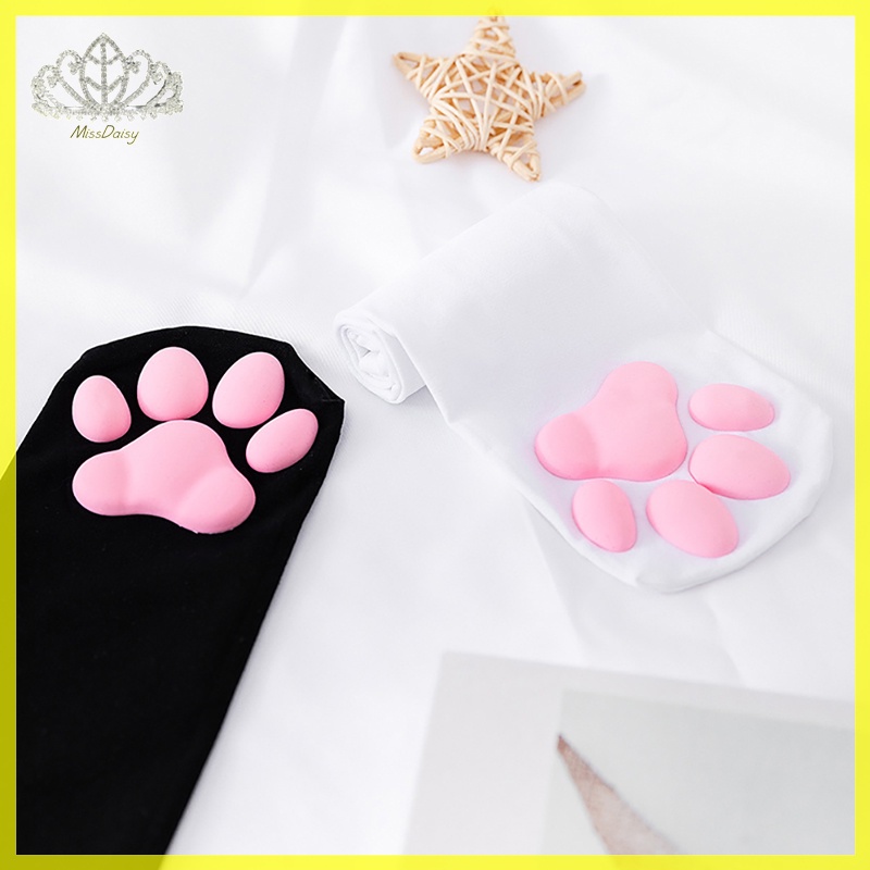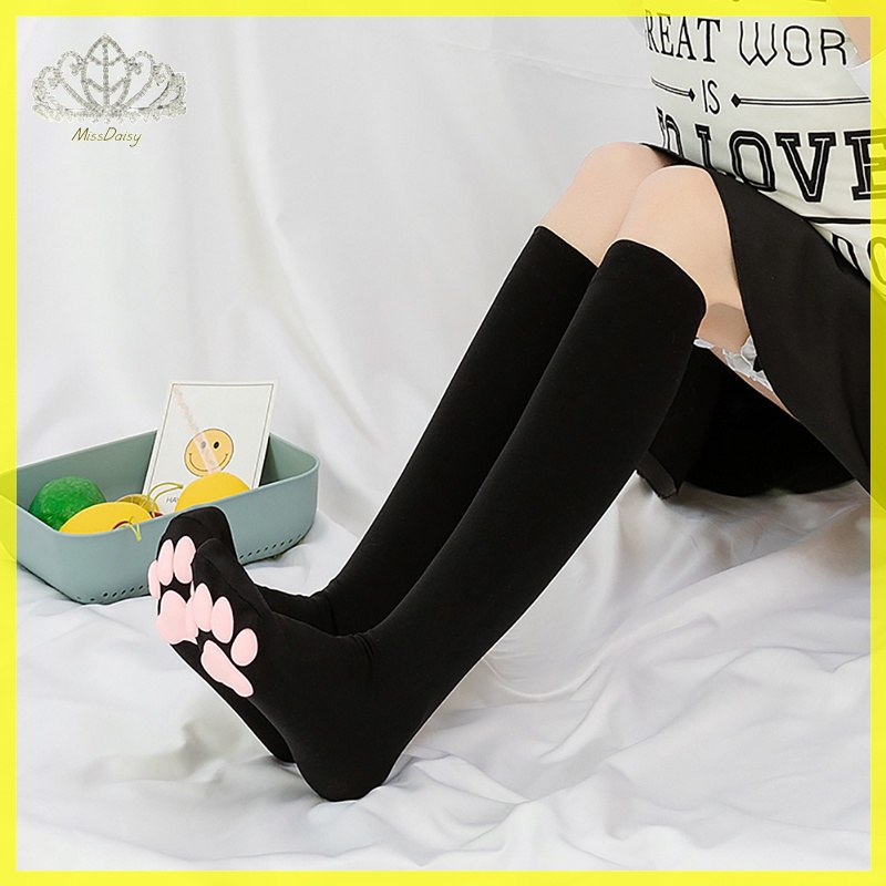 ถุงเท้าข้อสูง ลายอุ้งเท้าแมว ดอกเดซี่ 3D สําหรับผู้หญิง TH