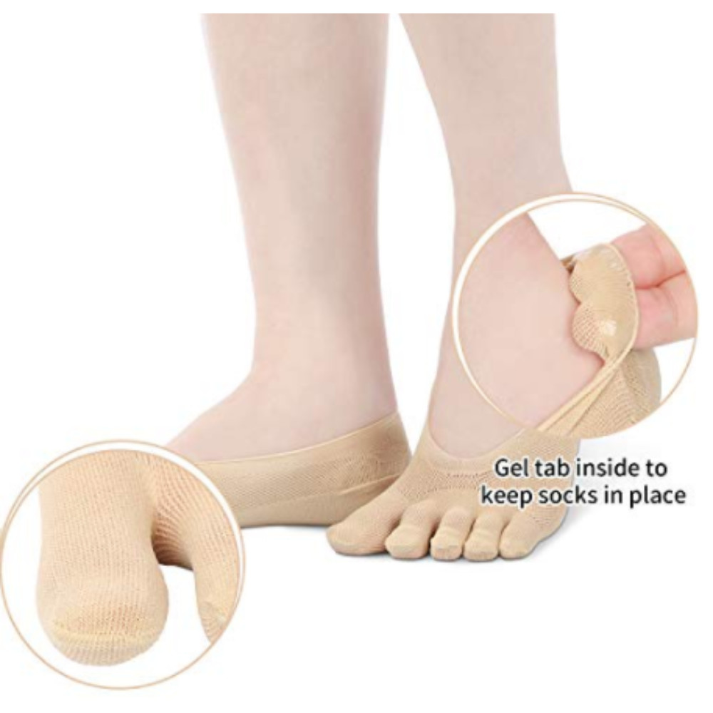 ถุงเท้าข้อเท้าต่ํากันลื่นของผู้หญิงสีทึบสบายถุงเท้านิ้วเท้าระบายอากาศถุงเท้าลําลอง