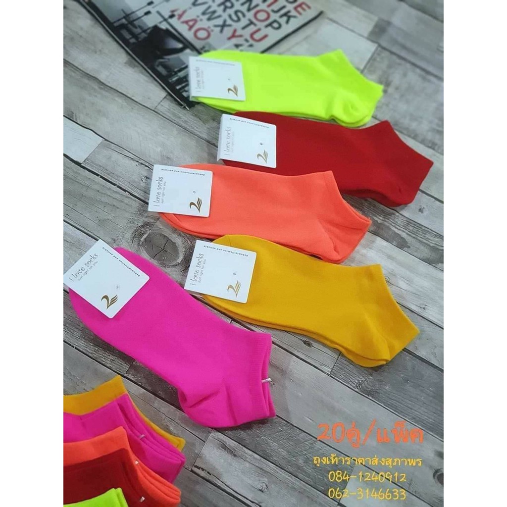 ถุงเท้านีออน Neon สีสะท้อนแสง สีสดเจ็บจิ๊ด เนื้อผ้านิ่ม ใส่สบายเท้ามาก