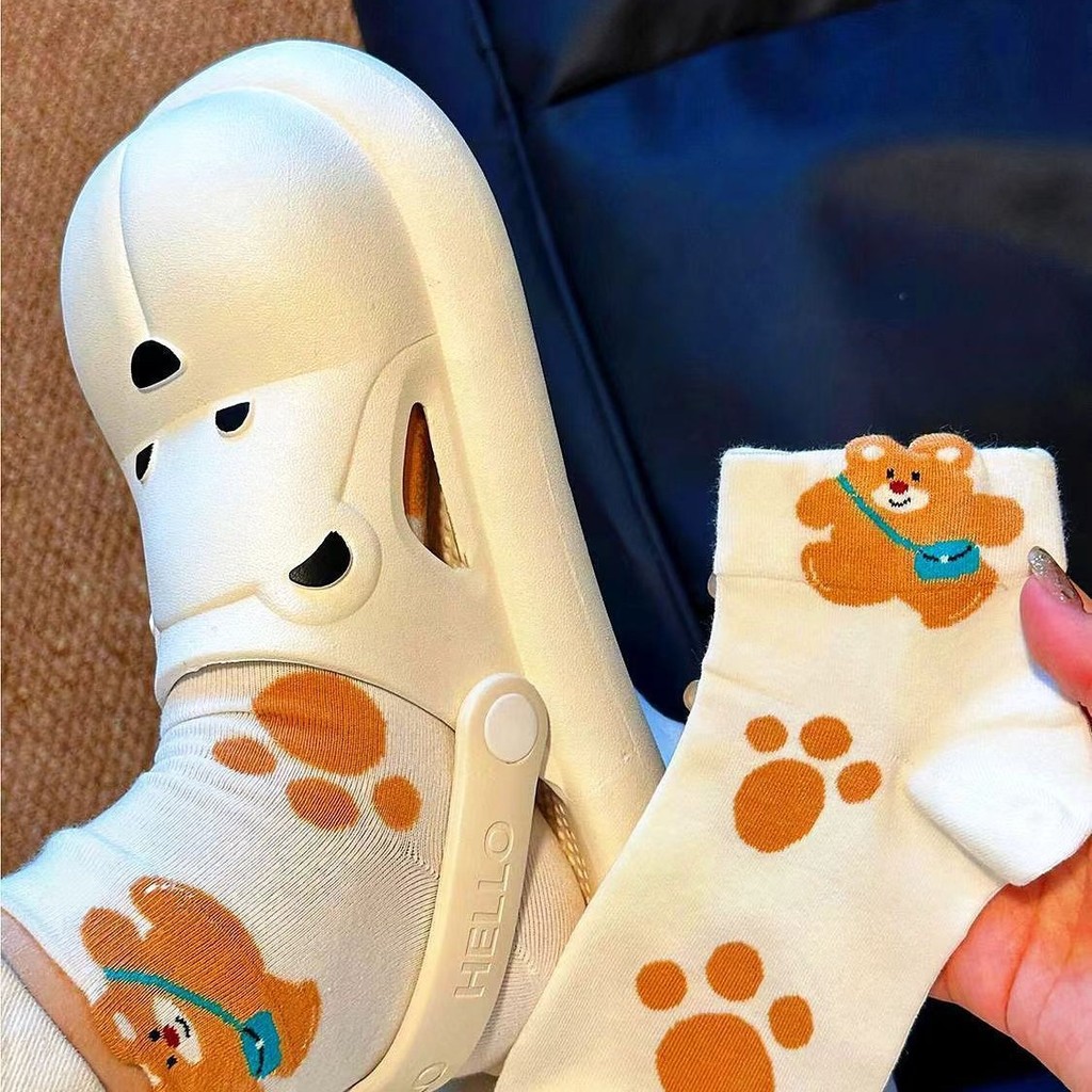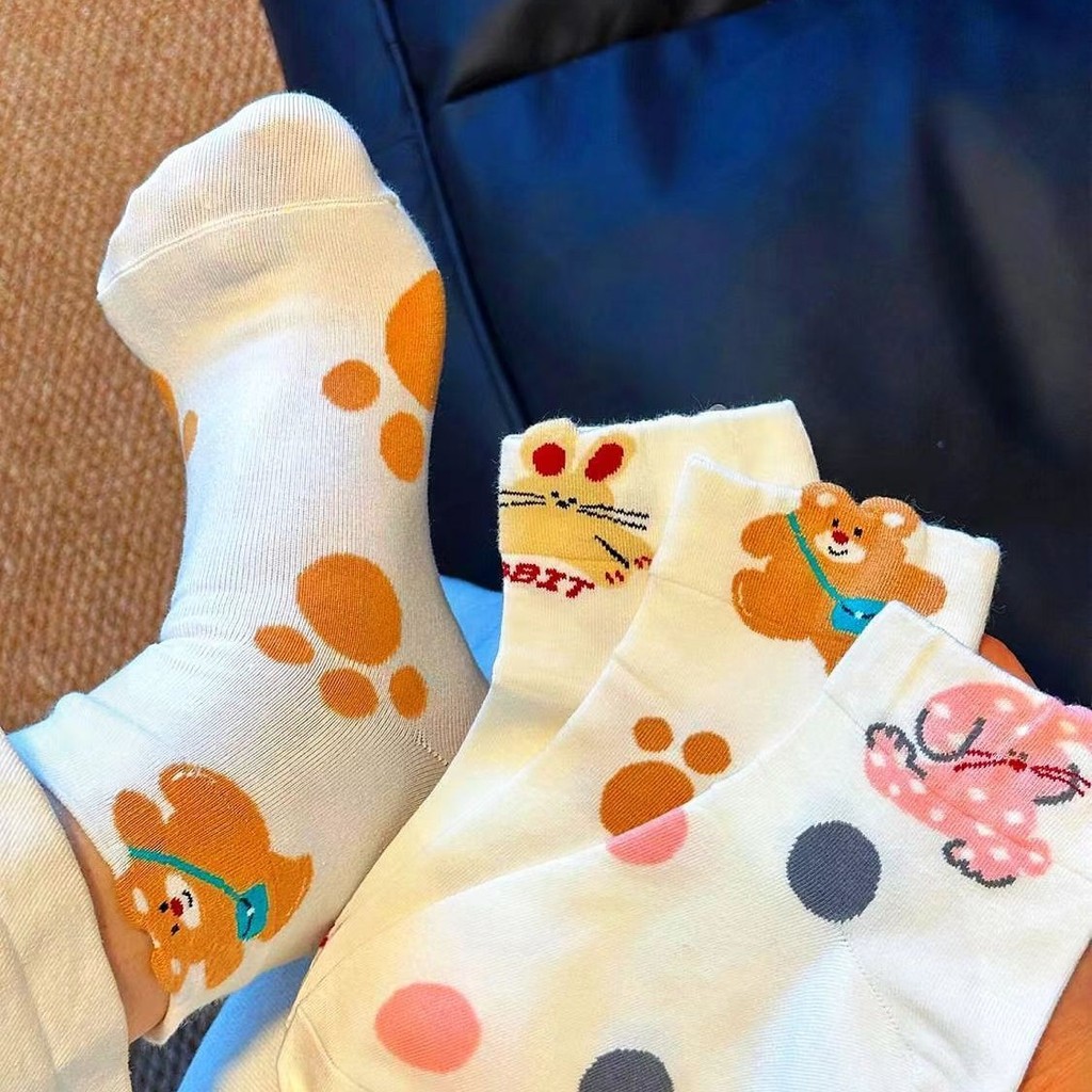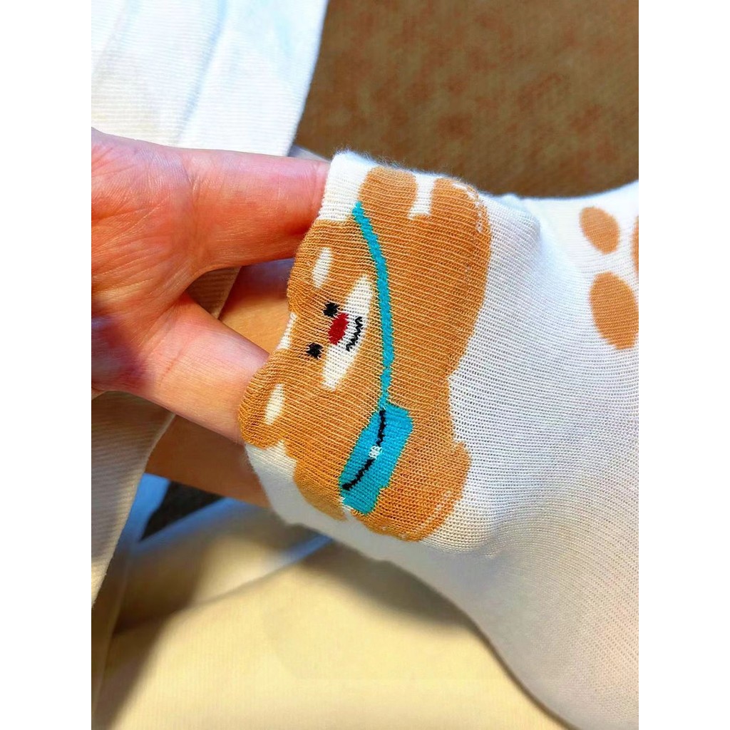ถุงเท้าน่ารักสําหรับผู้หญิง ถุงเท้าผ้าฝ้ายฤดูใบไม้ผลิ/ฤดูร้อน, เครือข่ายเทรนด์ดาราหมีการ์ตูนญี่ปุ่น อินสตาแกรม, ถุงเท้าสวมอินฟราเรดสําหรับผ