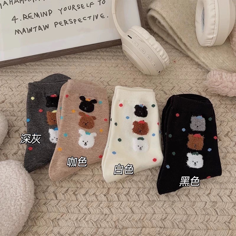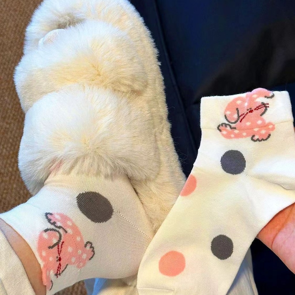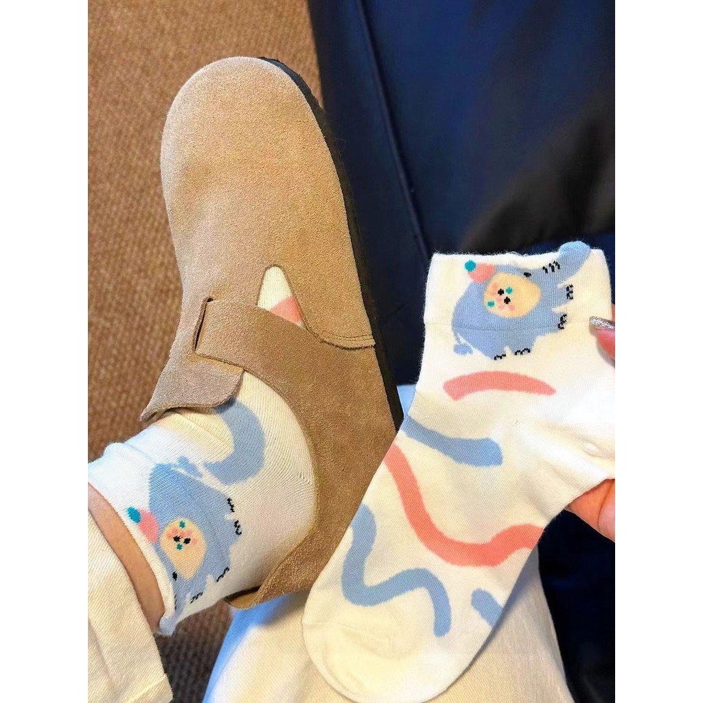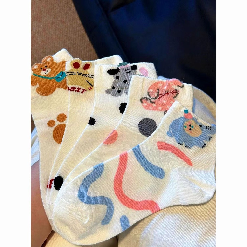 ถุงเท้าน่ารักสําหรับผู้หญิง ถุงเท้าผ้าฝ้ายฤดูใบไม้ผลิ/ฤดูร้อน, เครือข่ายเทรนด์ดาราหมีการ์ตูนญี่ปุ่น อินสตาแกรม, ถุงเท้าสวมอินฟราเรดสําหรับผ