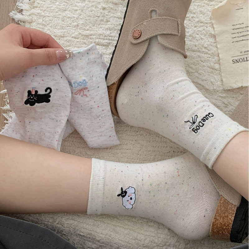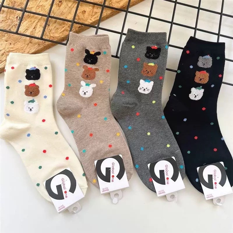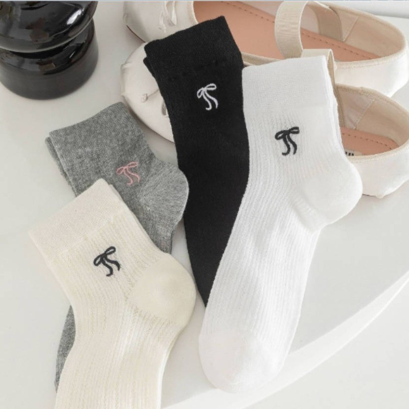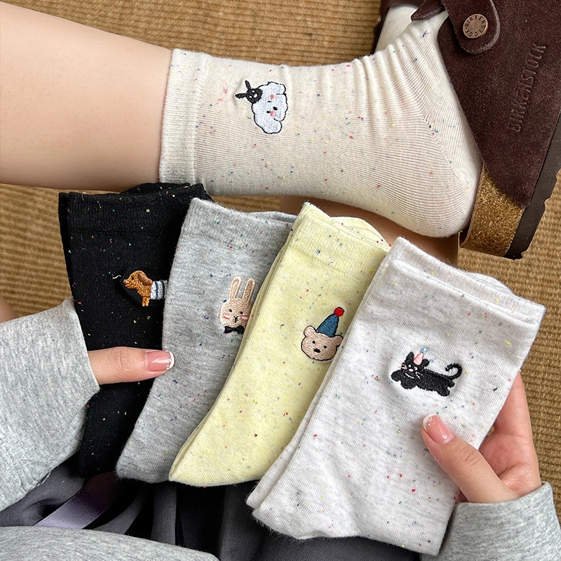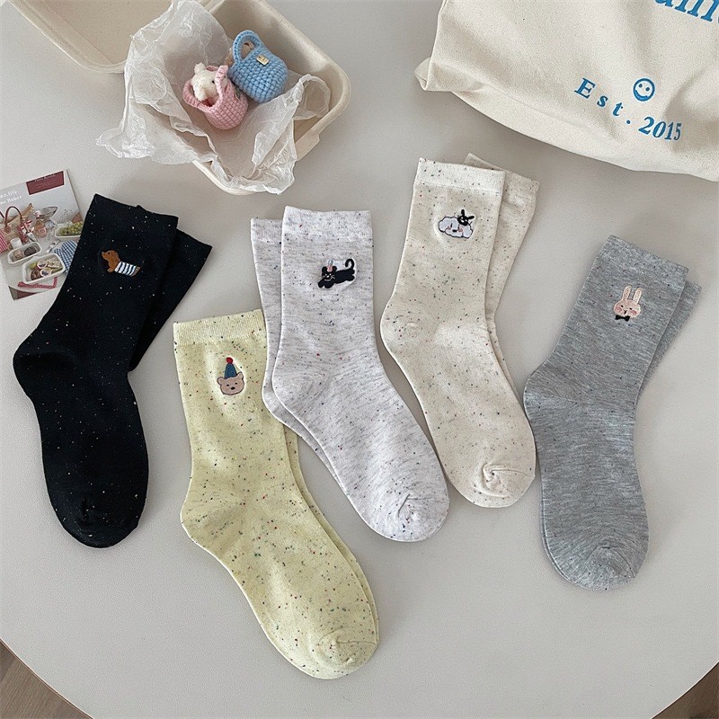 ถุงเท้านักเรียนเกาหลี ✦ ปักลายสัตว์น่ารัก + โบว์หวานๆ 📸 ถุงเท้าผ้าฝ้าย นุ่ม