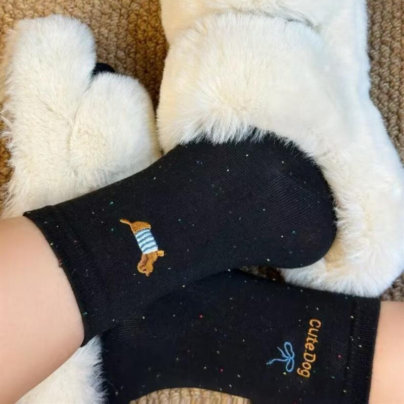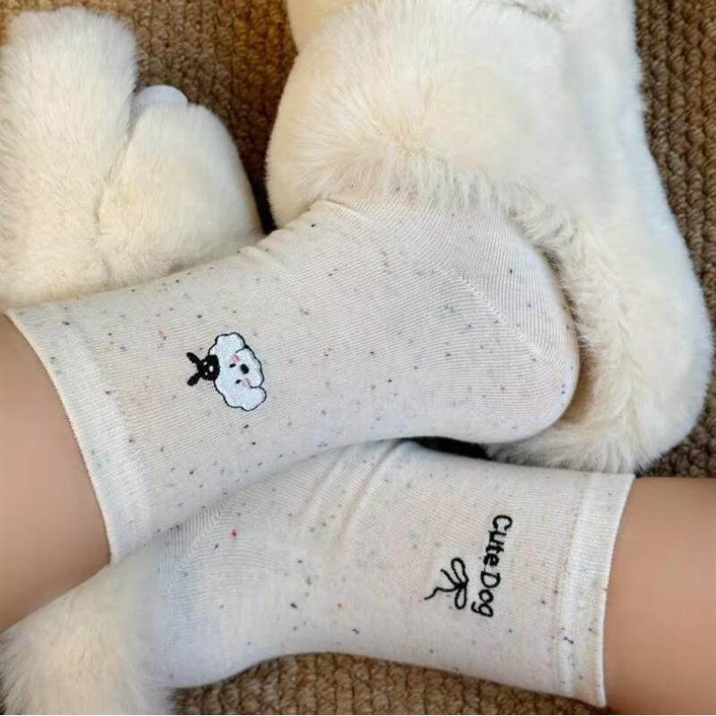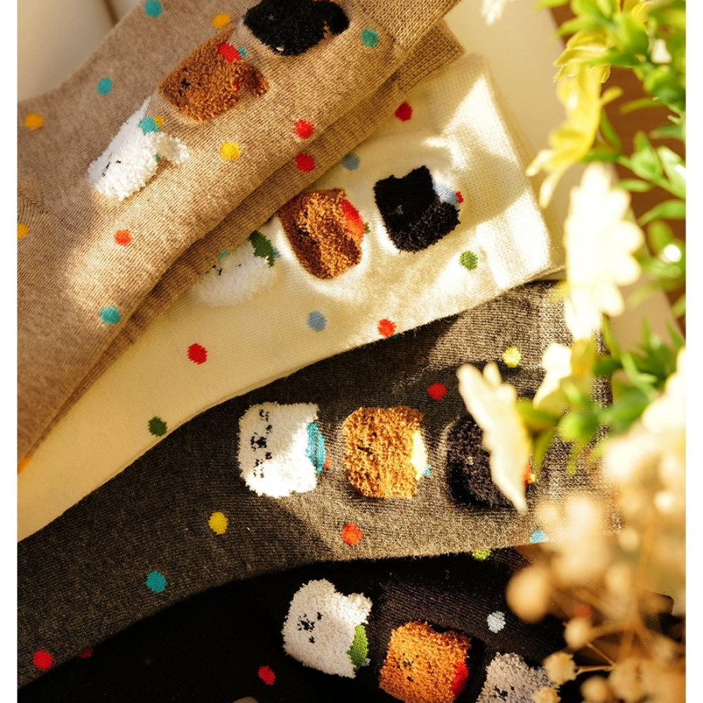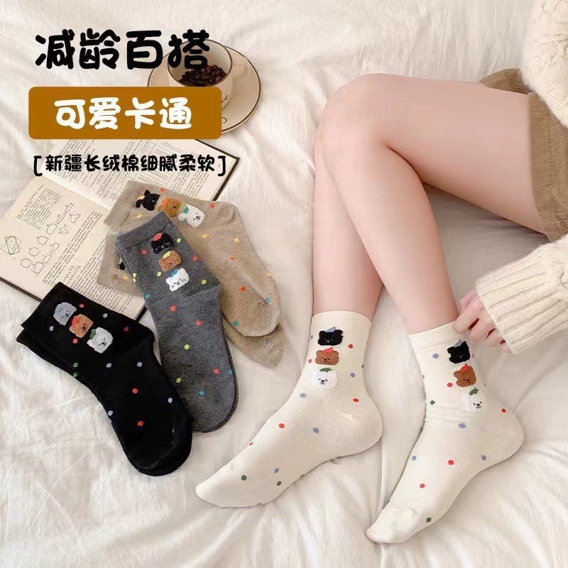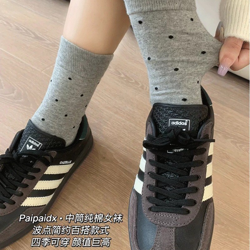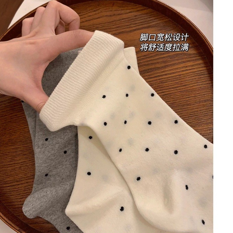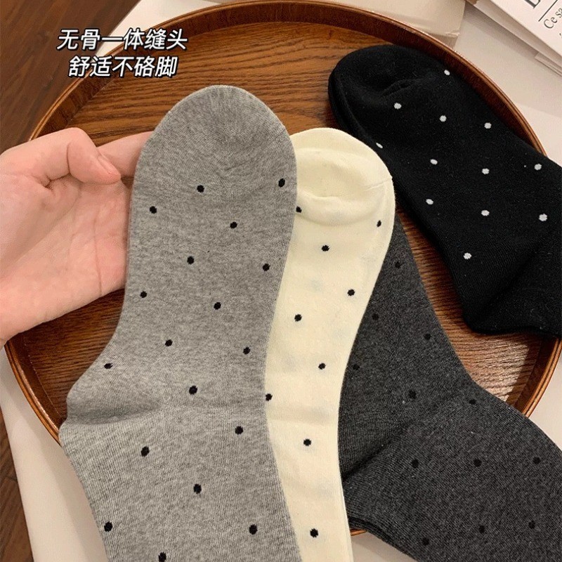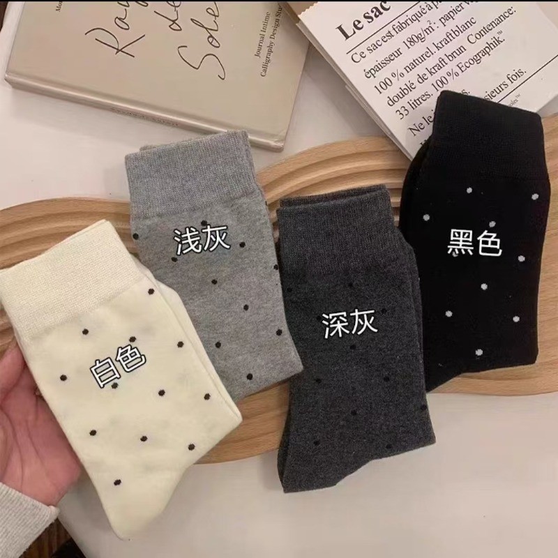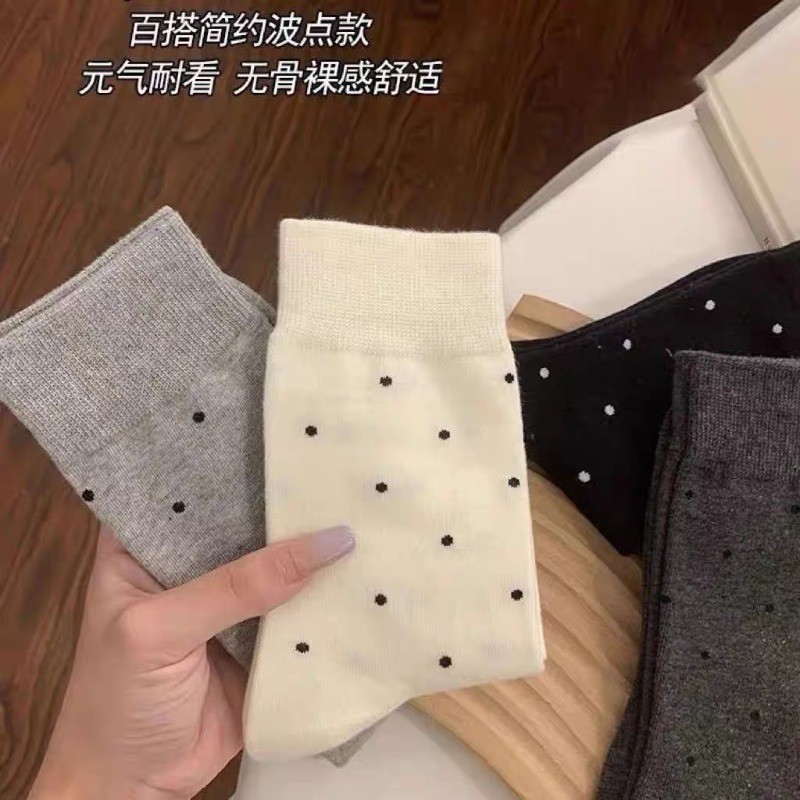ถุงเท้าท่อกลางลายดอต สไตล์น่ารักสำหรับผู้หญิง สวมใส่สบาย