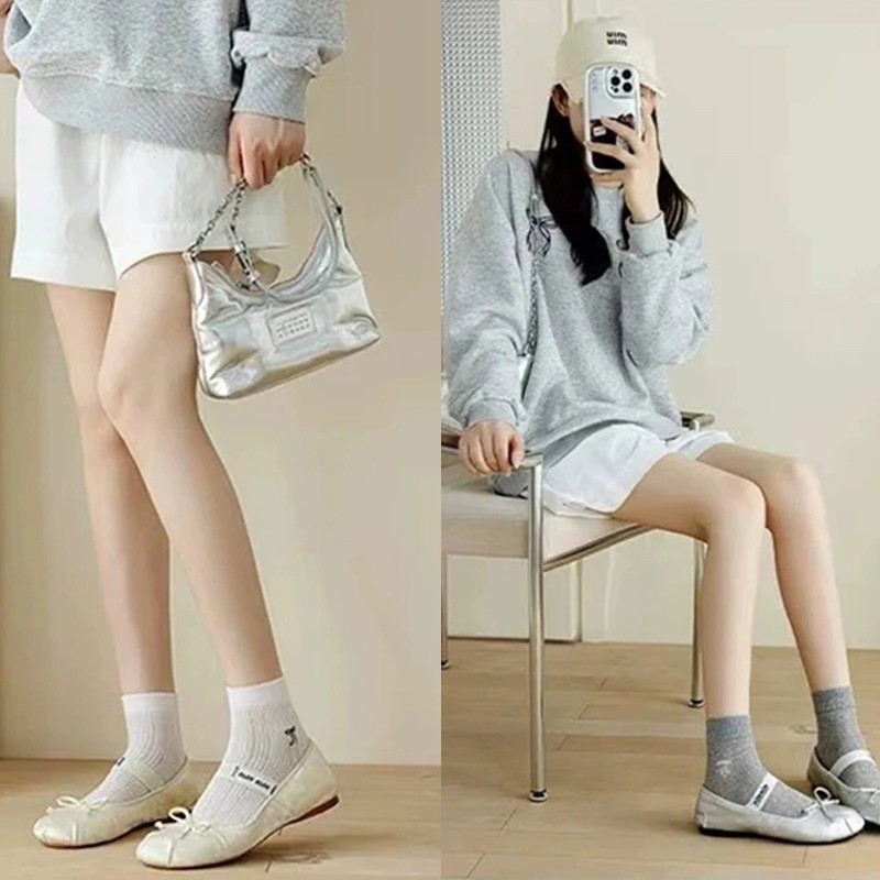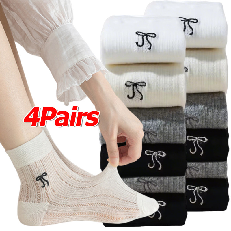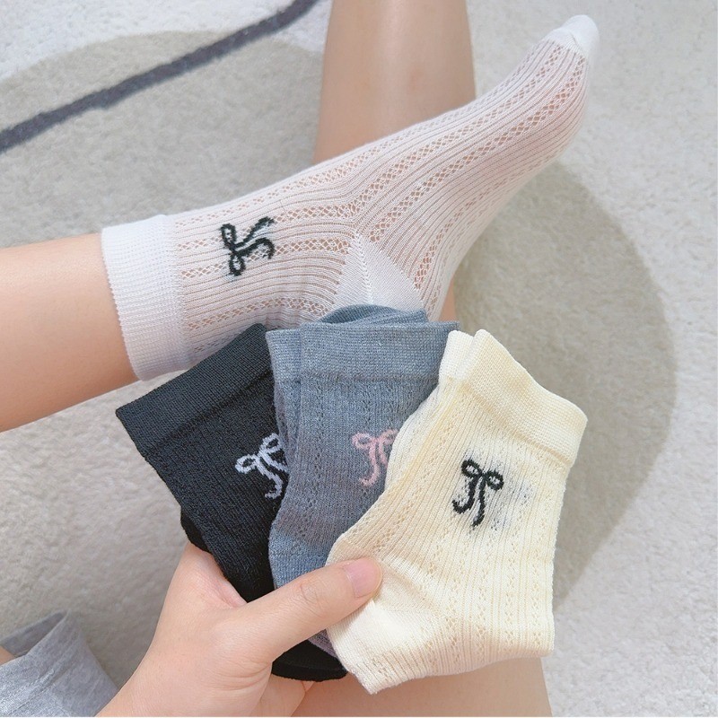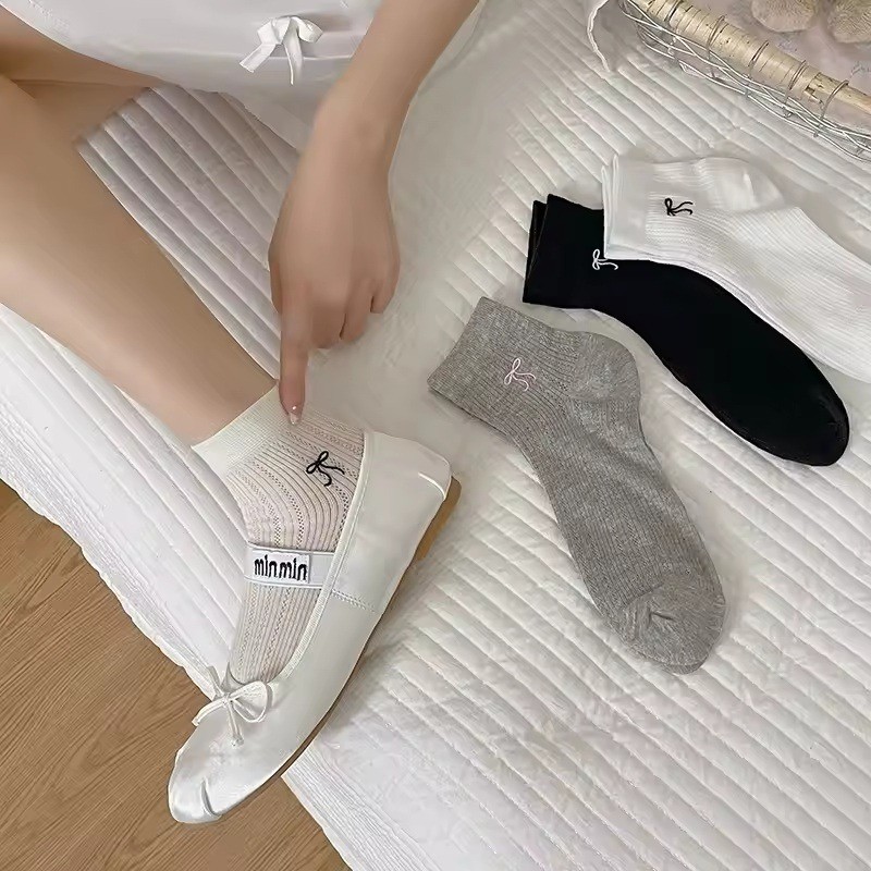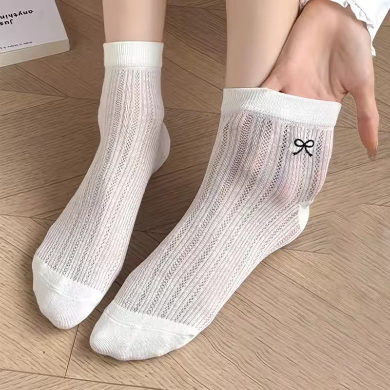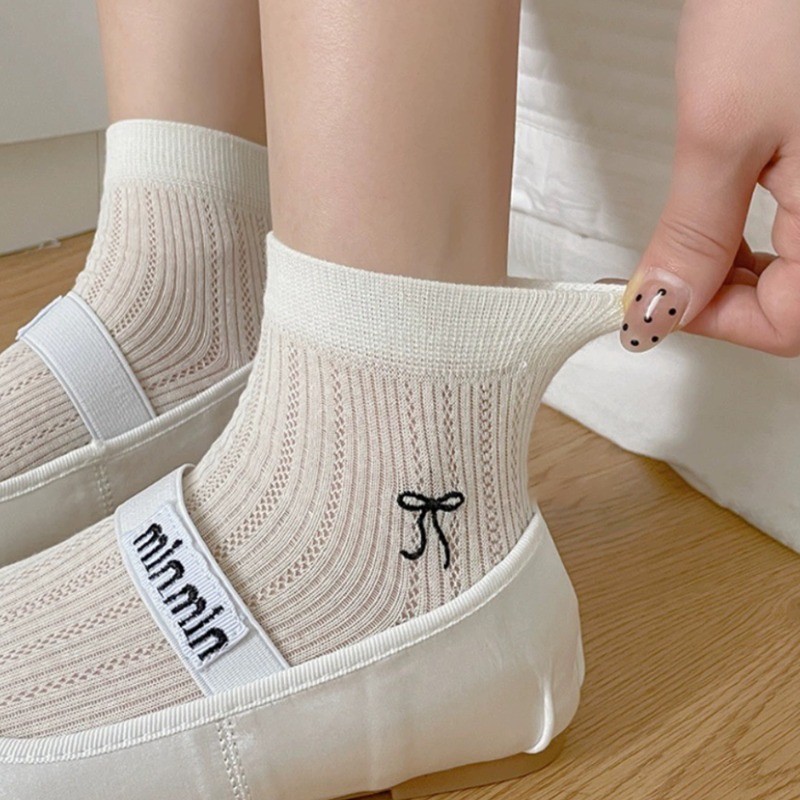 ถุงเท้าบัลเล่ต์มีโบว์และระบายอากาศ สำหรับผู้หญิงที่ชอบความน่ารักและหวาน