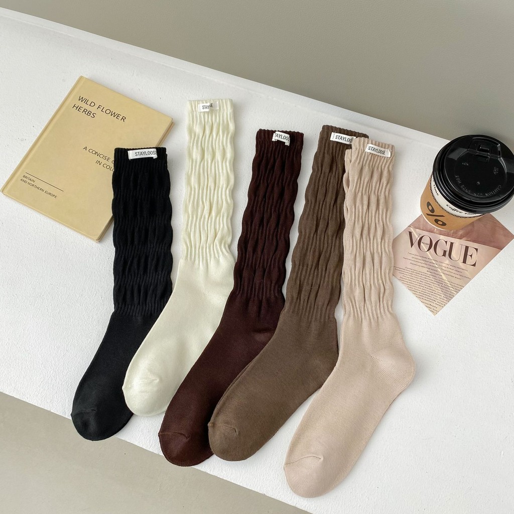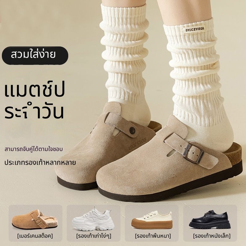 ถุงเท้าบูตรัดรูปยาวถึงเข่า จากฝ้ายแท้ อุ่นสบายสำหรับหน้าฝนและหนาว