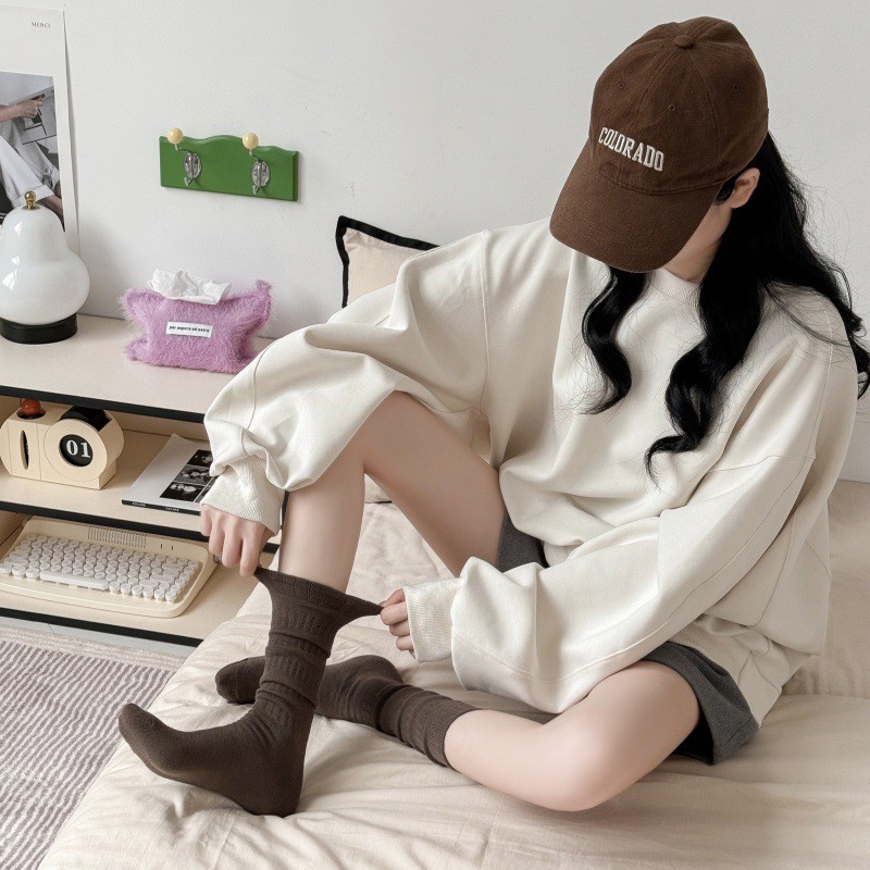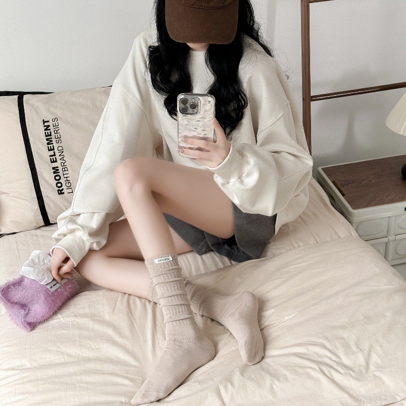 ถุงเท้าถัก สไตล์โลลิต้า ความยาวปานกลาง คลาสสิค เกี่ยวกับมัลติฟังก์ชั่น นิ่ม ถุงเท้าแฟชั่น