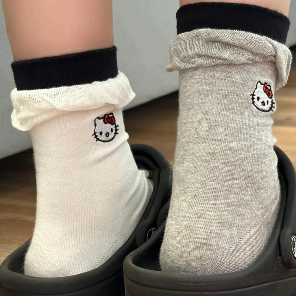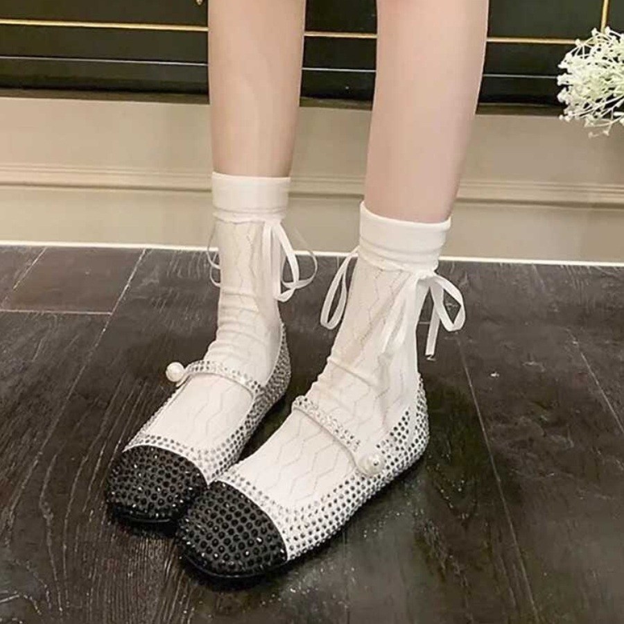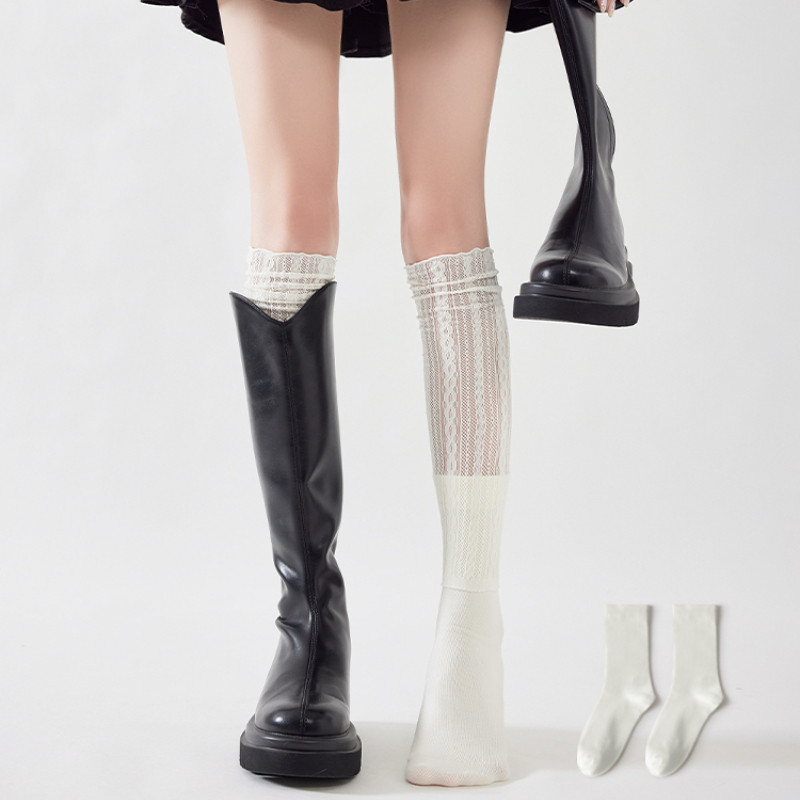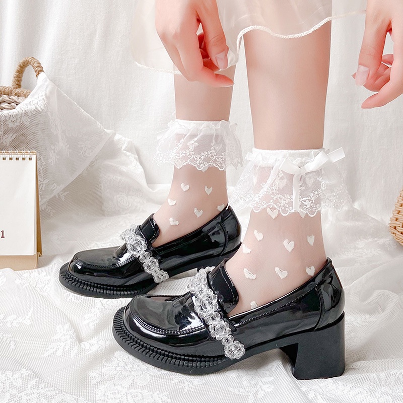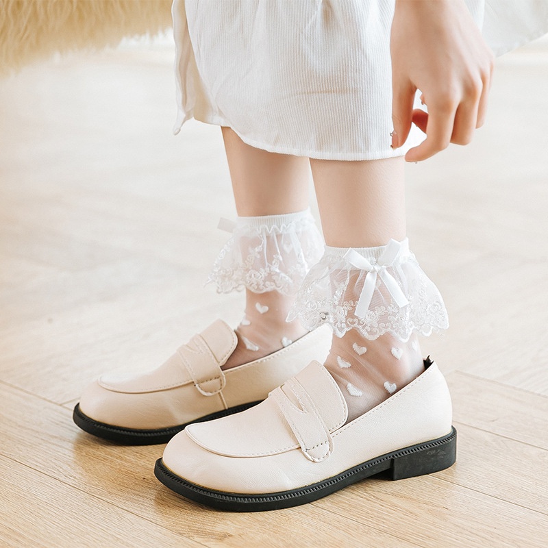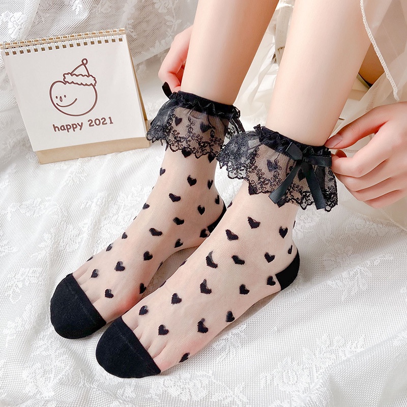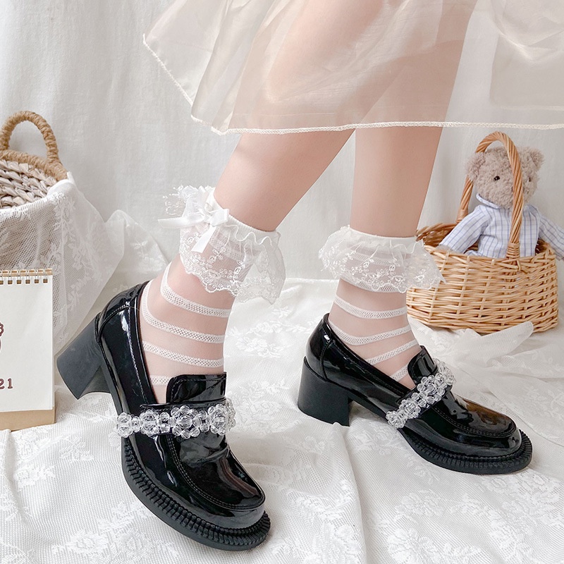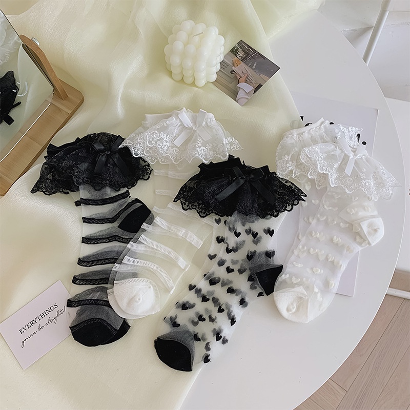 ผู้หญิงถุงเท้าแข็งสีดําสีขาวโลลิต้าลูกไม้นัวเนียถุงเท้าฤดูร้อนบางสไตล์ญี่ปุ่น น่ารัก สาวหวานน่ารักถุงเท้าสั้นผู้หญิง