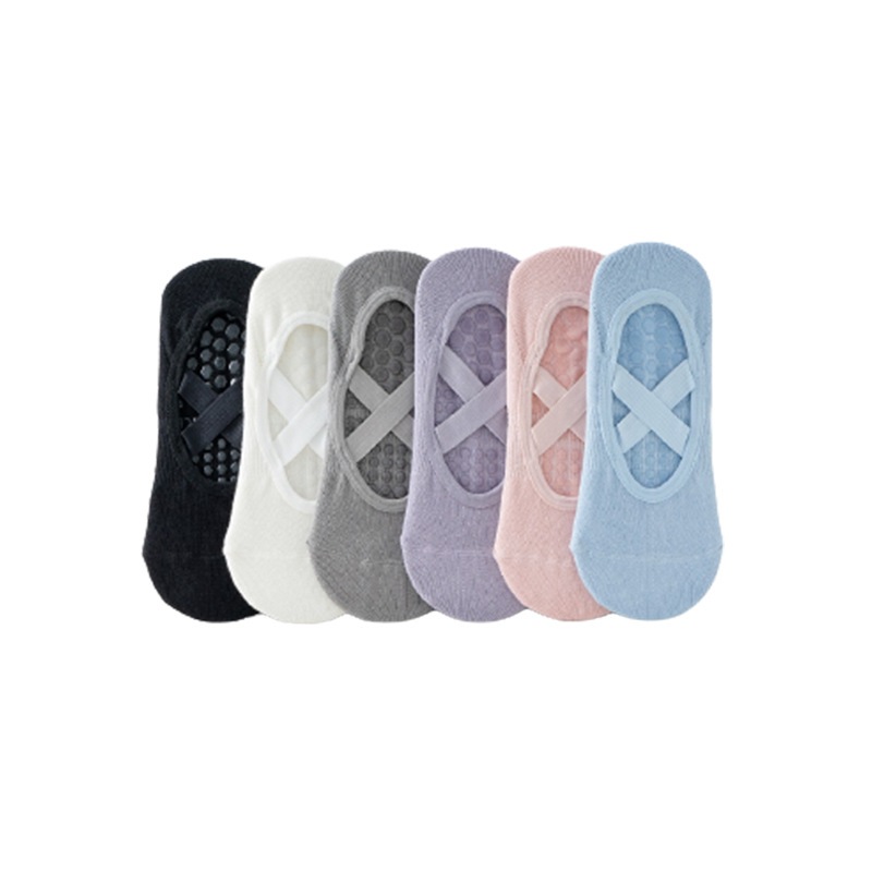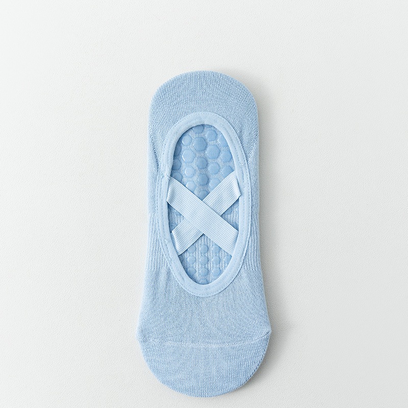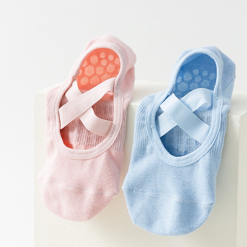 ถุงเท้าโยคะพิลาทิสของผู้หญิงลื่นจับและสายรัดบางผ้าฝ้ายซิลิโคนกันลื่นออกกําลังกายถุงเท้ากีฬา