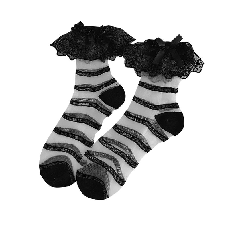 ถุงเท้าโลลิต้า แบบใส ประดับโบว์ ลูกไม้ ลายทาง สไตล์แฟรี่ สําหรับผู้หญิง