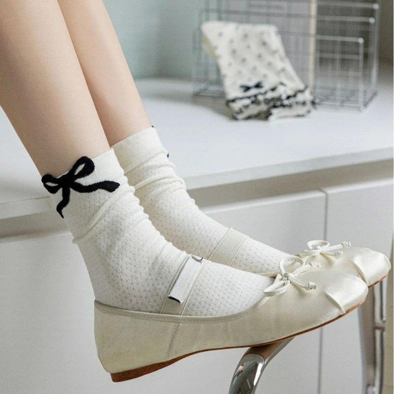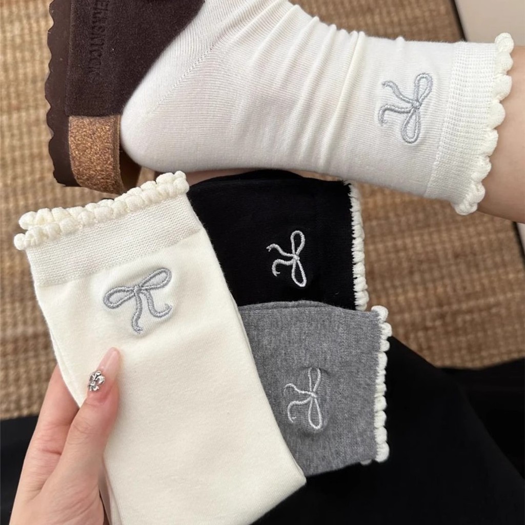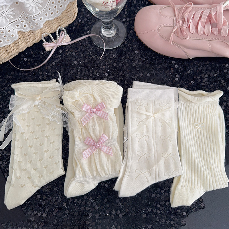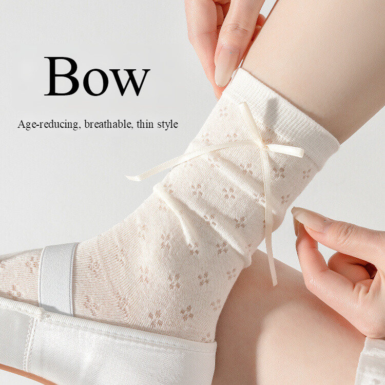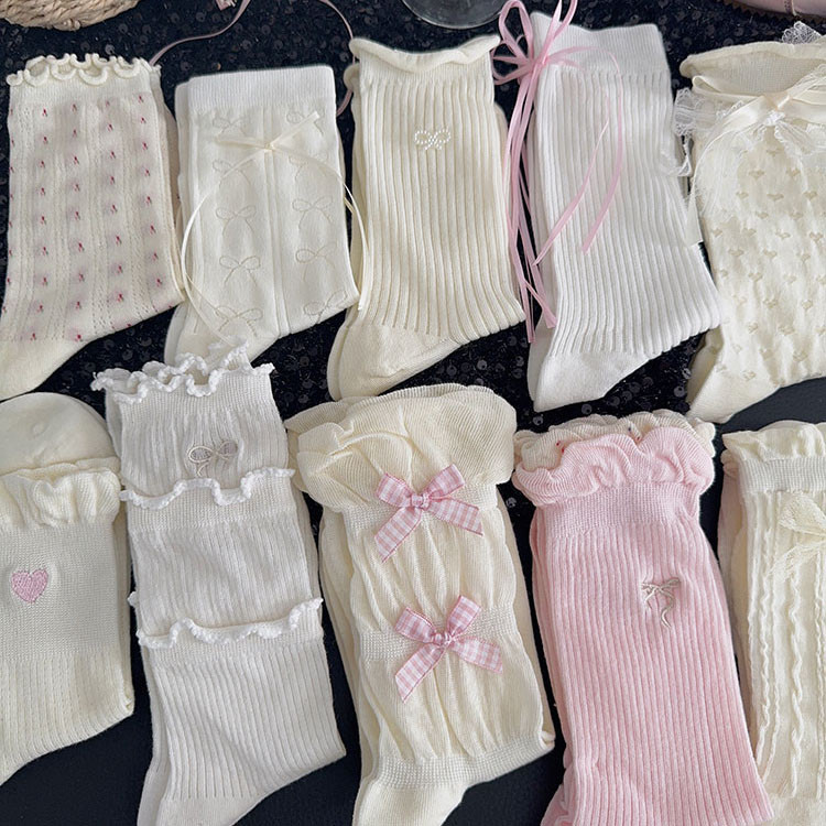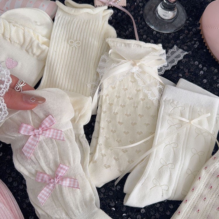 ถุงเท้าโบว์ลูกไม้สําหรับผู้หญิงฤดูร้อน เจเค ถุงเท้าโลลิต้าครึ่งน่อง