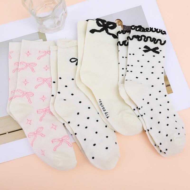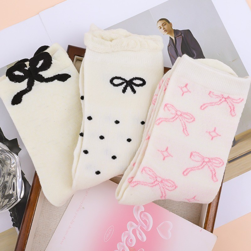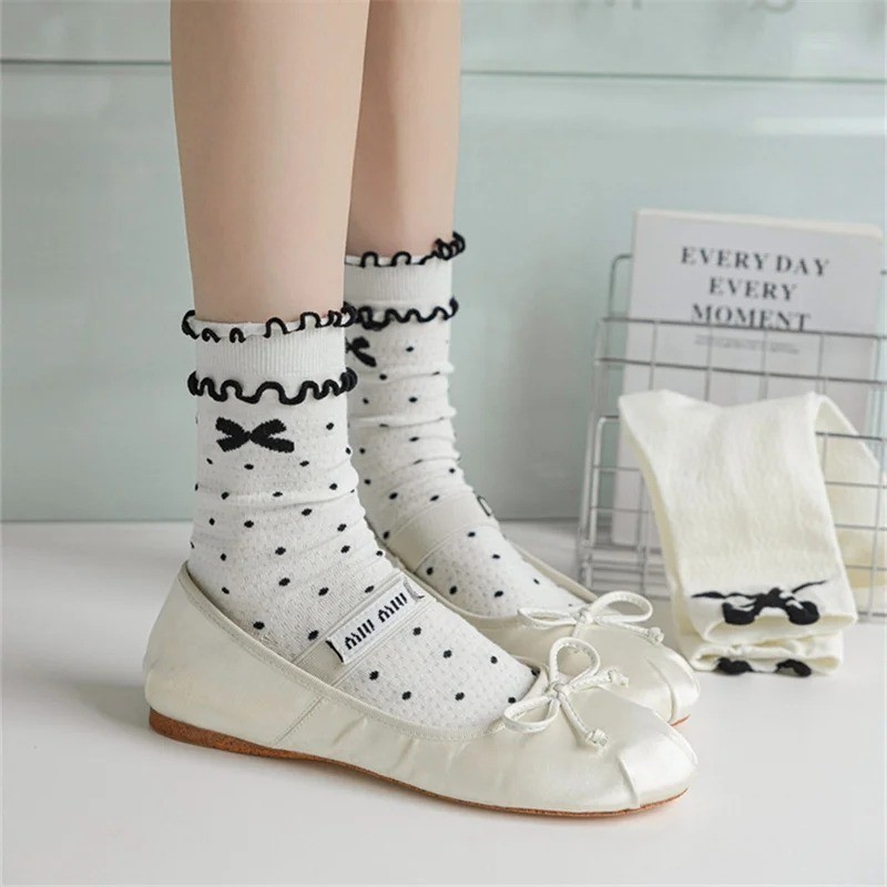 นัวเนียถุงเท้าหลอดกลาง-สําหรับสาวผู้หญิง-โบว์ลายจุดถุงน่อง-แฟชั่น,ระบายอากาศ,นุ่ม-สไตล์ญี่ปุ่น,เจเค,โลลิต้า-ฤดูใบไม้ผลิฤดูร้อนถุงเท้าบา