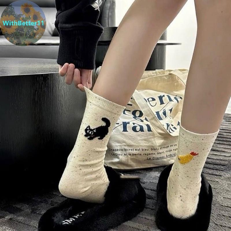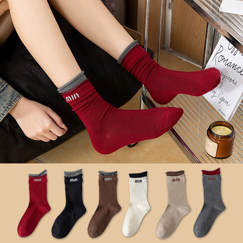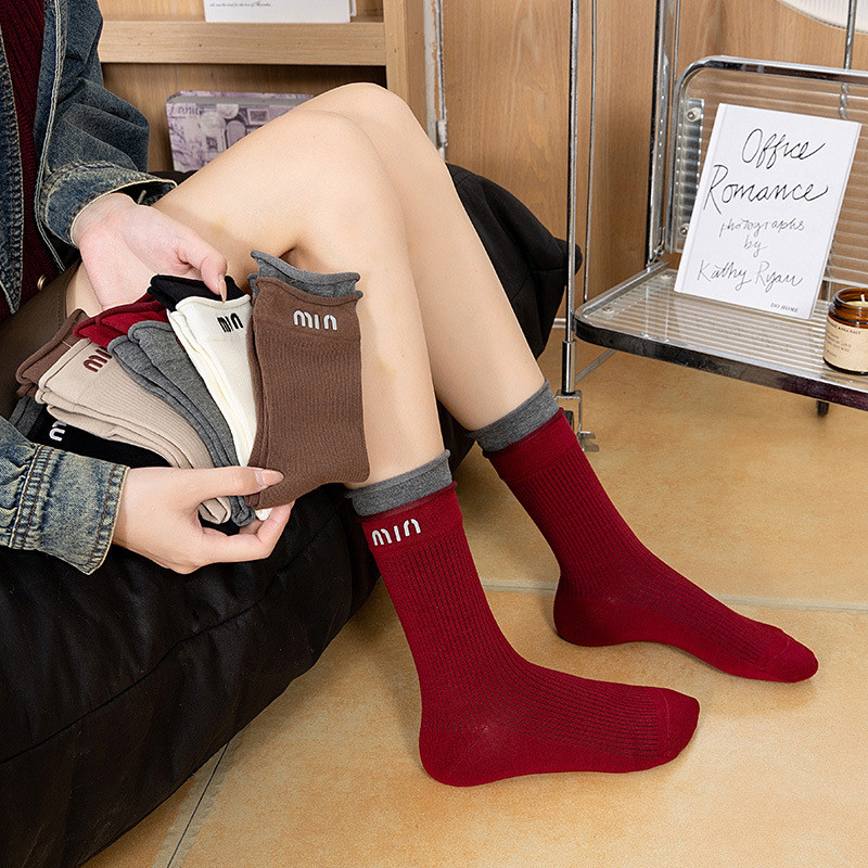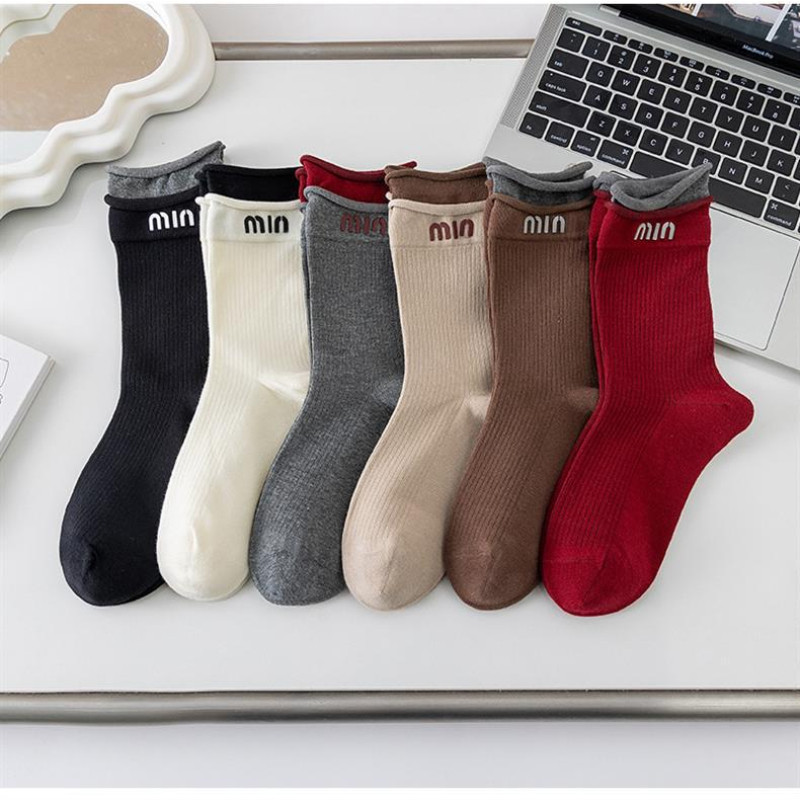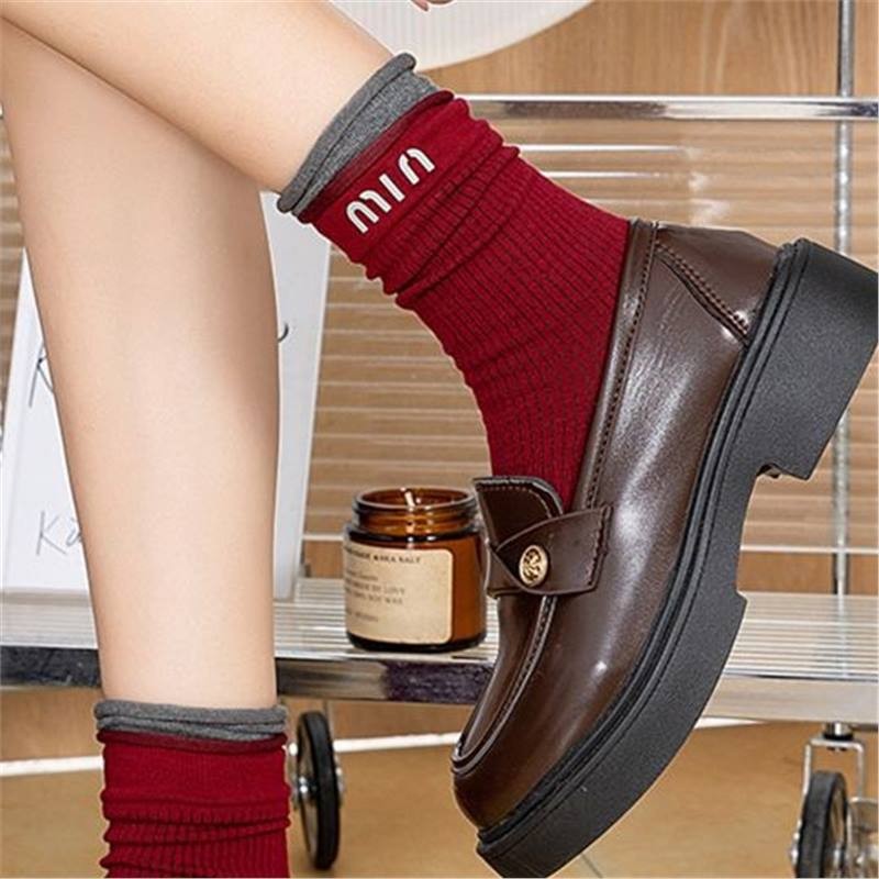 ผู้หญิง Miu สไตล์แฟชั่นถุงเท้ากลางหลอดอินเทรนด์ High End Double Curled การจับคู่สีถุงเท้า