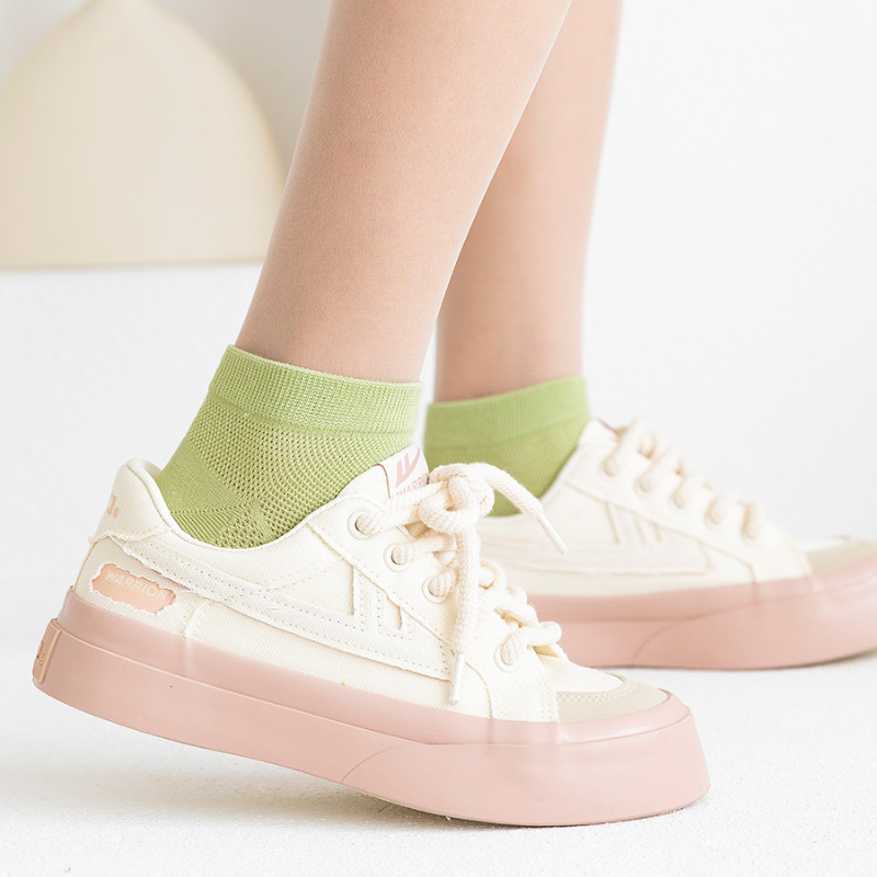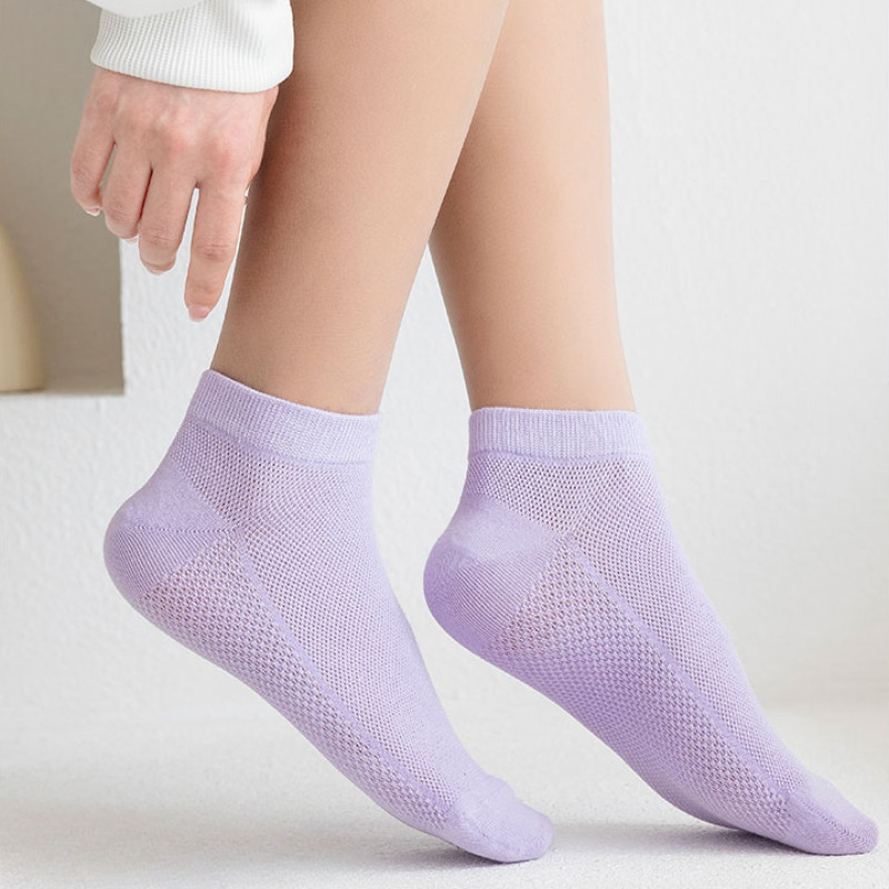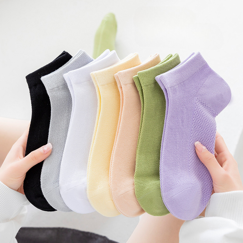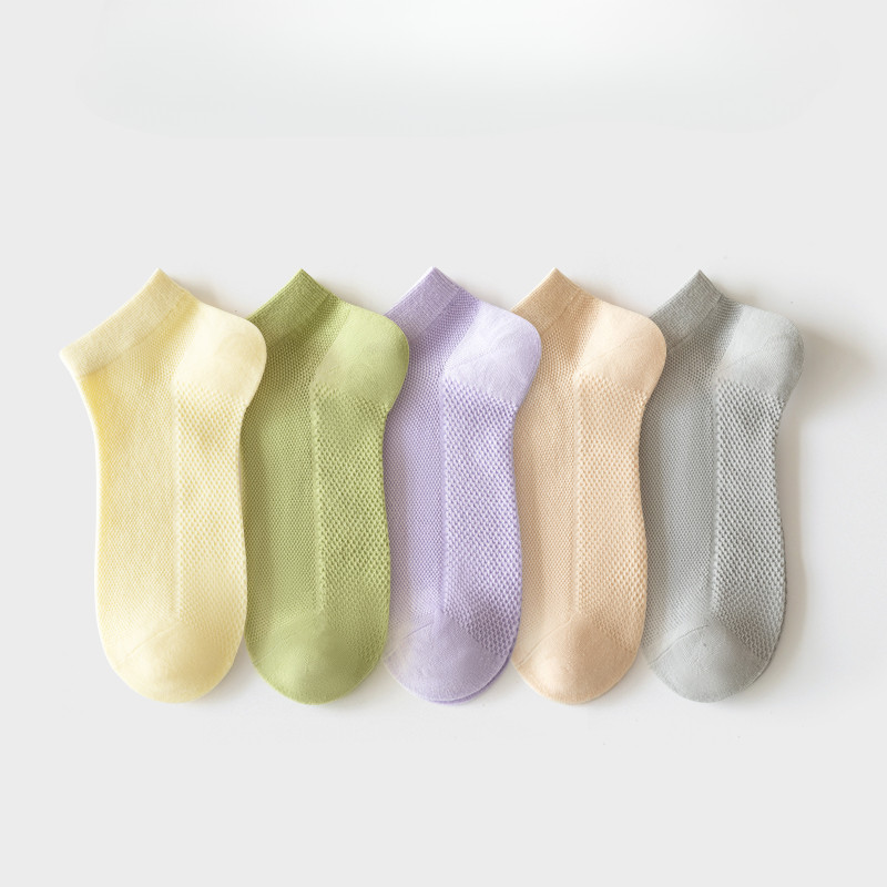 ผู้หญิงถุงเท้าเรือฤดูร้อนบางตาข่ายระบายอากาศสีทึบถุงเท้าลําลองสําหรับฤดูใบไม้ผลิฤดูร้อน2025ใหม่ ปลอบโยน พอดี