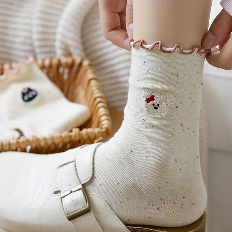 ถุงเท้าโลลิต้า แต่งหูไม้ สีขาว สไตล์ญี่ปุ่น สําหรับผู้หญิง นักเรียน