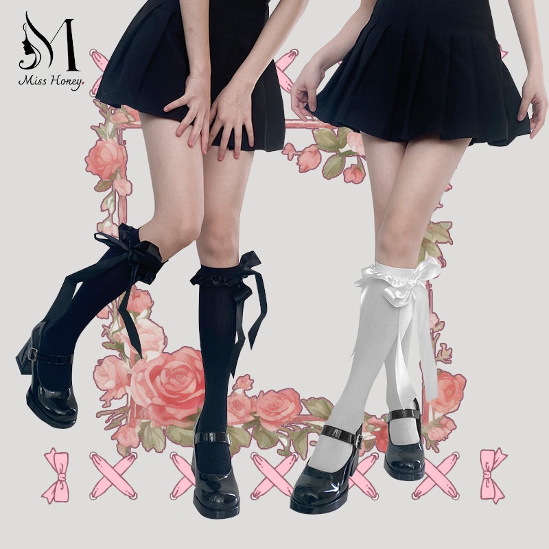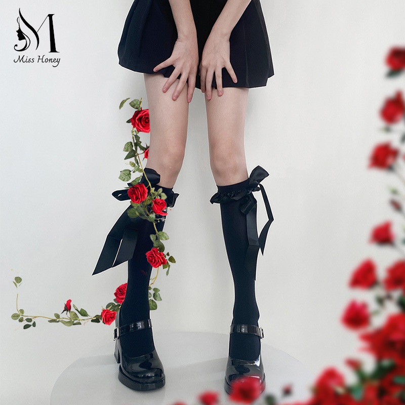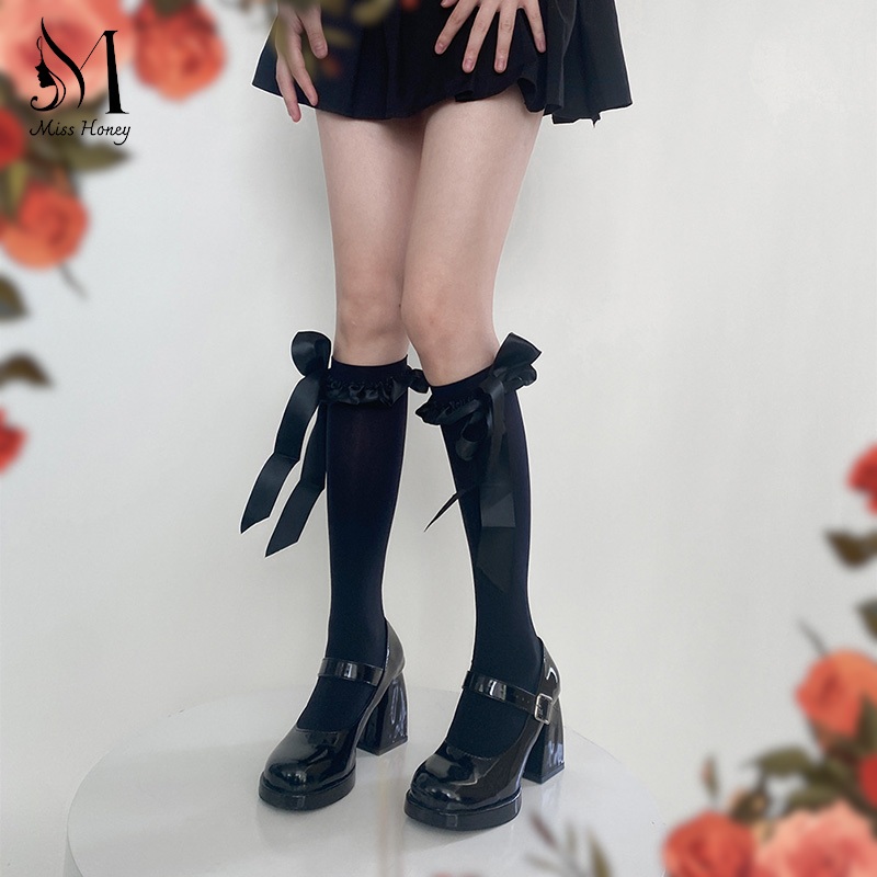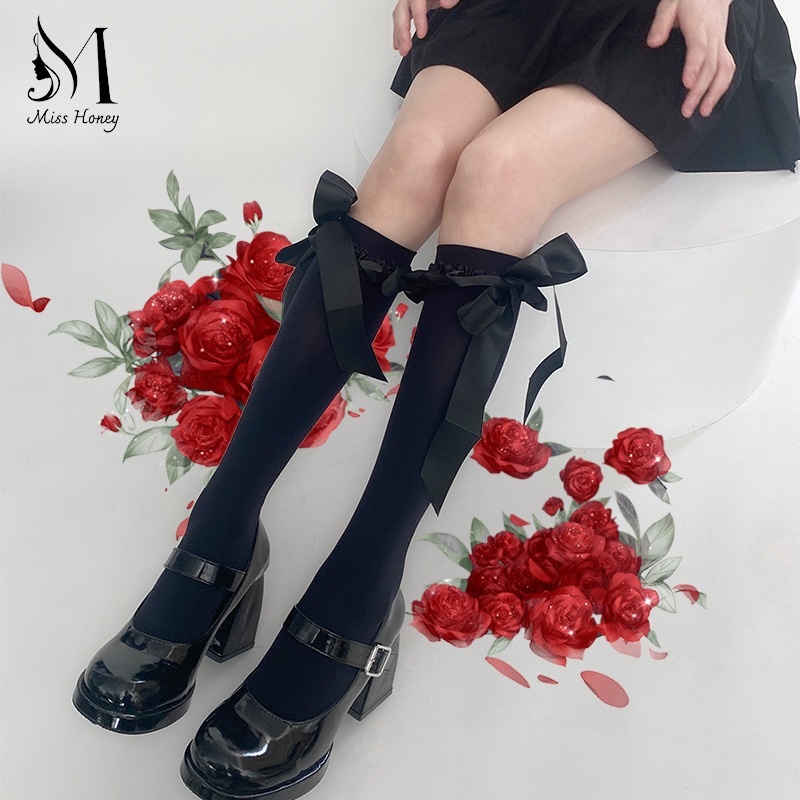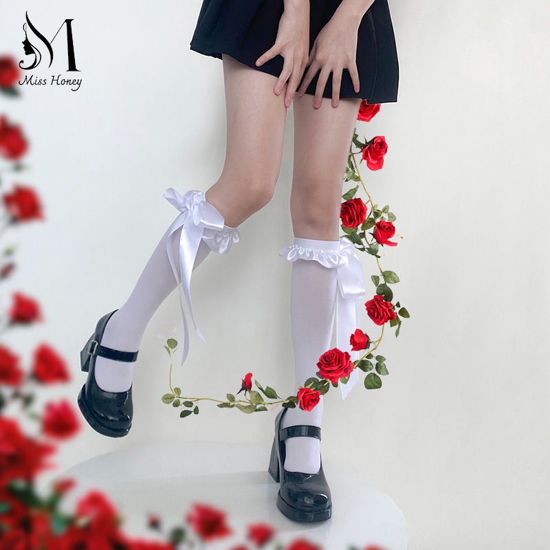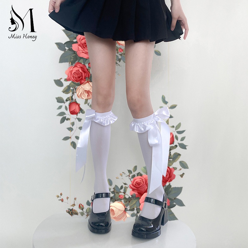 ถุงเท้าโลลิต้า ถุงน่องลูกไม้ ประดับโบว์ แฟชั่นฤดูใบไม้ผลิ และฤดูร้อน สไตล์ญี่ปุ่น สําหรับเด็กผู้หญิง