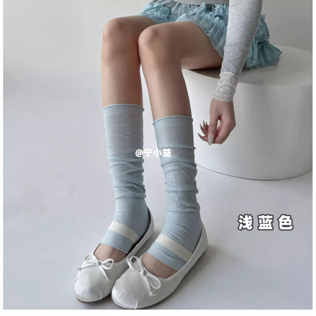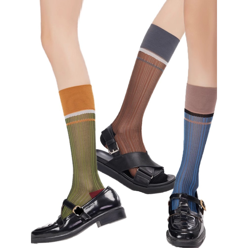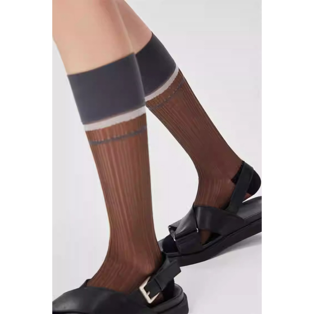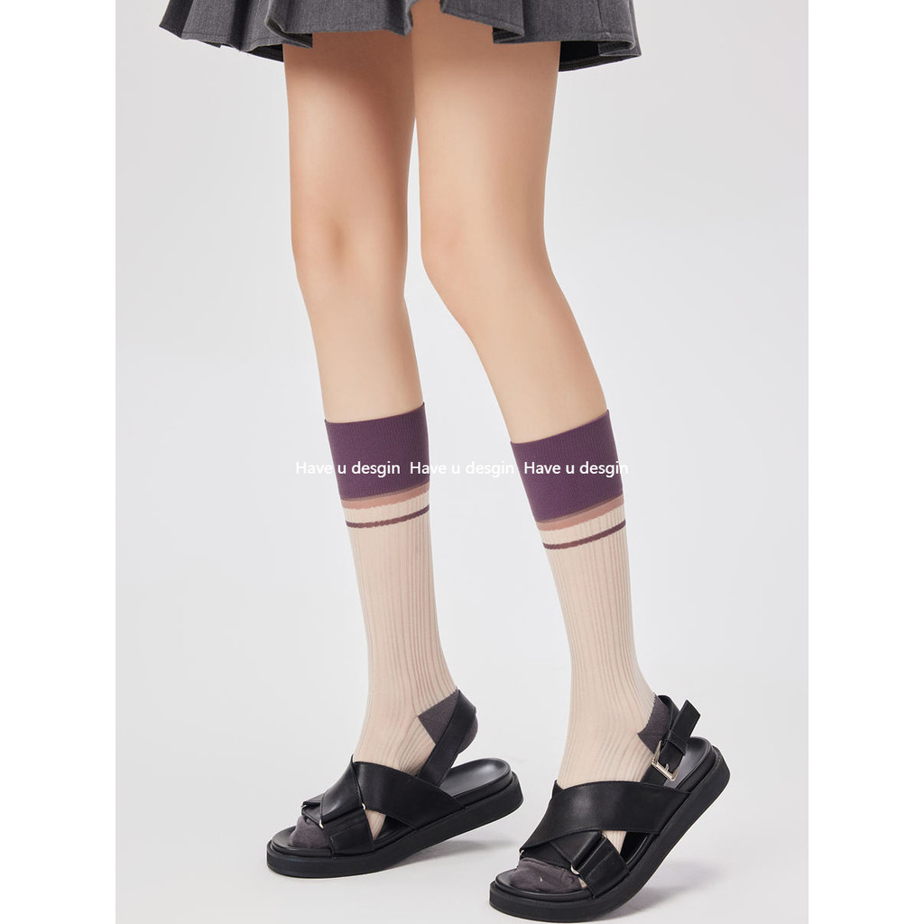 มี u desgin Retro Cass ถุงเท้าผู้หญิงกลางหลอดฤดูใบไม้ผลิฤดูร้อนบางโปร่งใสแก้วผ้าไหมหลอดยาวกอง INS ถุงเท้าลูกวัว
