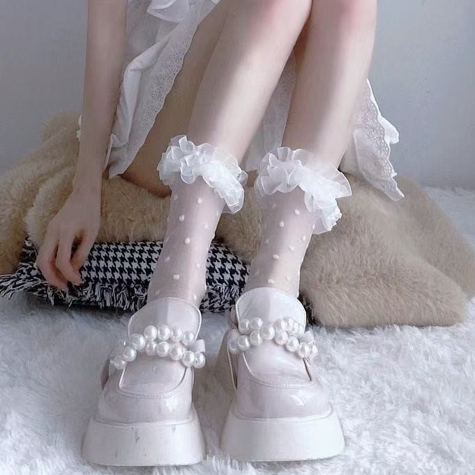 ฤดูร้อนญี่ปุ่น Lolita ถุงเท้ากองสีขาวลูกไม้ Polka Dot ถุงเท้ากลางหลอด Jk