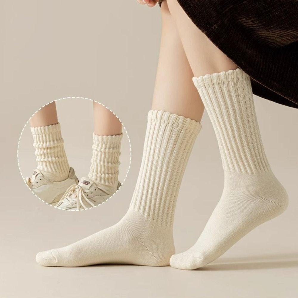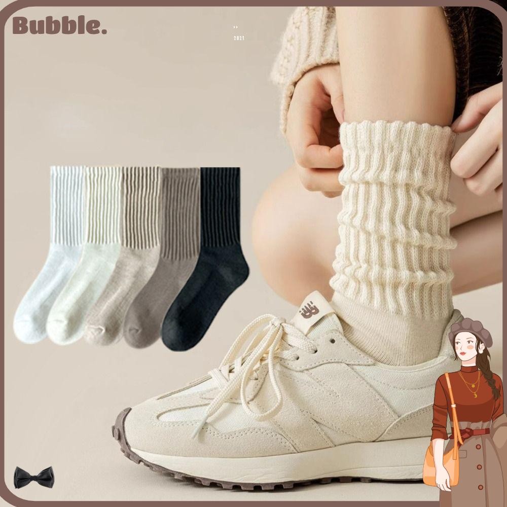 ฟอง ถุงเท้าท่อกลาง,หลวมโครเชต์อบอุ่นถักถุงเท้ายาว,ลําลองยืดหยุ่นสีทึบผ้าฝ้ายผู้หญิงถุงน่องสาว