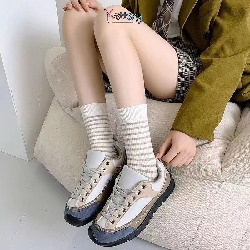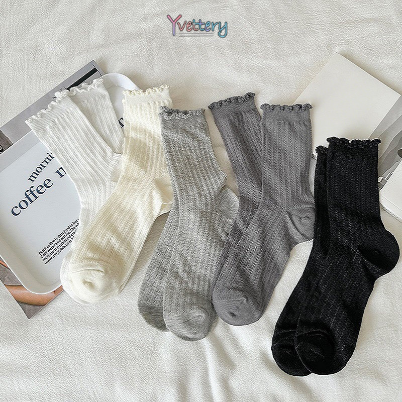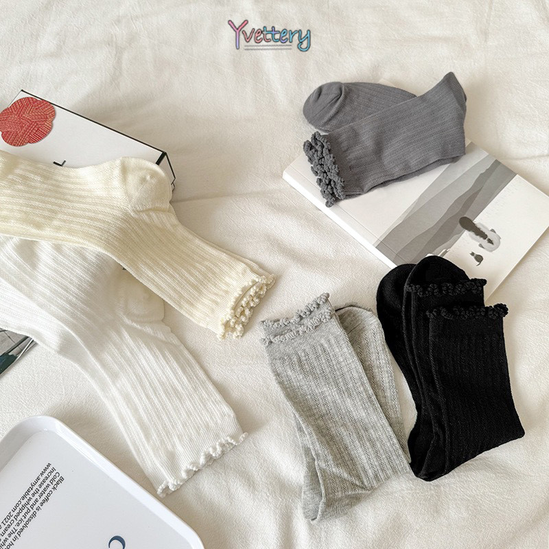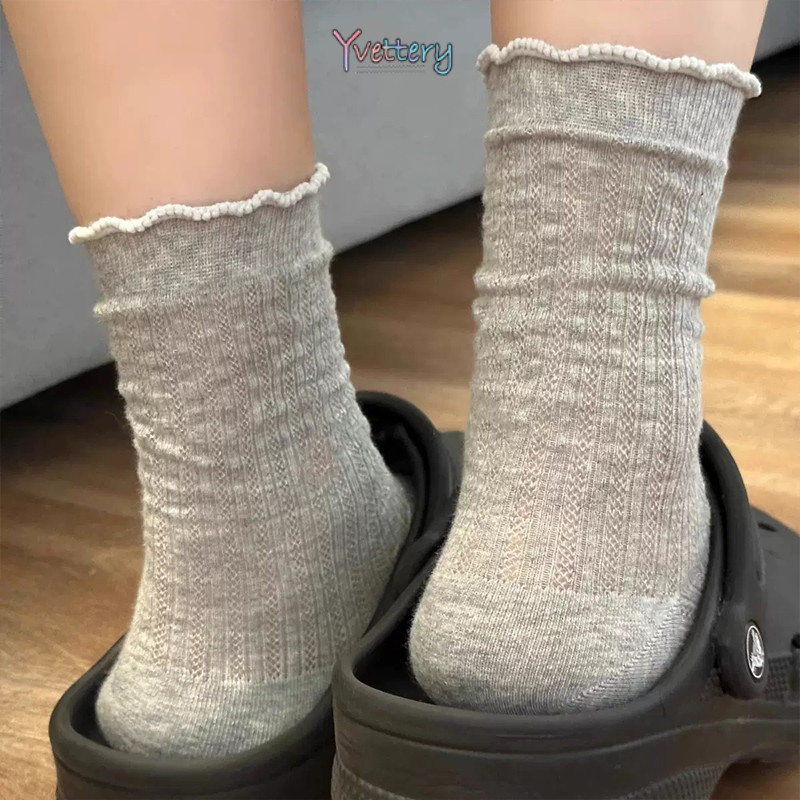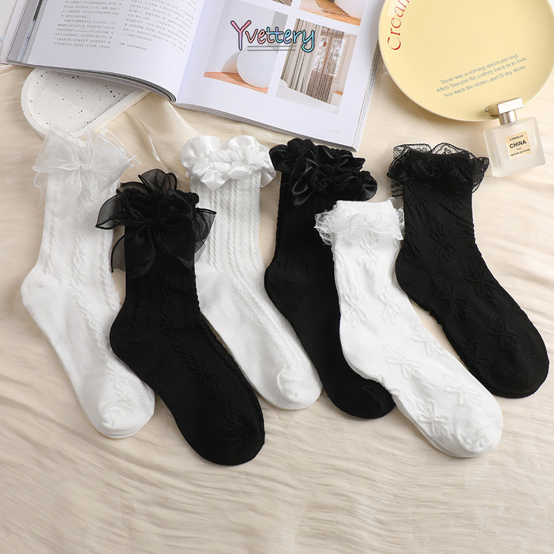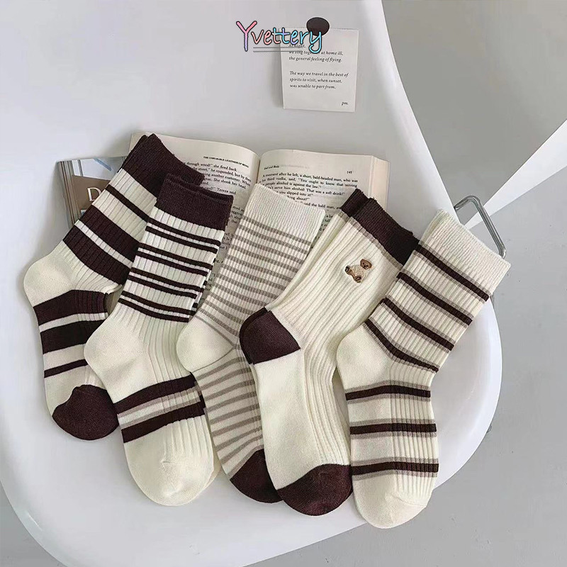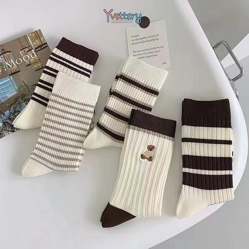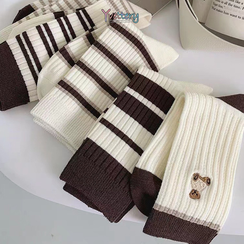 ร้านค้าไทย🌸แฟชั่นร้อยถุงเท้ากลางกระบอก Mori ลมหมีน้อยถุงเท้าผู้หญิงระบายอากาศถุงเท้านักเรียน-yvettery.th