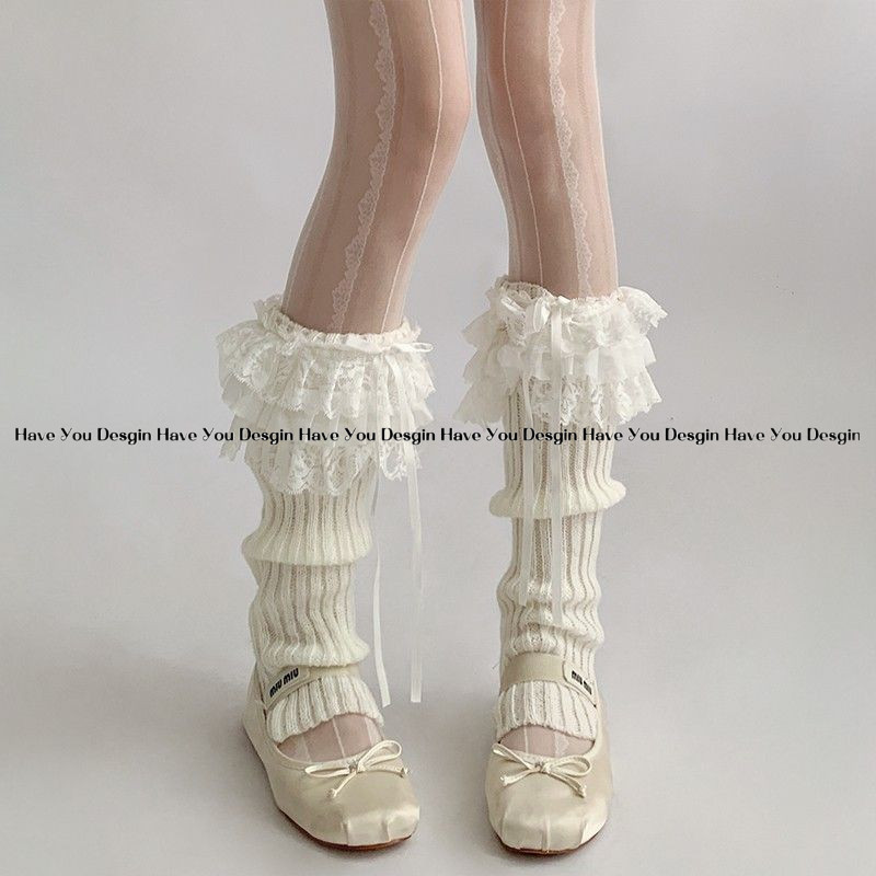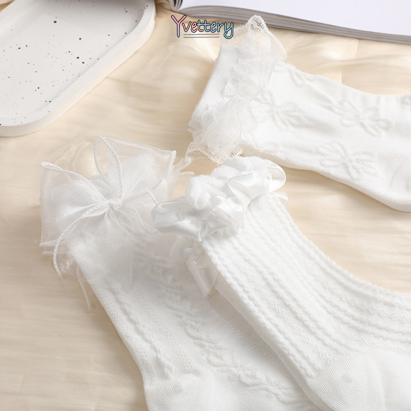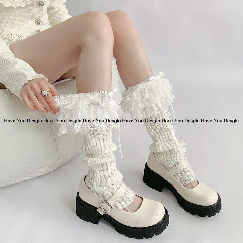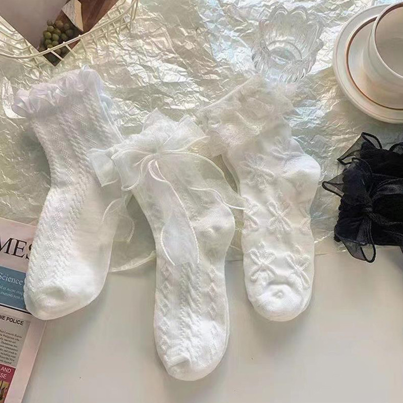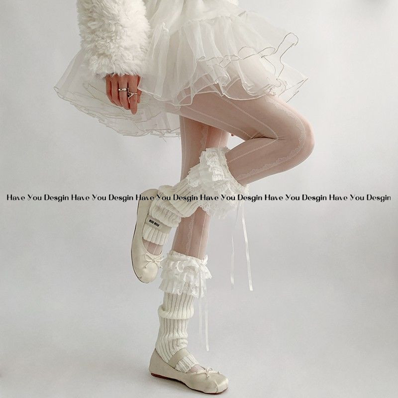 มี ยู เดสจิน ถุงเท้าสีขาวฤดูหนาวลูกไม้ถุงเท้าโลลิต้าถุงเท้าหญิงโบว์ขาปกกองถุงเท้า