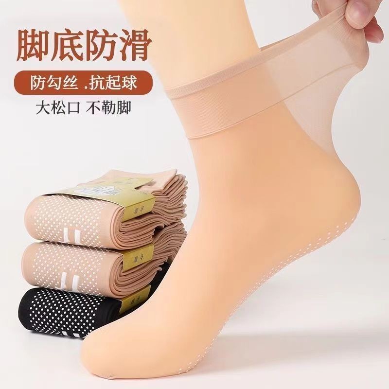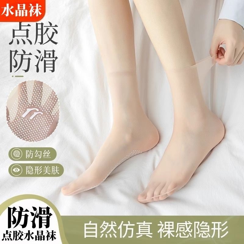 มก [สไตล์ขายดี] ถุงเท้ากาวคริสตัลจุดกันลื่นผู้หญิงฤดูร้อนบางเฉียบป้องกันการขัดขวางระงับกลิ่นกายสวมทนถุงเท้ากลางหลอดไม่มีรอยต่อเนื้อสีอินวิส