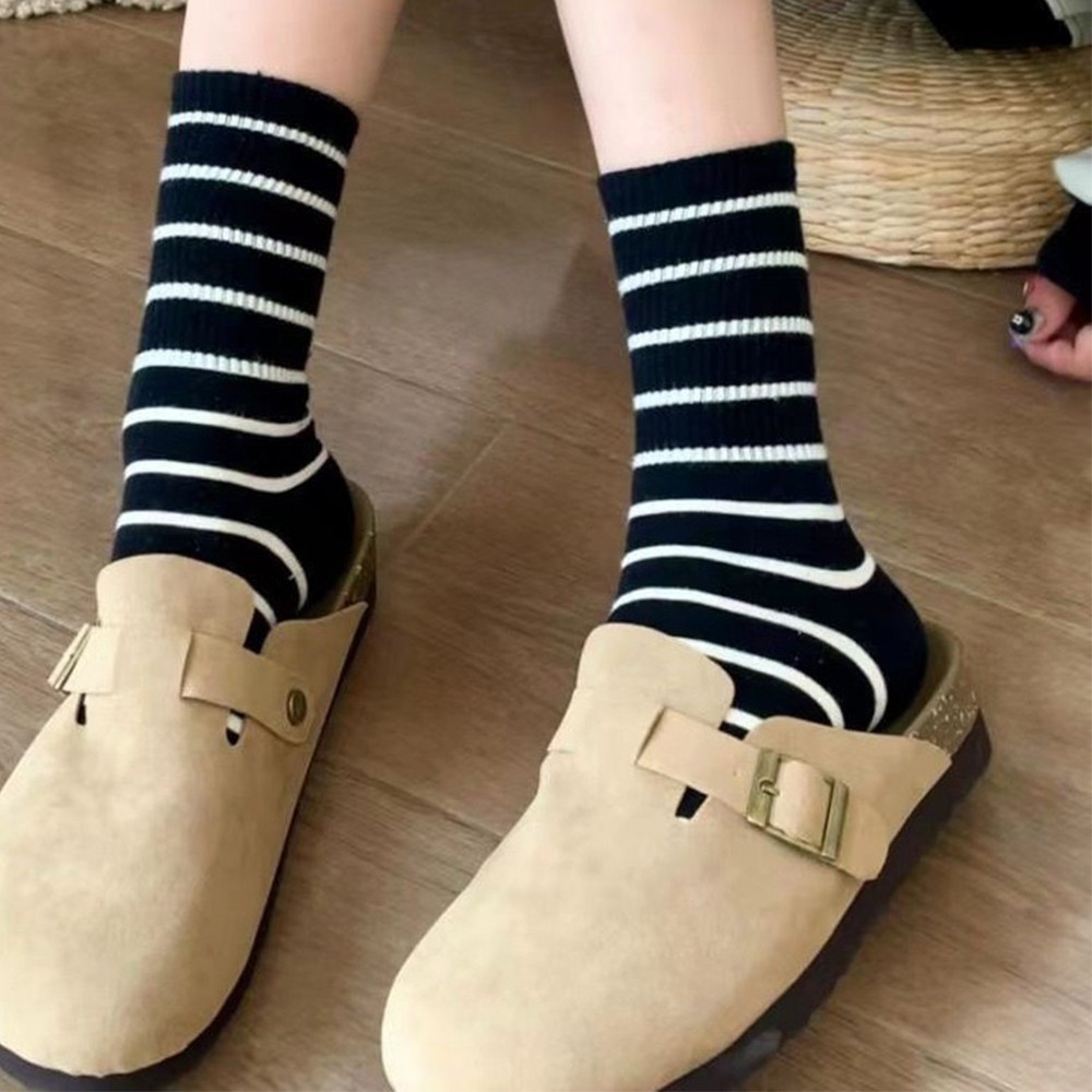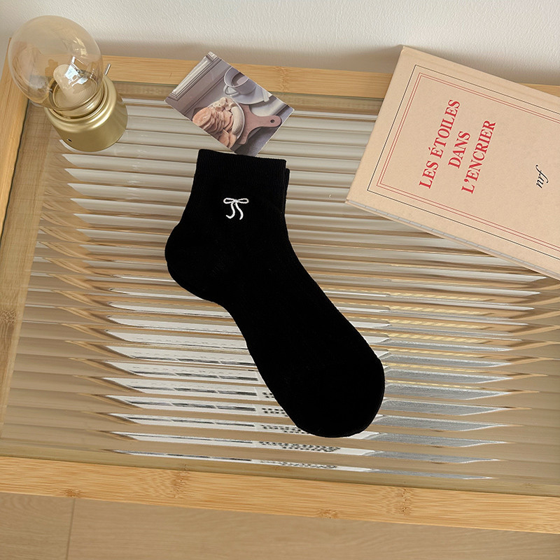 ใหม่ ถุงเท้ากีฬา ผ้าฝ้าย ความยาวปานกลาง ลายดาว สีดํา และสีขาว แฟชั่นฤดูใบไม้ผลิ และฤดูใบไม้ร่วง สําหรับผู้หญิง