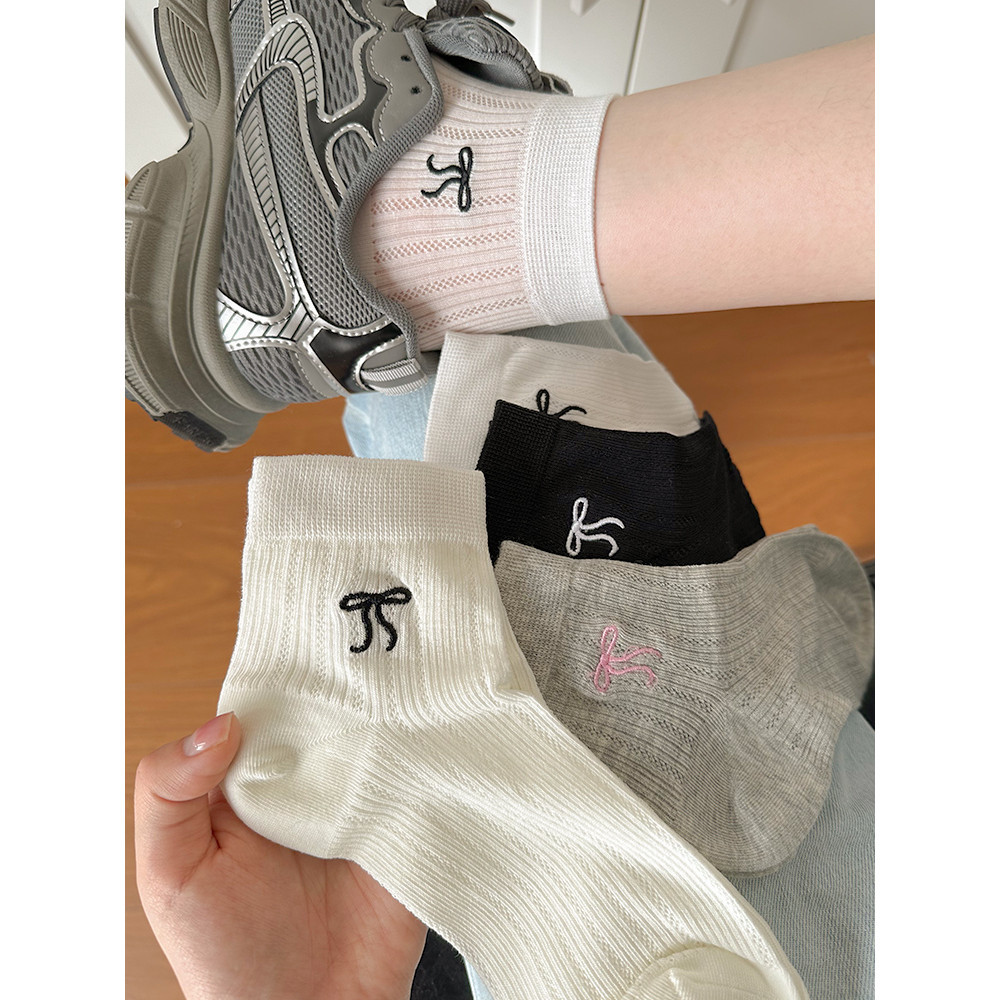 สไตล์บัลเล่ต์ขนาดเล็กกุทัณฑ์ปักสีขาวหลอดสั้นถุงเท้าผู้หญิงฤดูร้อนบางสไตล์ระบายอากาศญี่ปุ่นน่ารักหวานโลลิต้าถุงเท้าหลอดกลางเจเคถุงเท้าข้อ