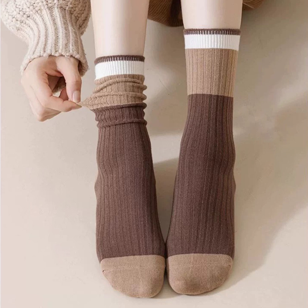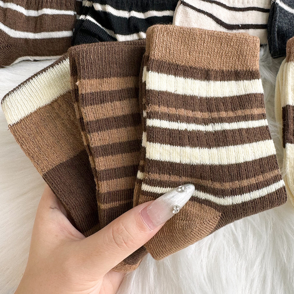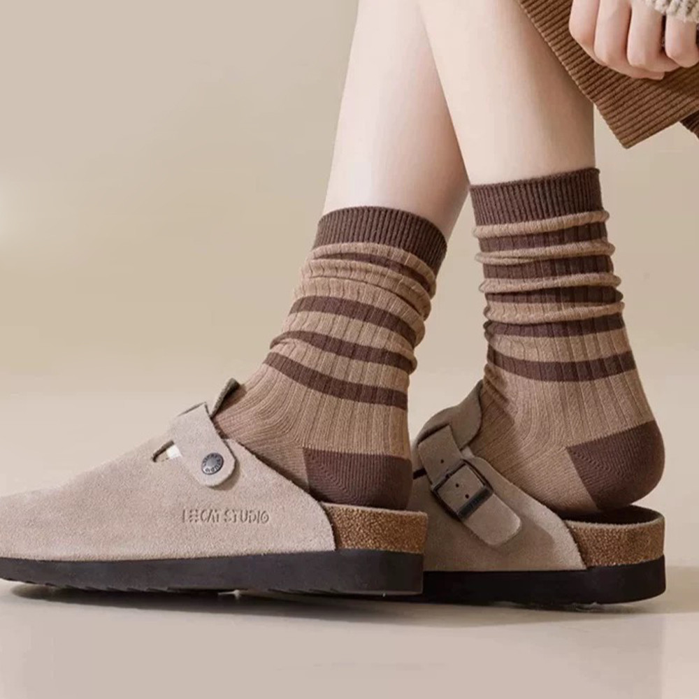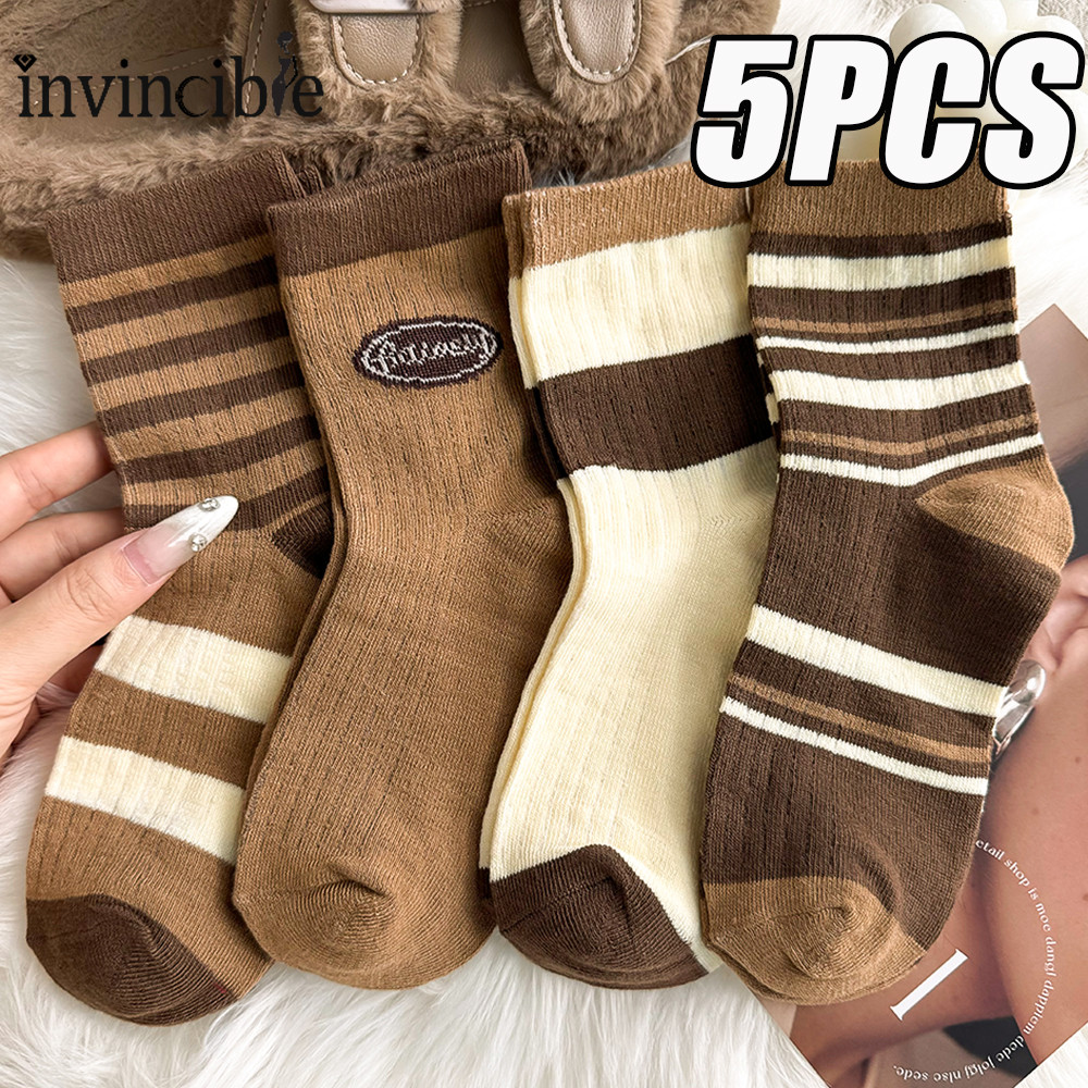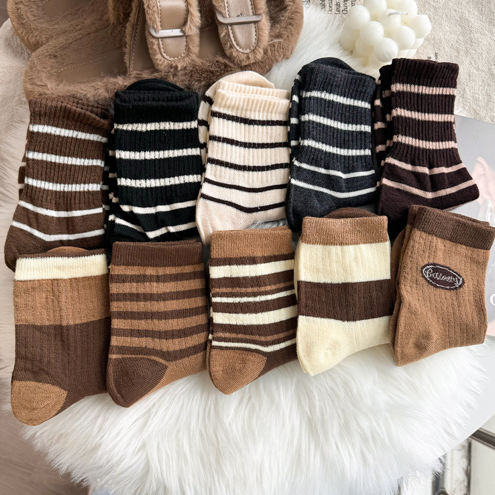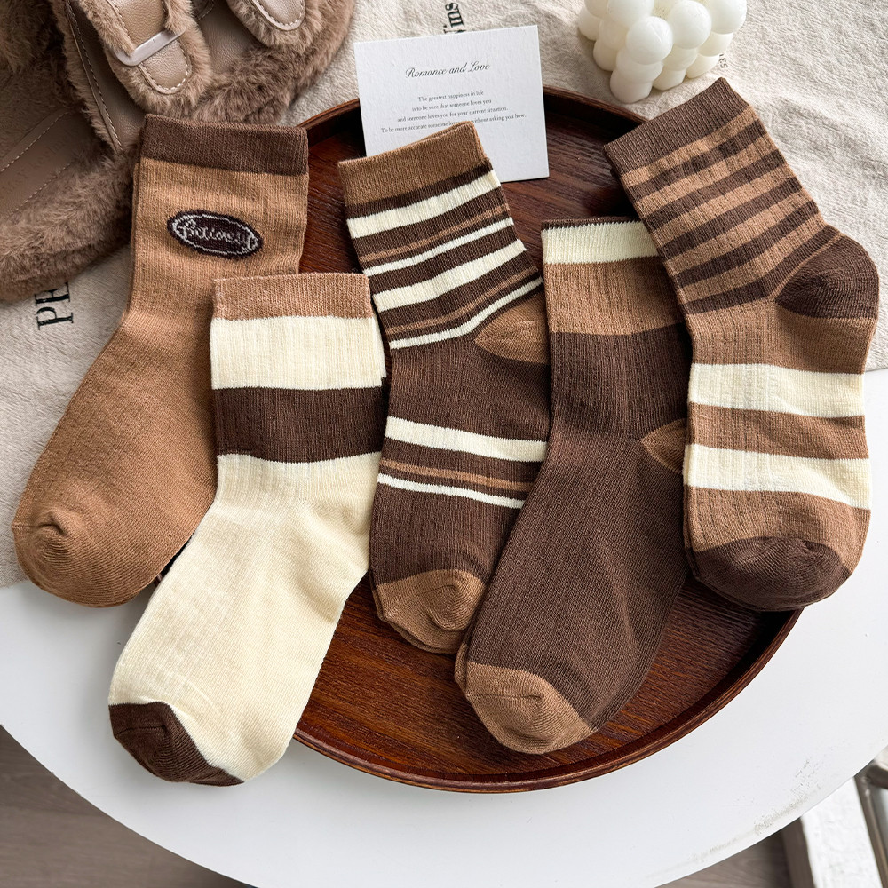 เครื่องประดับแฟชั่นถุงเท้าซ้อนซีรีส์สีน้ําตาลสไตล์วิทยาลัย – ถุงเท้าหลอดกลางระบายอากาศสี Maillard แฟชั่น