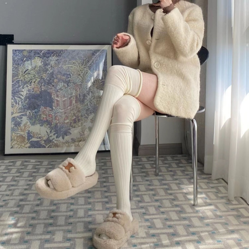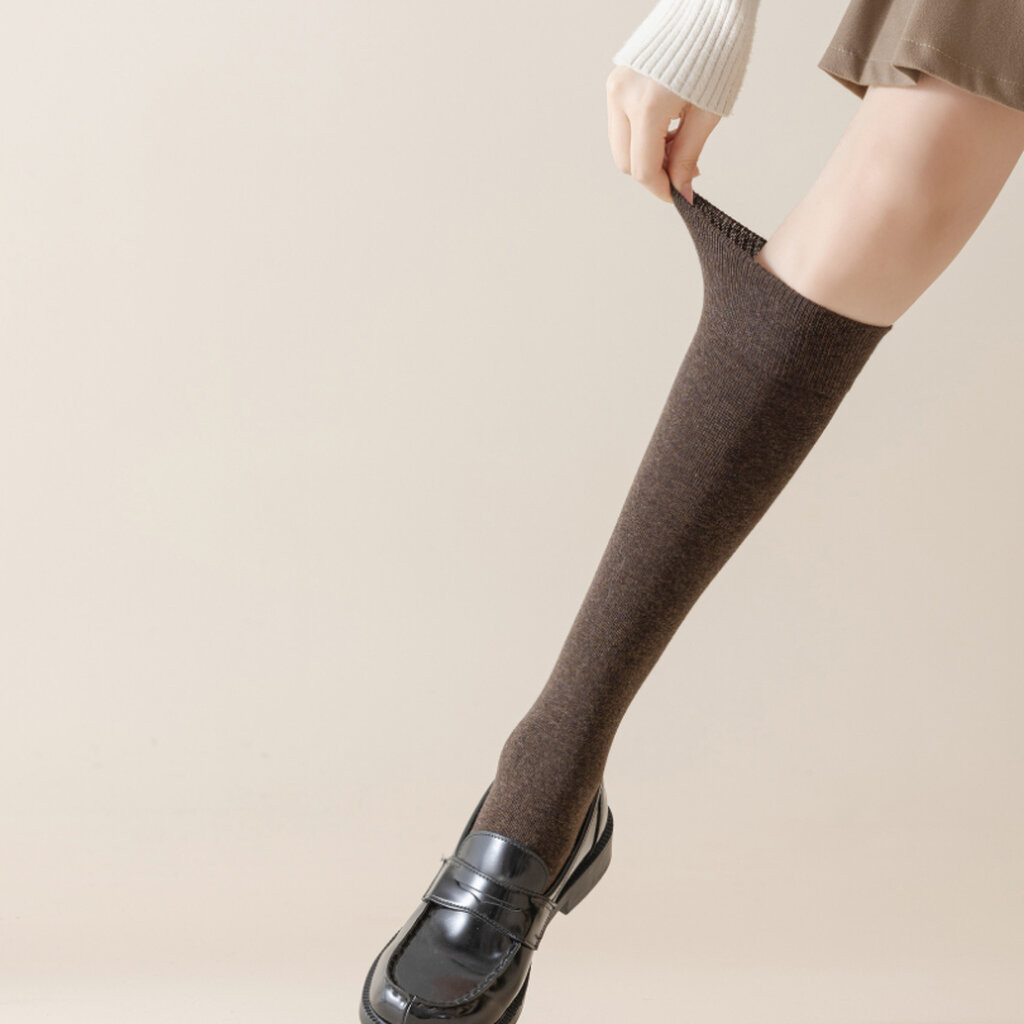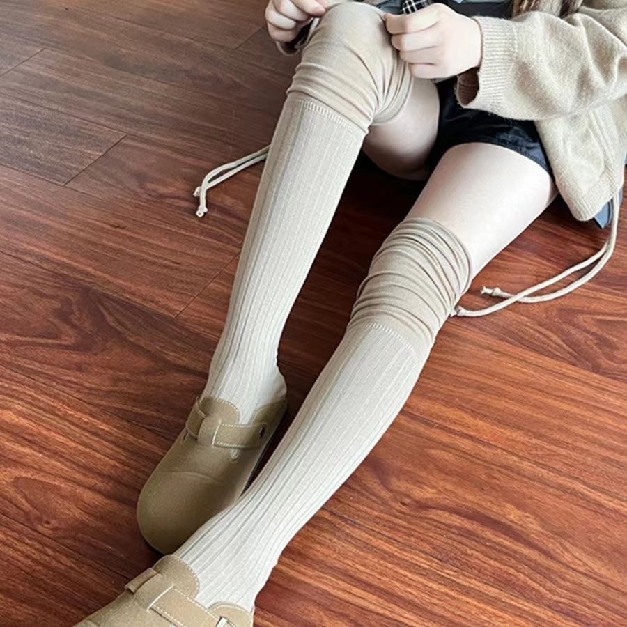 🇰🇷ถุงน่อง ถุงเท้าใต้เข่า สไตล์เกาหลี ผ้ากำมะหยี่ สีพื้น สำหรับผู้หญิง
