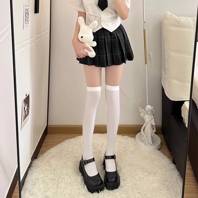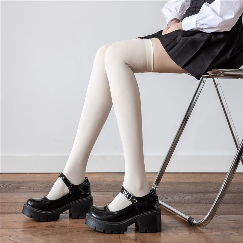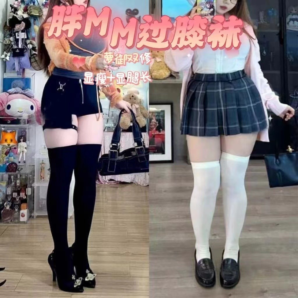 เสื้อผ้าผู้หญิงไซส์ใหญ่สไตล์เกาหลีถุงเท้าคลุมเข่าไซส์ใหญ่สำหรับสาวอวบถุงเท้ากำมะหยี่สีขาวถุงน่องผู้หญิงถุงน่องใส่แล้วดูผอม JK สีดำถุงน่องสีขาวเหนือเข่า