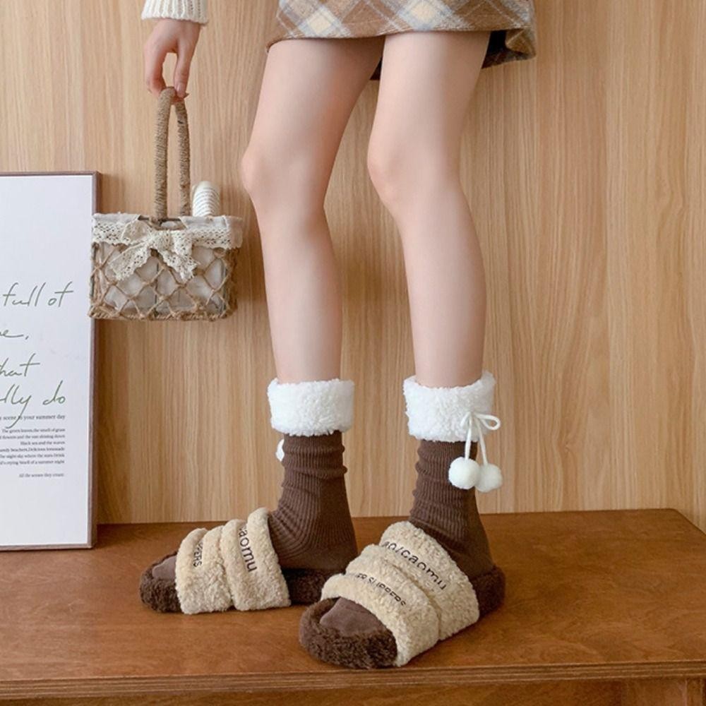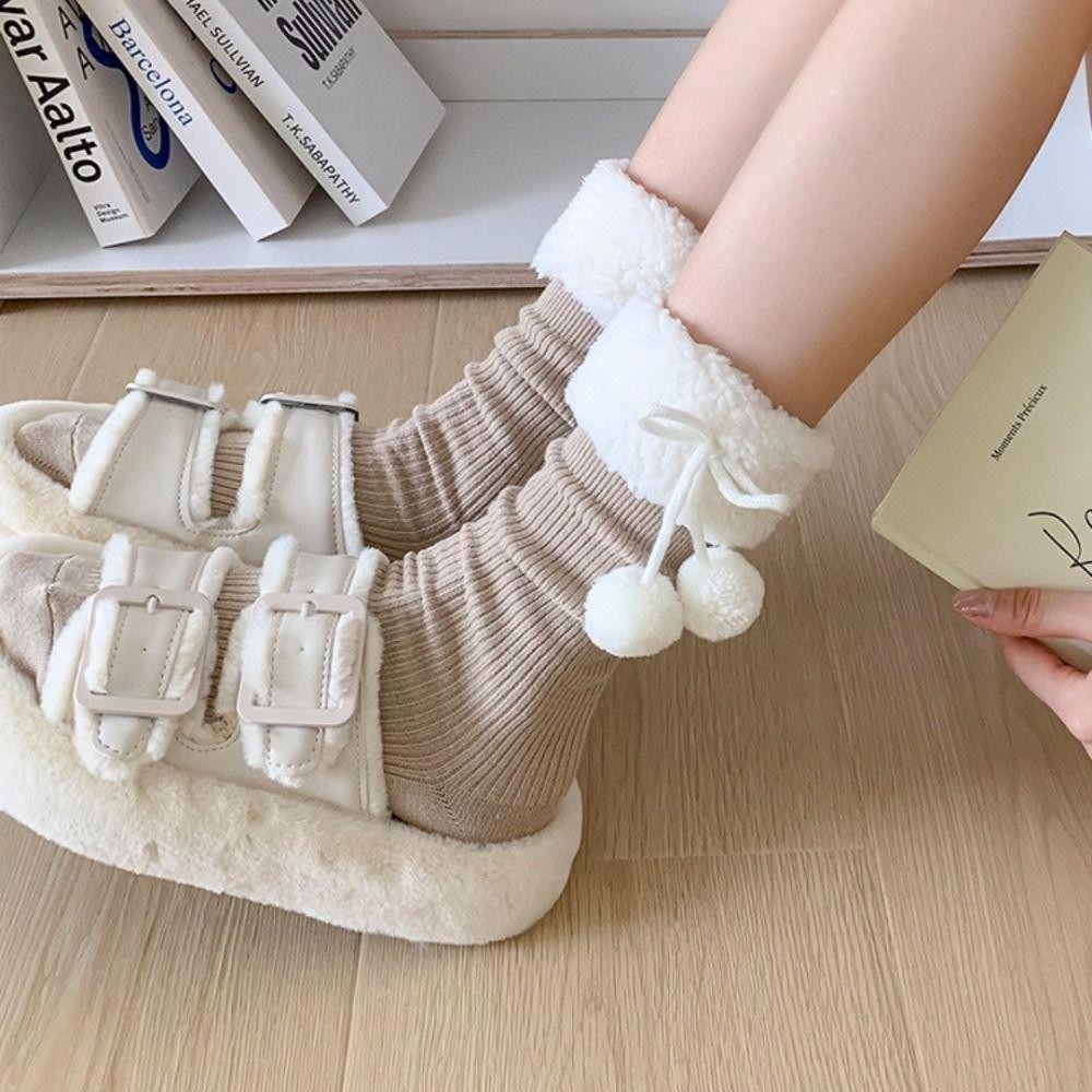 โบว์ถุงเท้าบูตหิมะ.Pushan ทำจากผ้าฝ้ายสีทึบ สวมใส่ง่ายและให้ความอบอุ่นสำหรับฤดูหนาว