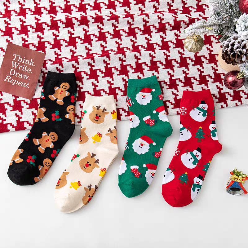 แพ็ค 1คู่/5คู่ ถุงเท้าข้อยาว คริสต์มาส น่ารักๆ ถุงเท้าซานตาคลอส สโนว์แมน พร้อมส่ง