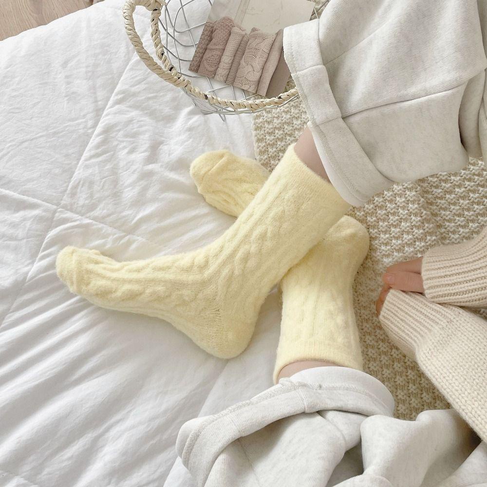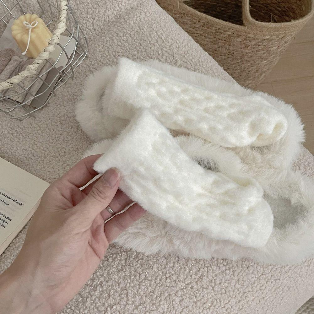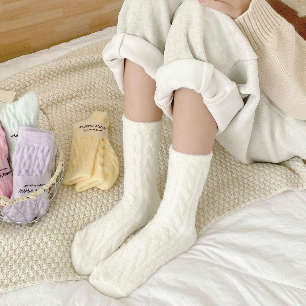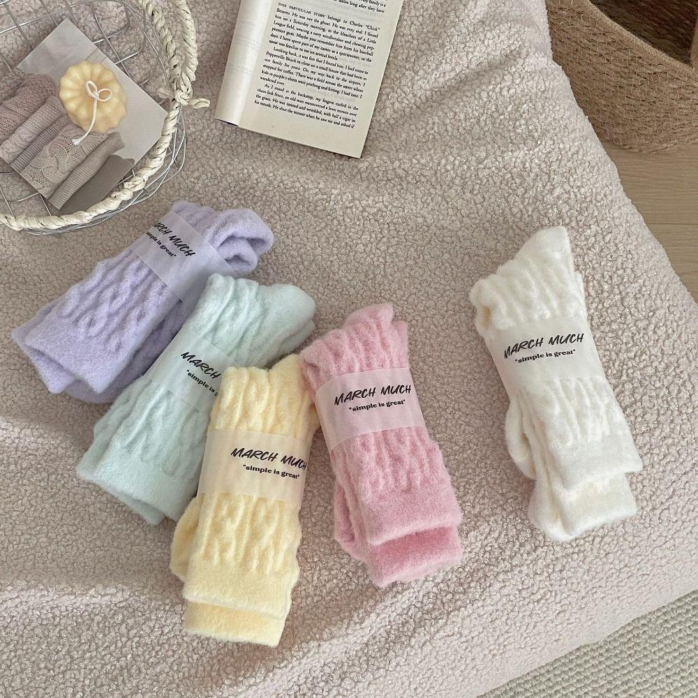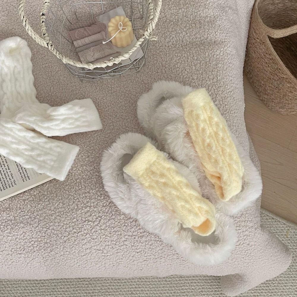 JUONUYIE ถุงเท้ากลางหลอด, ฤดูใบไม้ผลิผ้าฝ้ายหญิงถุงเท้าลายยืดหยุ่น, นุ่มสีแดงน่ารักโบว์ถัก Anti-slip Snow Boot ถุงเท้าผู้หญิงของขวัญ