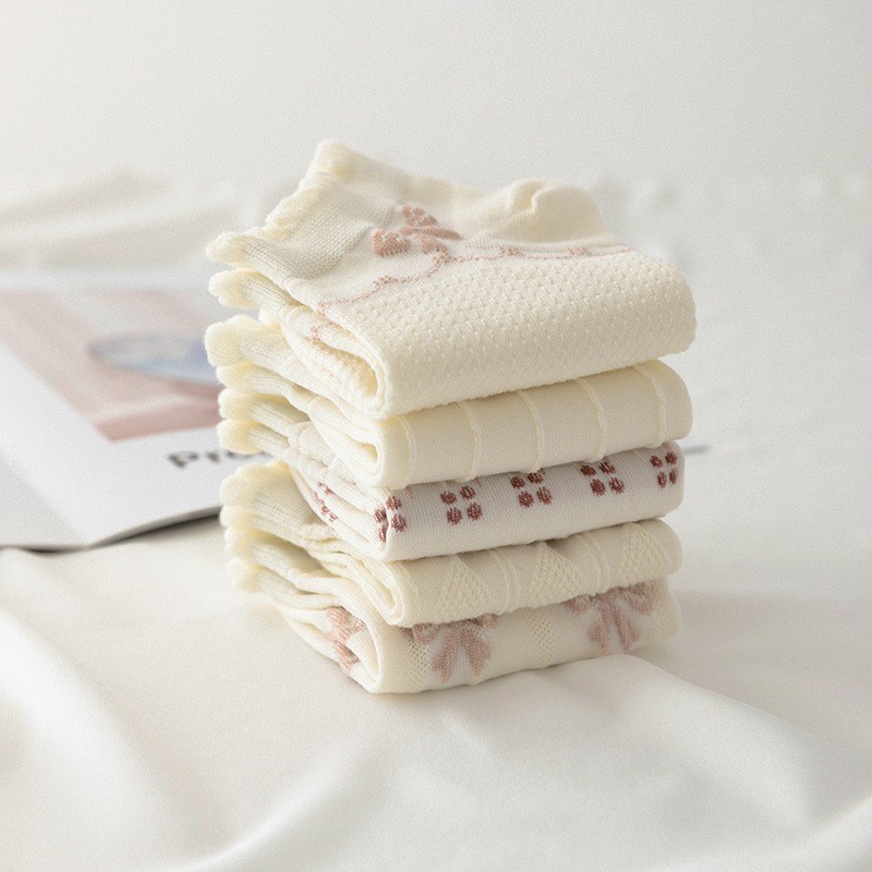 JH SHOP ถุงเท้าข้อสั้น (5ลาย/10คู่) ถุงเท้าแฟชั่นเกาหลี เนื้อผ้านุ่มงานถักอย่างดี ลายดอกไม่ NO.B60