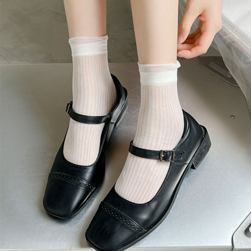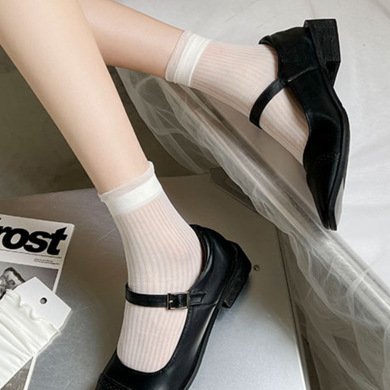 Lolita ถุงเท้าสีขาวผู้หญิงฤดูร้อน JK สไตล์บัลเล่ต์ลูกไม้