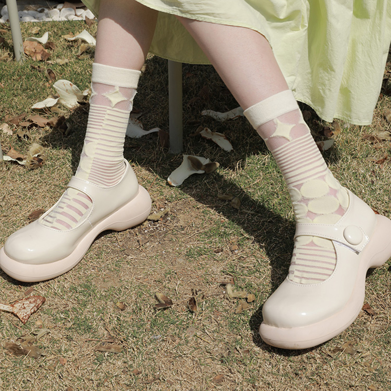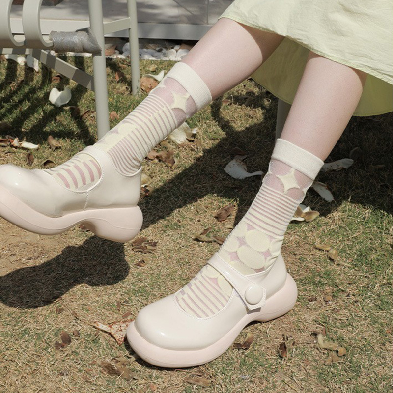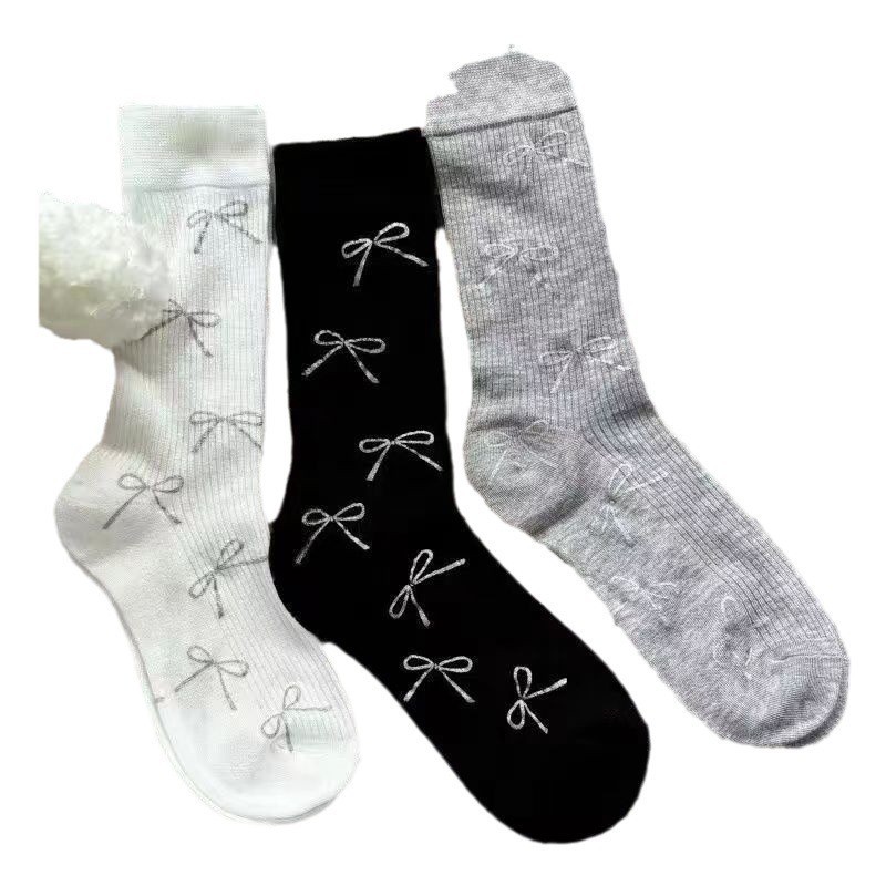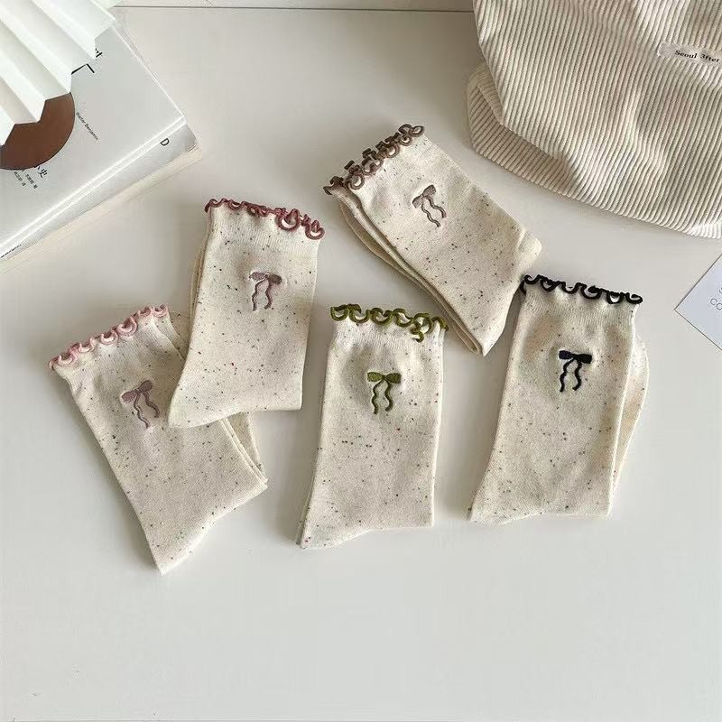 Spring Summer Thin Style miu Style Breathable Bow ins Ballet Style Socks Womens Mid-tube Socks Japanese Sweet Pile Socks