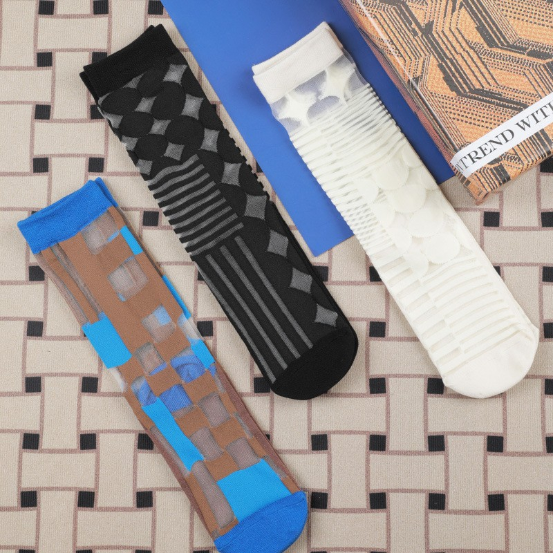 Springevengrace ฤดูร้อนผู้หญิง Ultra Thin ดอกไม้เซ็กซี่โปร่งใส Ice Glass Filament หลอดยาวเกาหลีลูกไม้กลางหลอดถุงเท้าคริสตัล Lolita ถุงเท้าใหม่