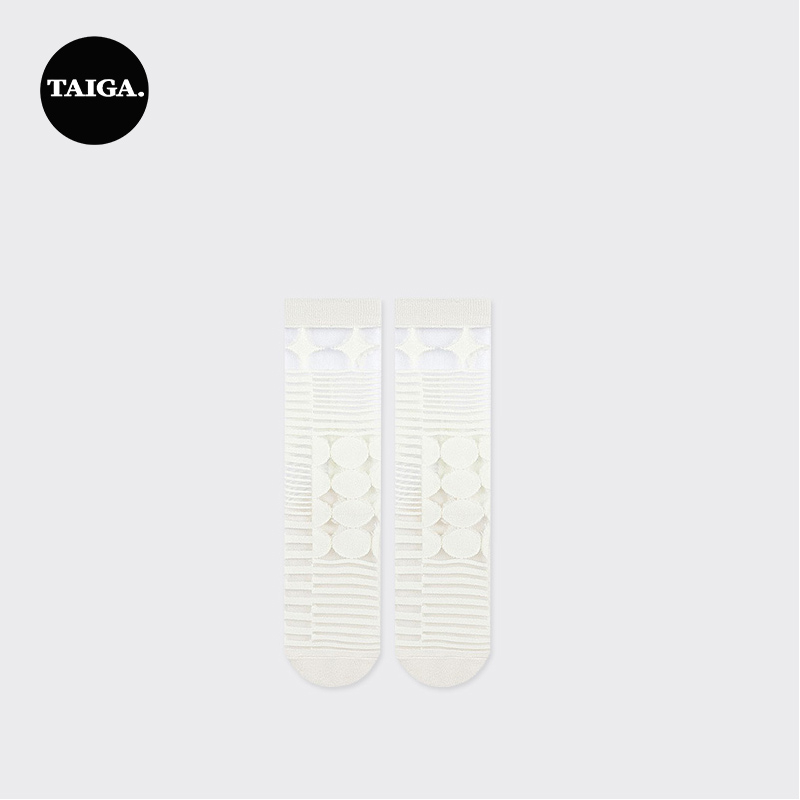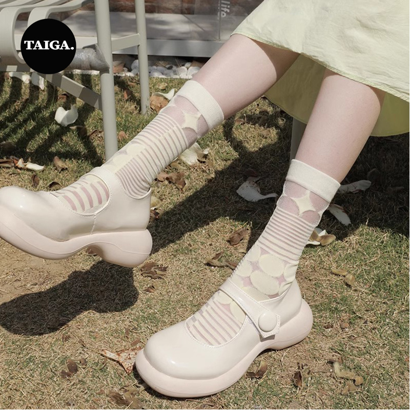 Taiga. ถุงเท้ายาว ผ้าเชียร์ ไนล่อน สีขาว สไตล์เกาหลี สําหรับผู้หญิง y2k