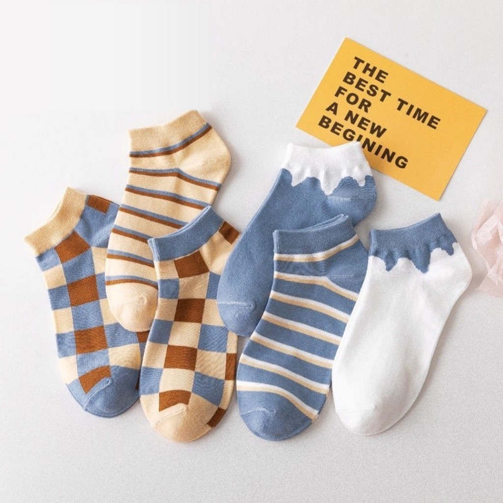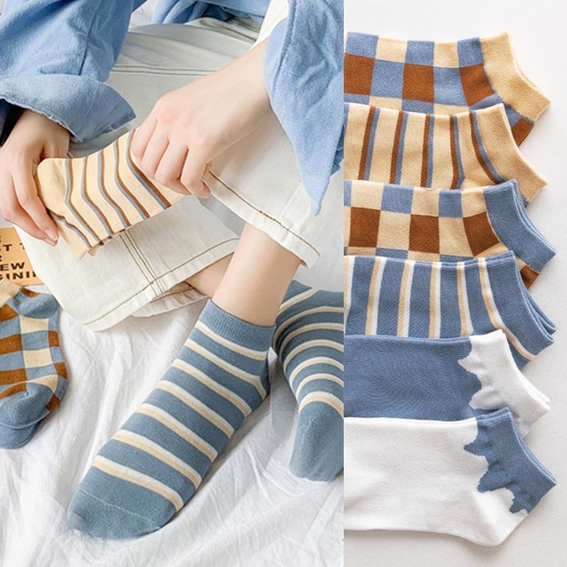 SK-045 ถุงเท้าญี่ปุ่น ข้อสั้น สีพาสเทล น้ำเงิน ครีม สีหวาน มี 6 แบบ เนื้อผ้านิ่ม