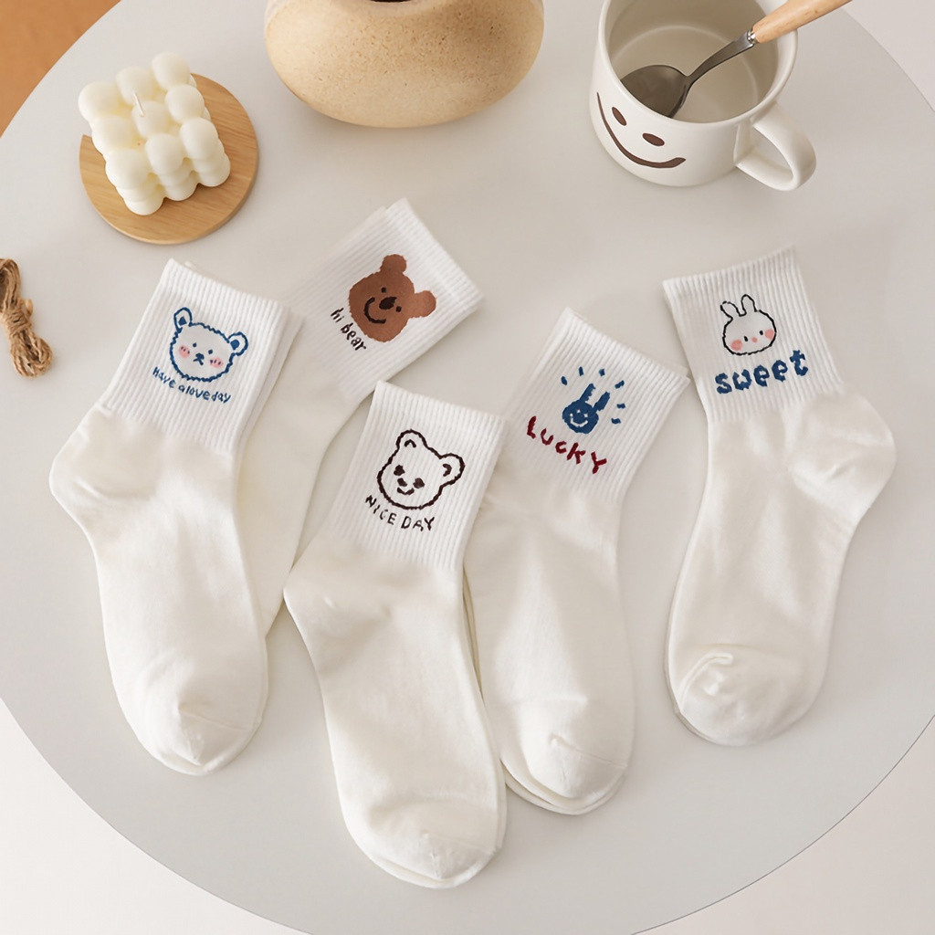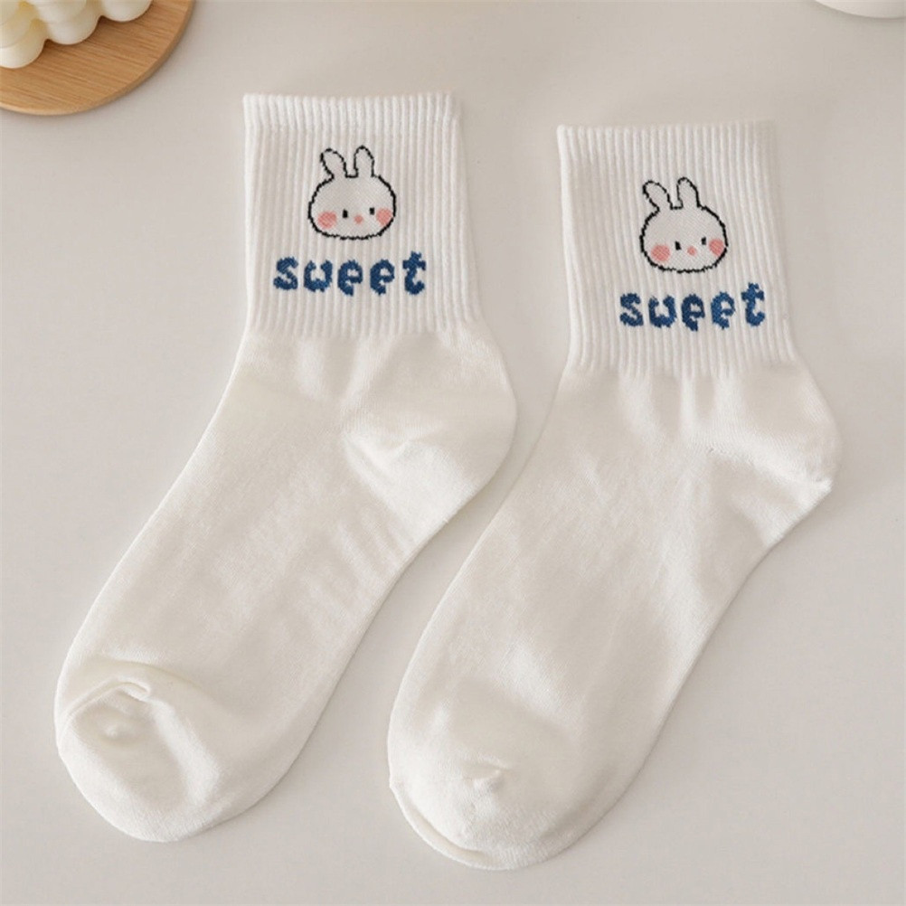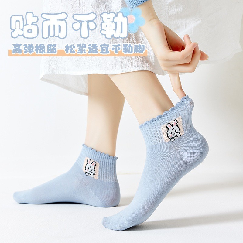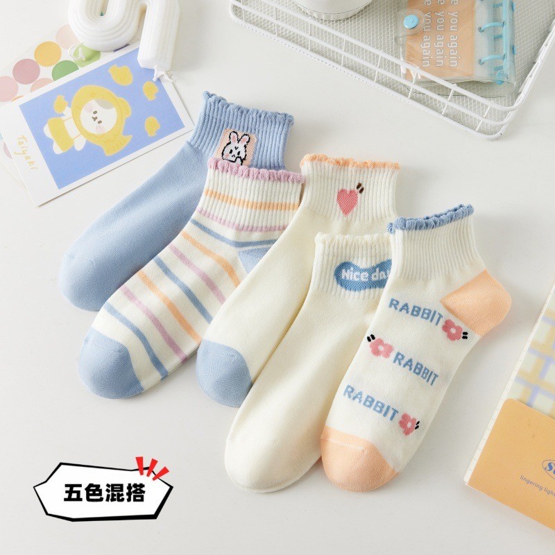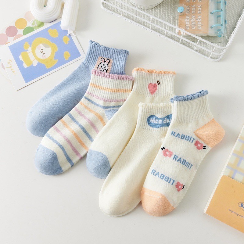 SY_SHOP899 ถุงเท้าข้อสั้น (5สี/10คู่) ถุงเท้าแฟชั่น เนื้อผ้านุ่ม ลายRABBIT NO.B35