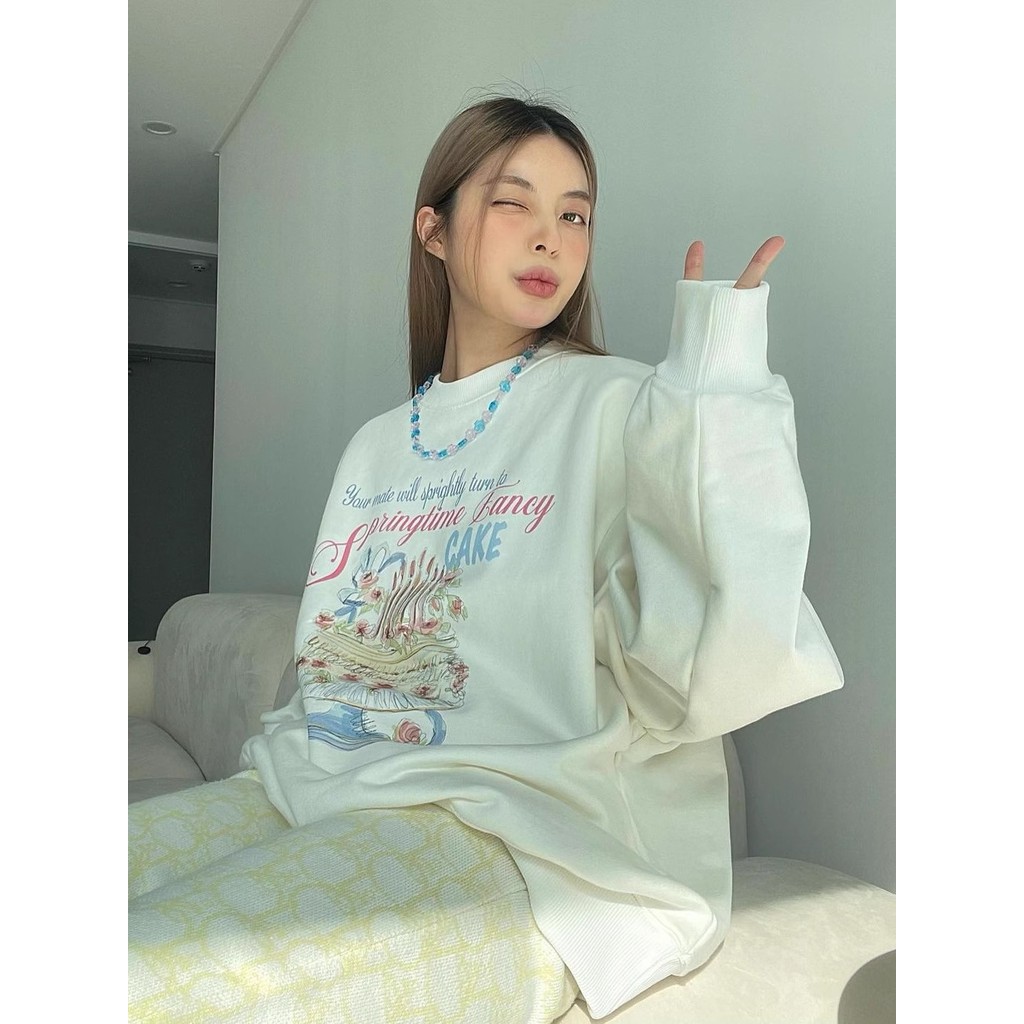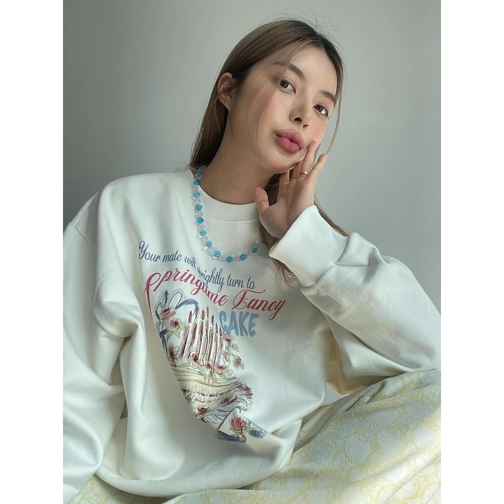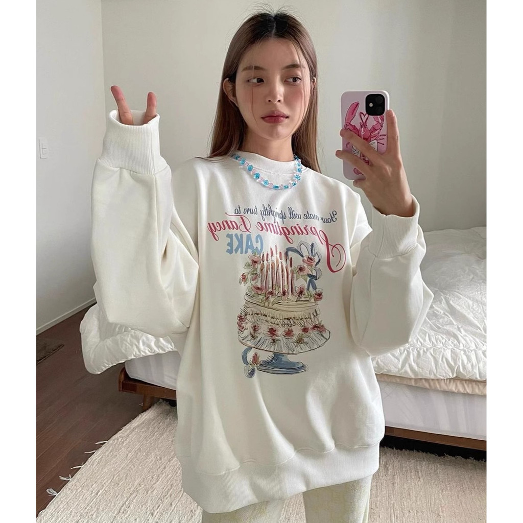 (พร้อมส่งจากกรุงเทพ) เสื้อกันหนาวแขนยาว เสื้อยืดคอกลมพิมพ์ลาย เสื้อเชิ้ตลำลองทรงหลวมใส่สบายเทรนด์แฟชั่นเกาหลีของสาวๆ