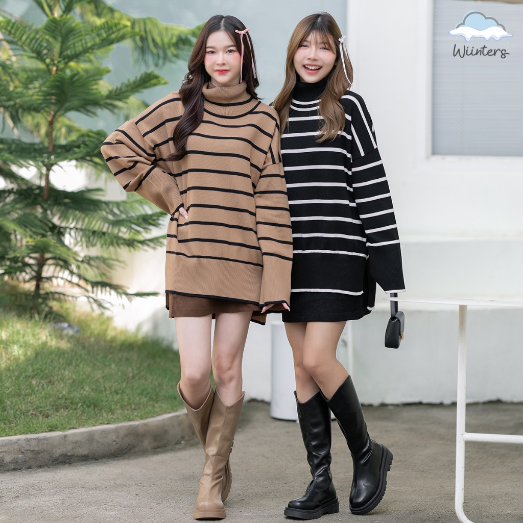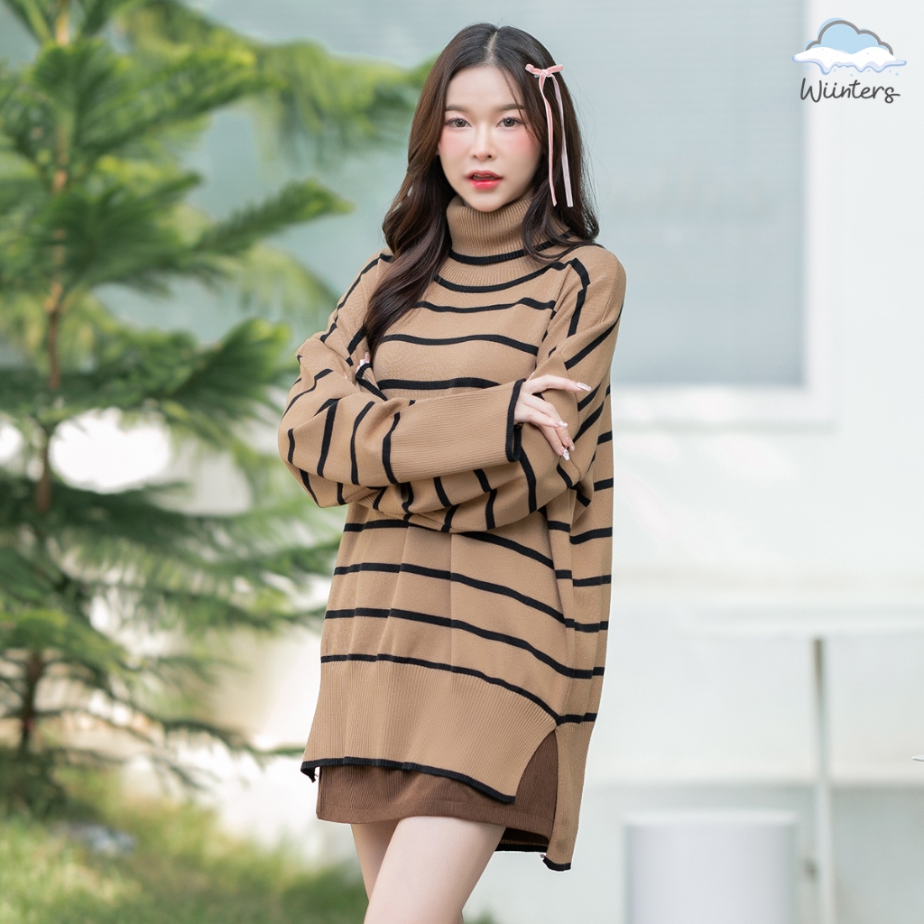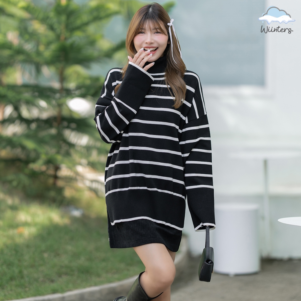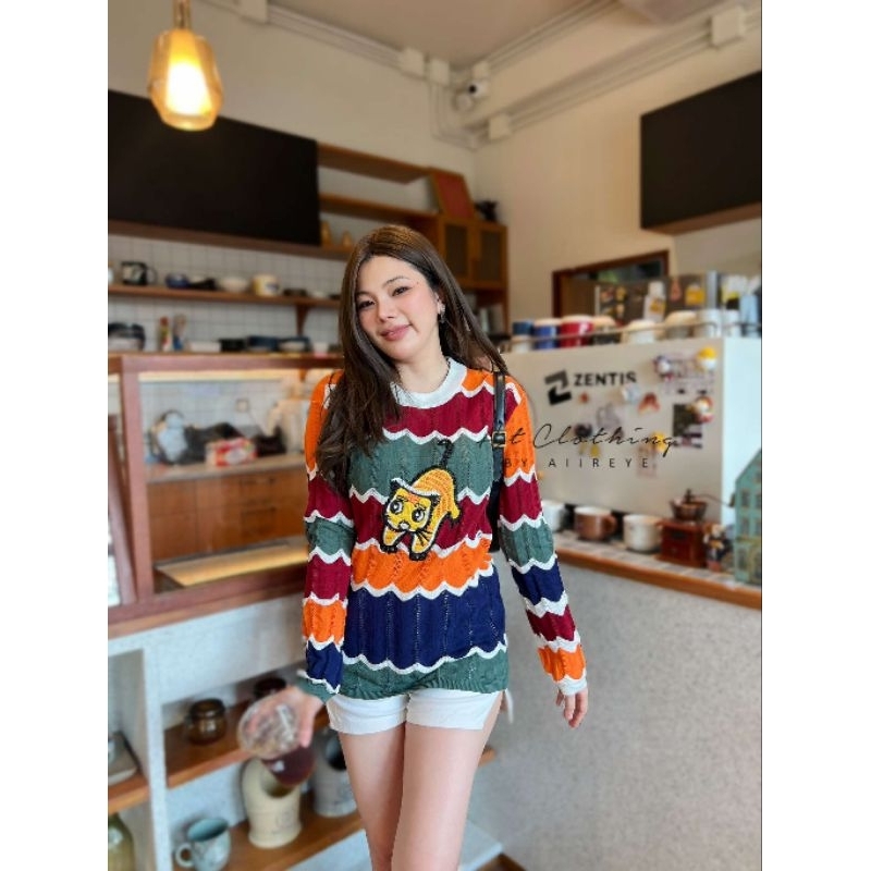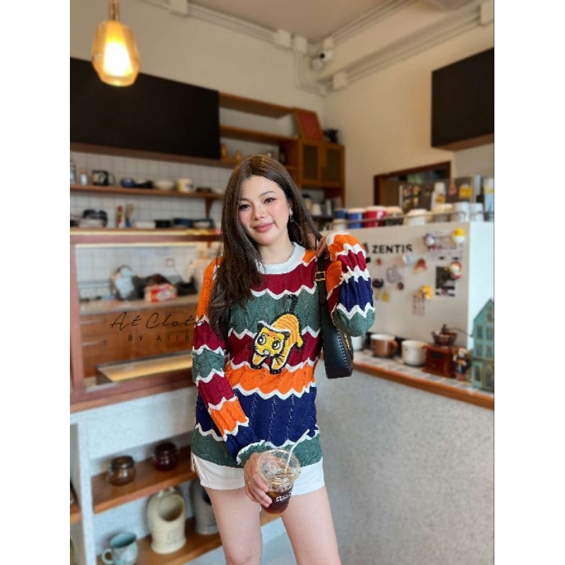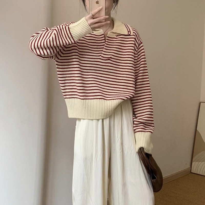 (จัดส่งจากกรุงเทพ🇹🇭) ถักแบบสบาย ๆ เสื้อกันหนาวสไตล์เกาหลี สตรีปกแฟชั่นลายทาง L036