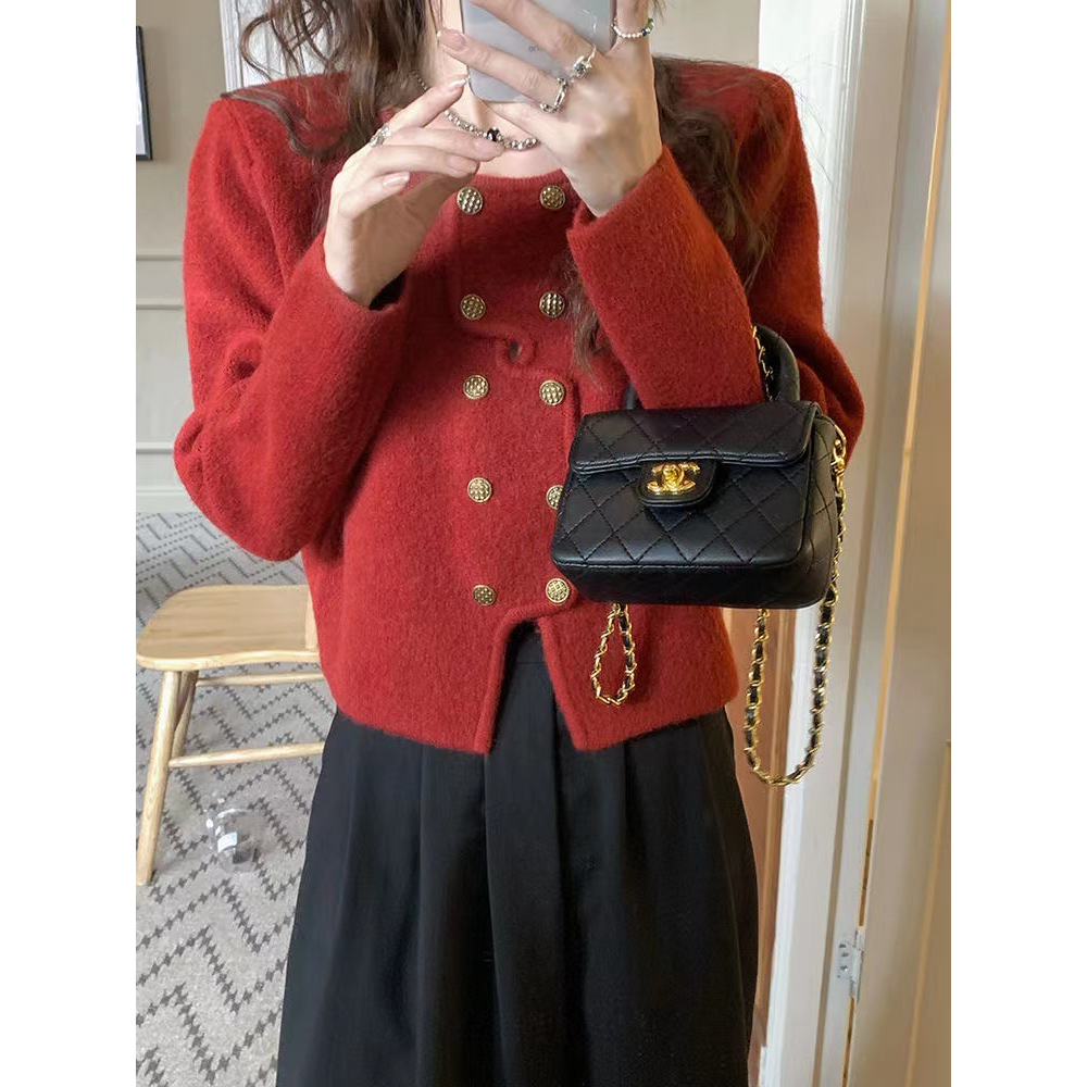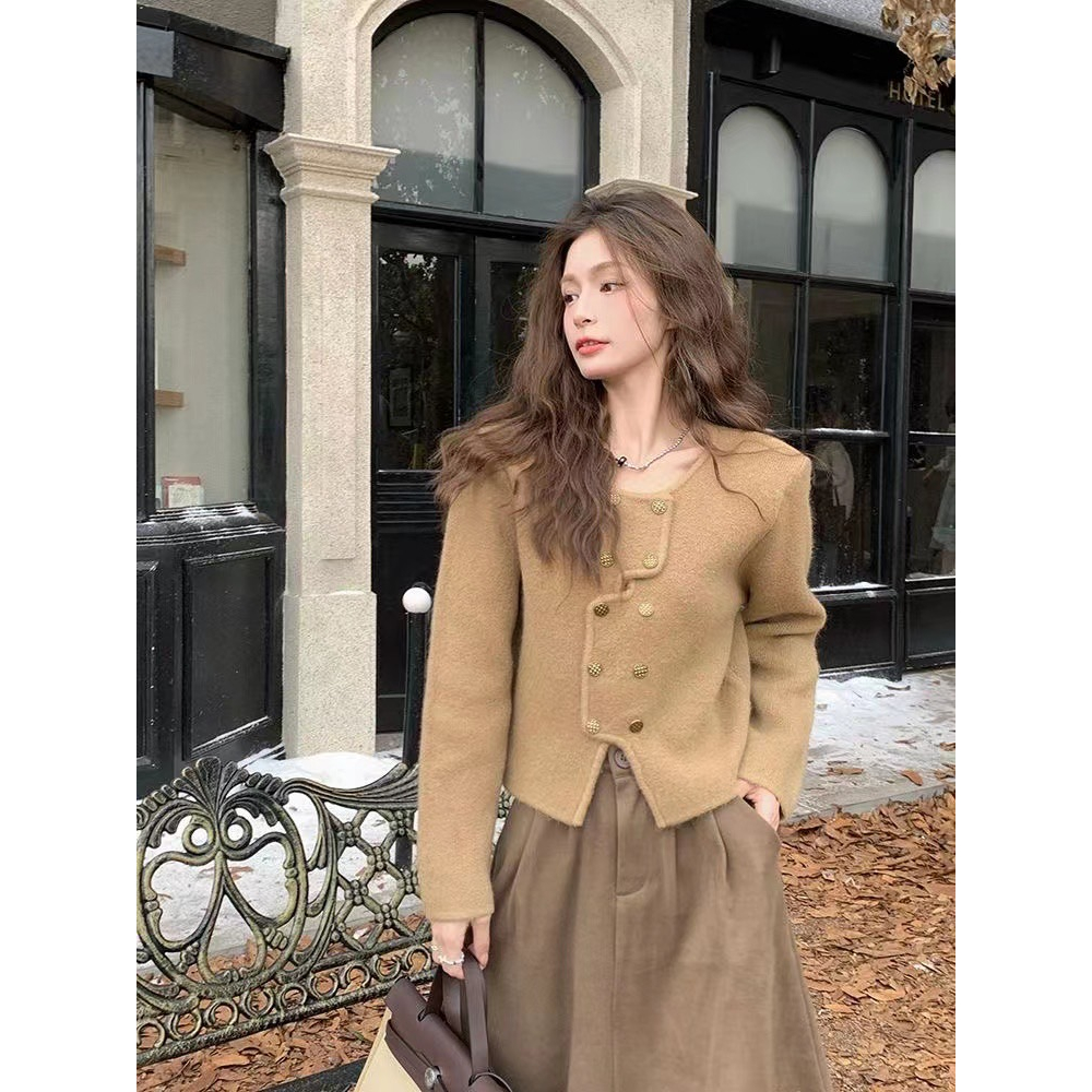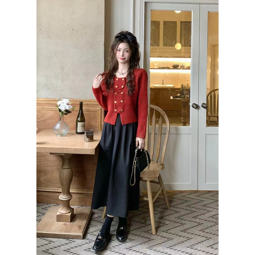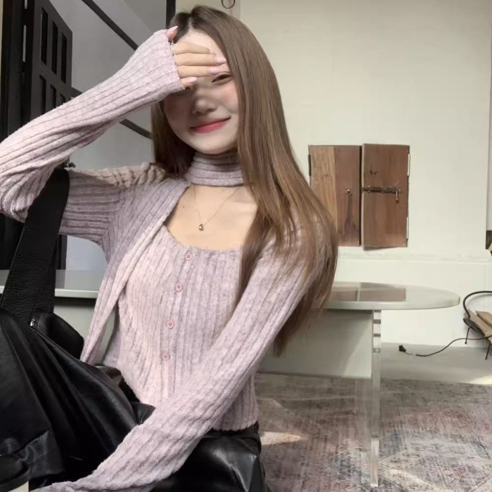 (กทม🇹🇭เดลิเวอรี่ L038) เสื้อคาร์ดิแกนถัก+ผ้าพันคอแบบใหม่ ผู้หญิงคอเหลี่ยม เสื้อครอปแขนยาว