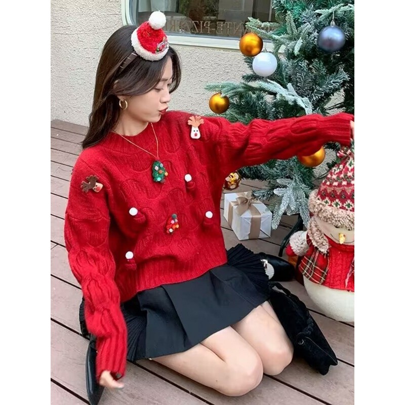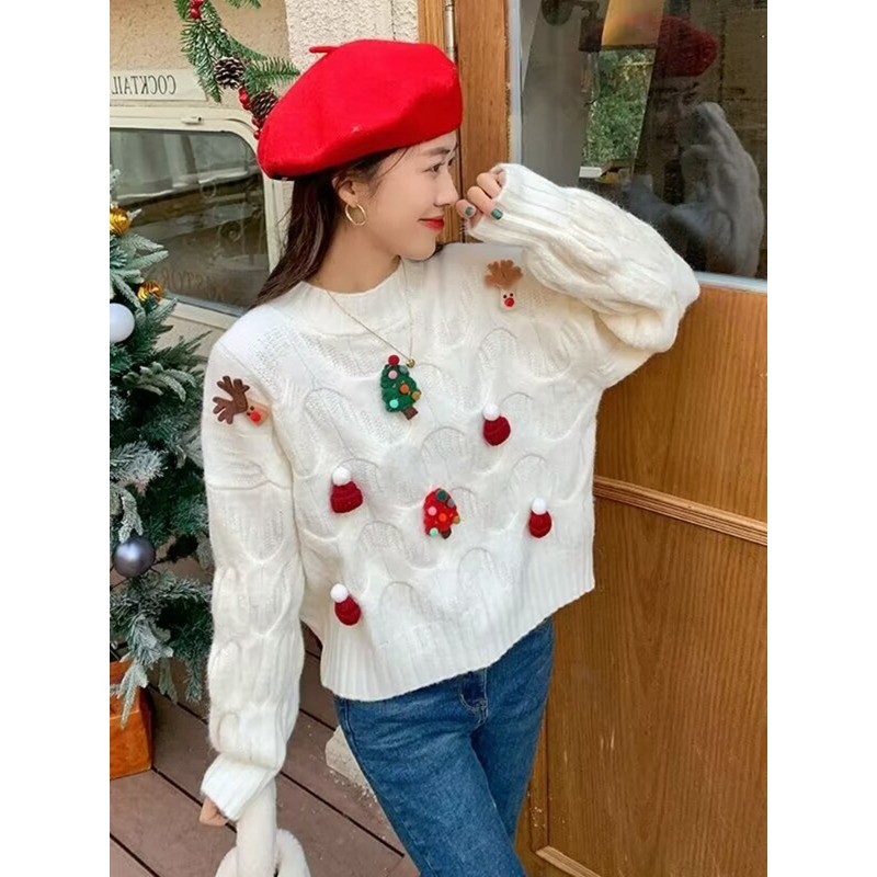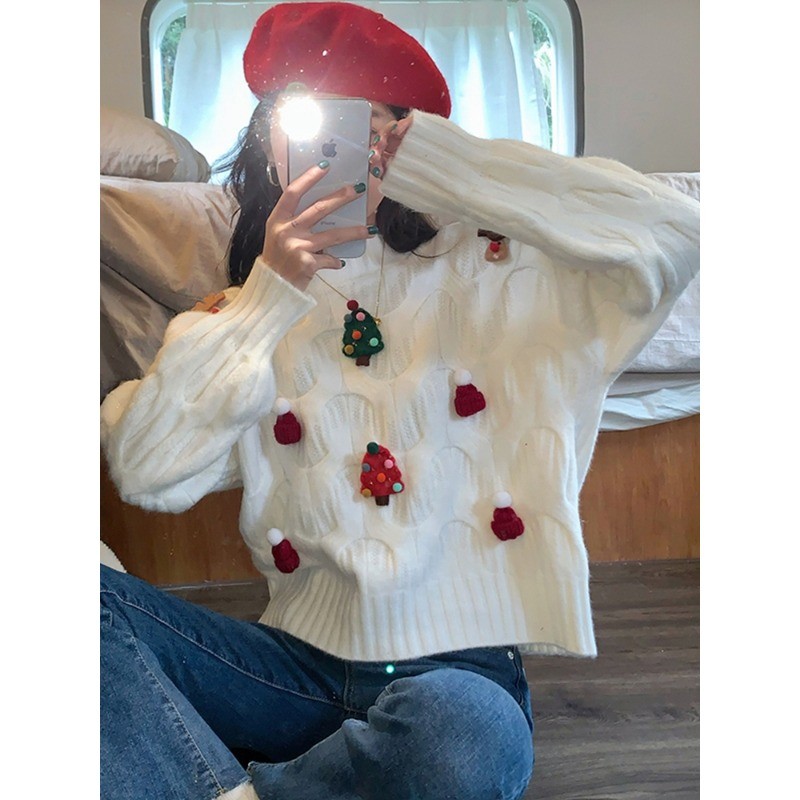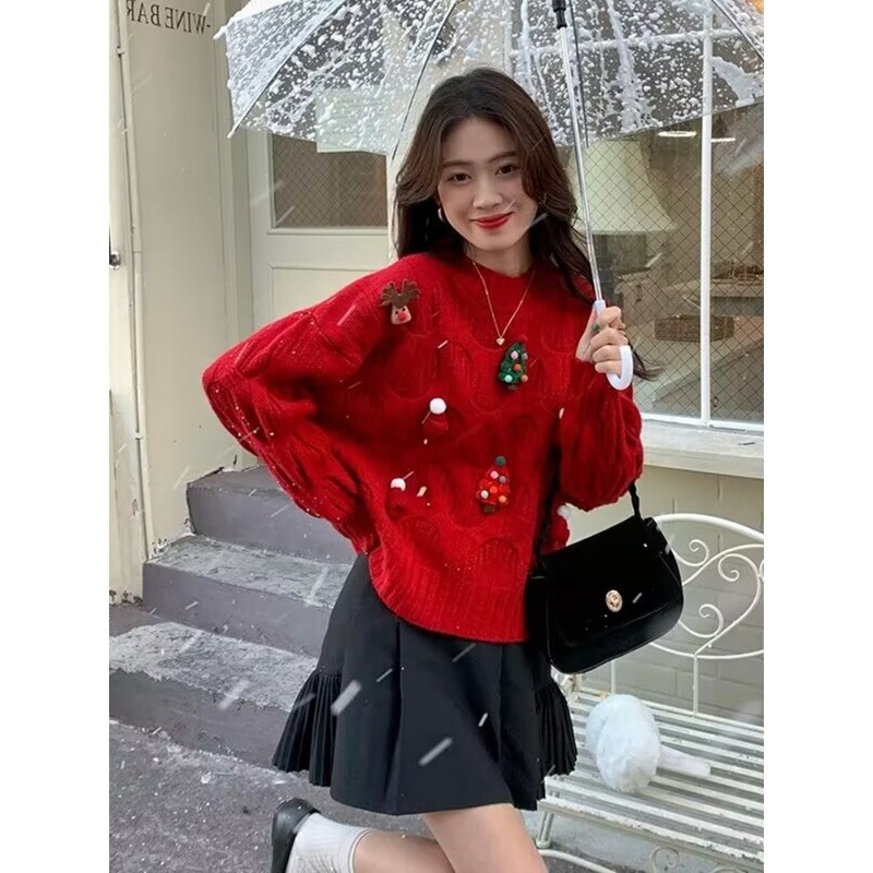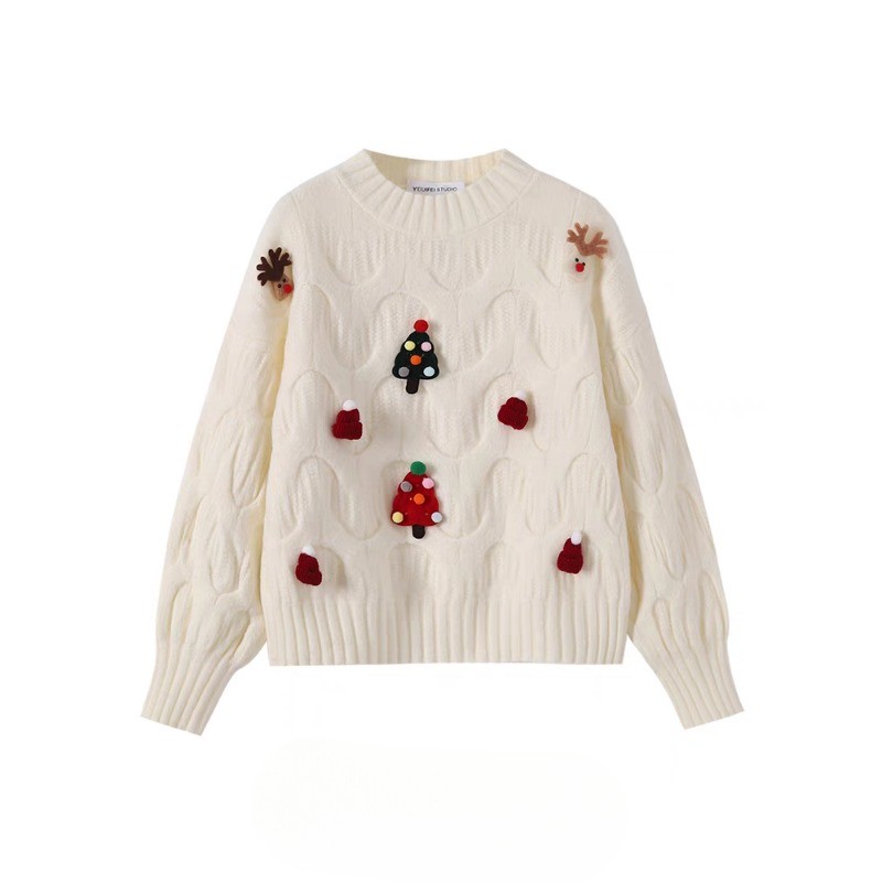 (ส่งจากกรุงเทพฯ)เสื้อไหมพรมเเขนยาวลายคริสต์มาส Xmas Sweater ผ้านุ่ม งานน่ารัก ต้อนรับฤดูหนาว