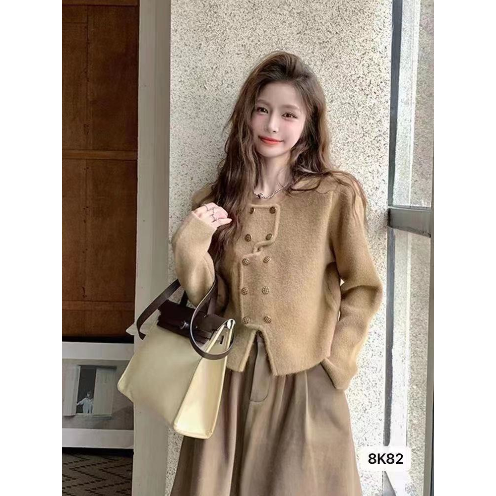 (พร้อมส่ง/8K82#)เสื้อคลุมผู้หญิงคาร์ดิแกน แต่งกระดุม2ข้างน่ารักเก๋ดีด้านหน้า สวมใส่สบาย
