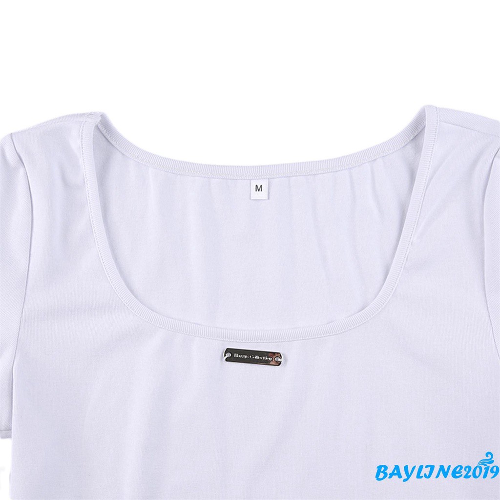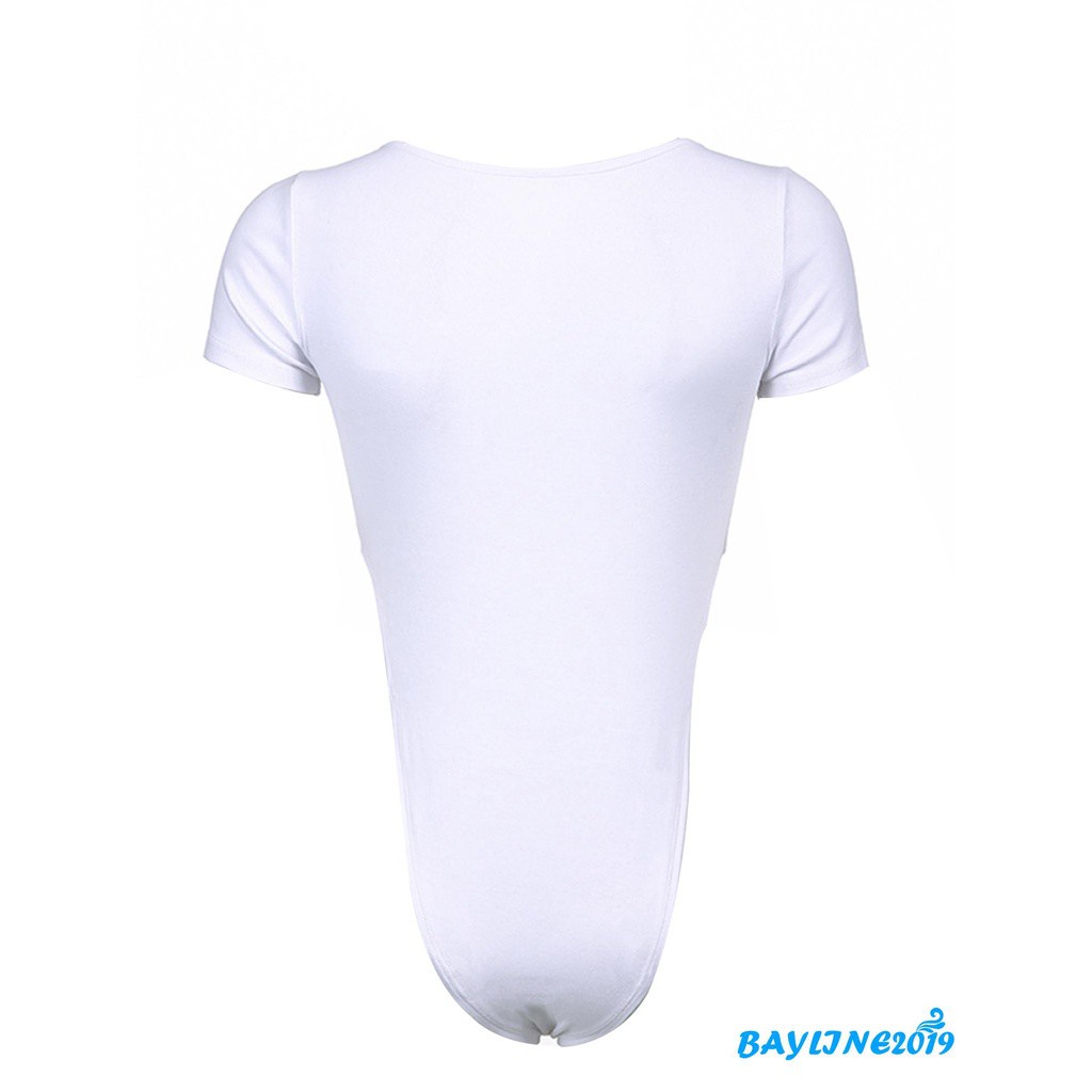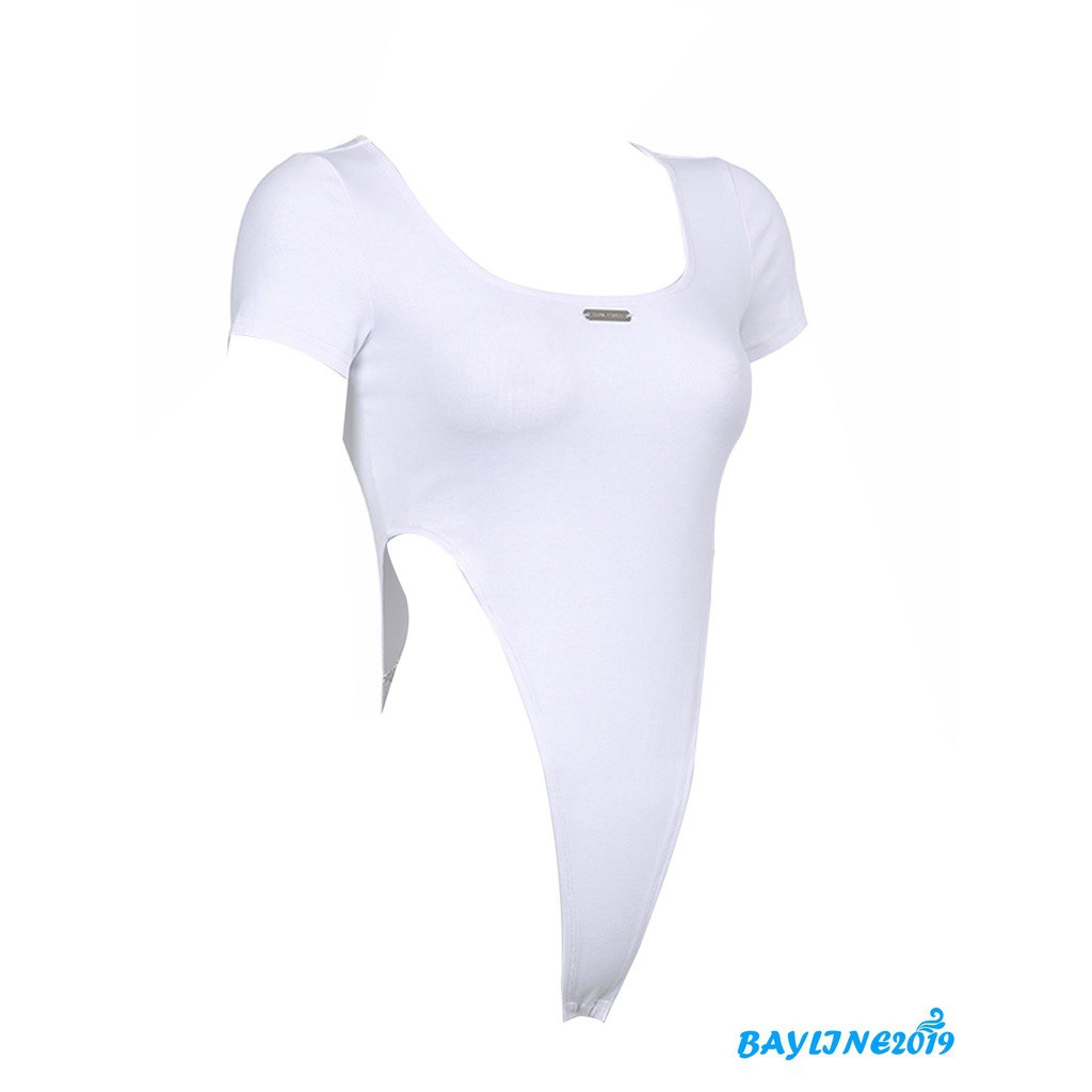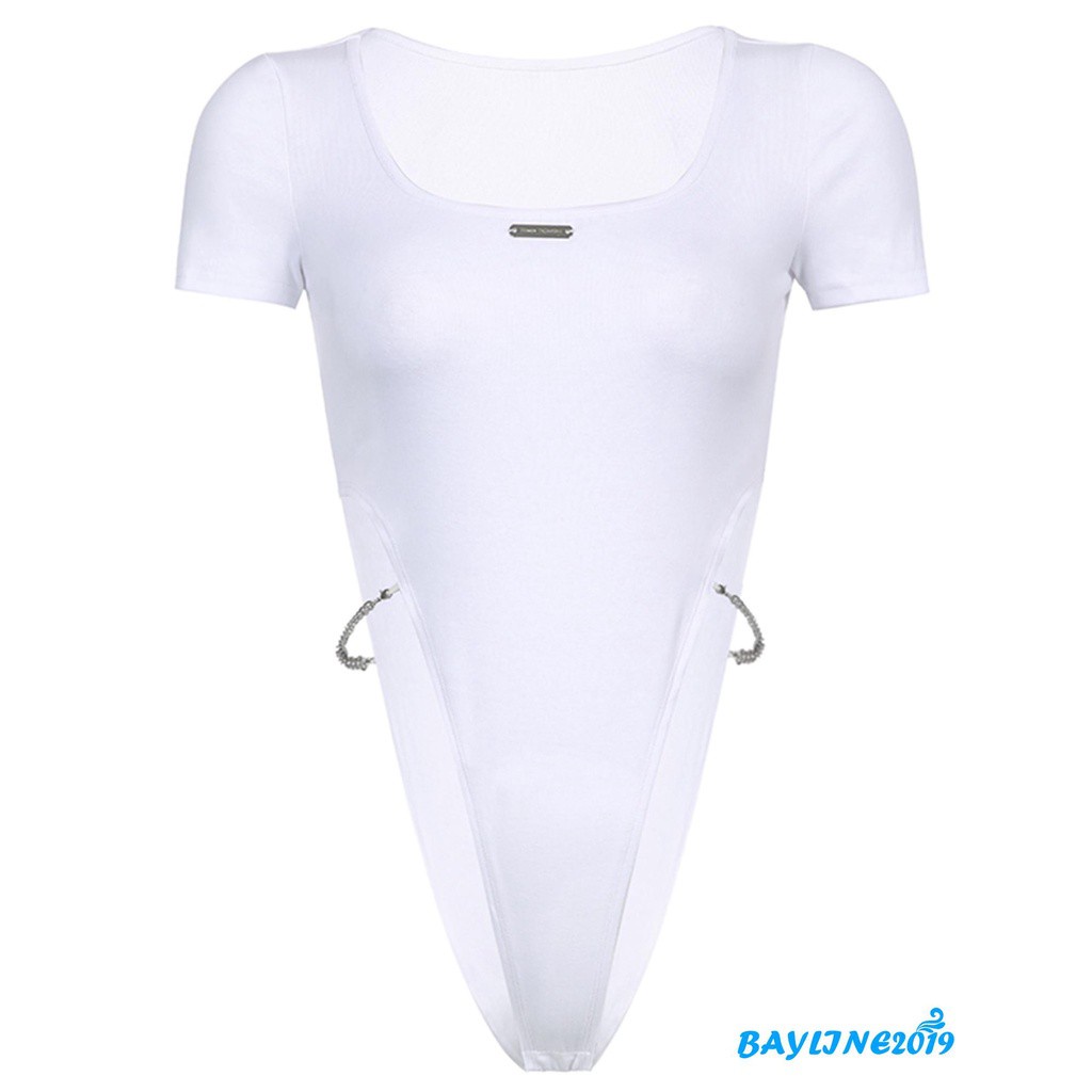 Bay- ชุดบอดี้สูทรอมเปอร์คอกลมแขนสั้นเอวสูงสีขาวสําหรับผู้หญิง